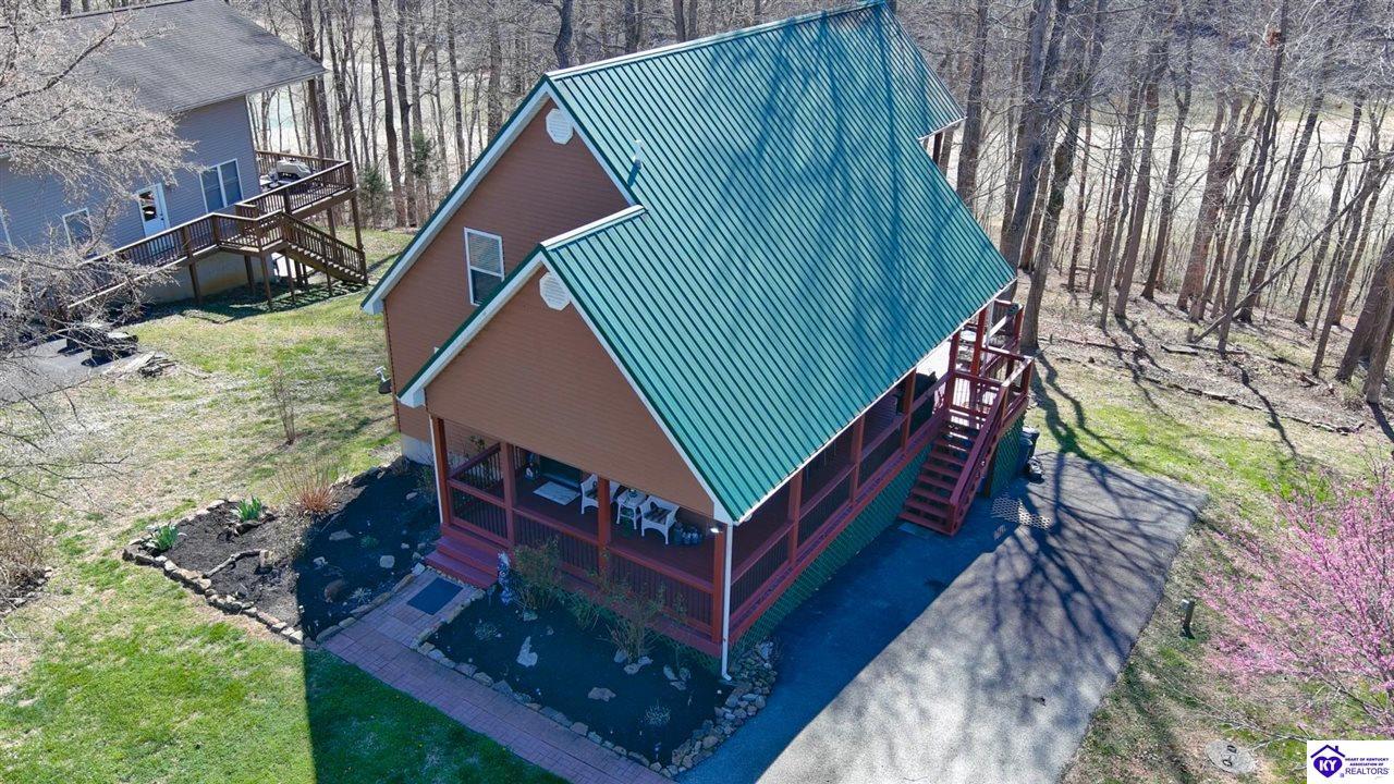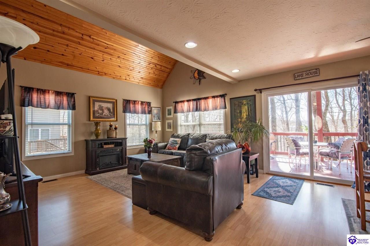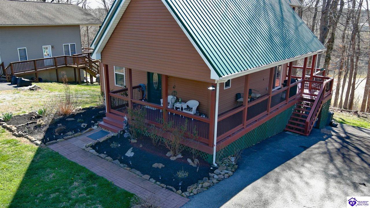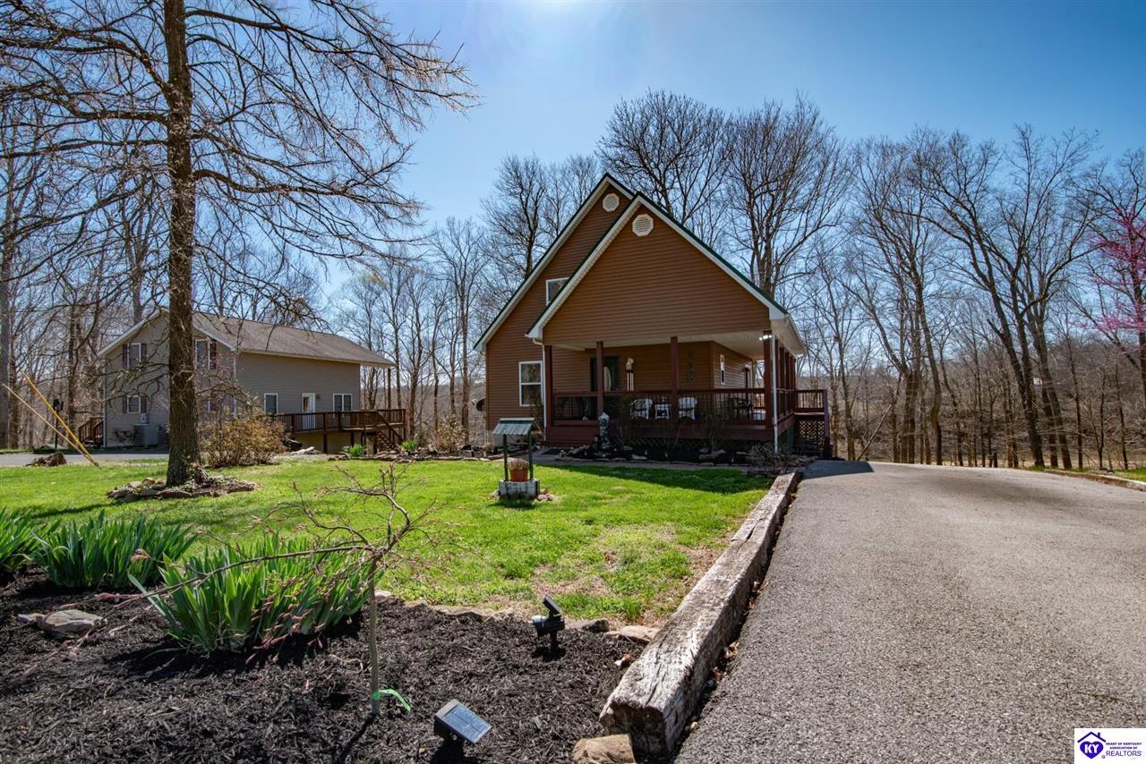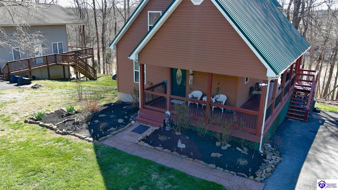 Realtor's notes: Have you always dreamed of owning a home on the lake? Welcome to 431 Lake Front Rd.! A stunning 2-3 bedroom, 2 bath lake front retreat nestled on a gently sloping approx. half acre lot on Rough River Lake. This beautiful home has 2130 Sq Ft that of living space that includes an unfinished walk out basement which allows you to finish to your liking. Main level offers an open floor plan, bedroom, bath, Utility room and a covered 3/4 wrap around deck off of the Kitchen. Upper level has master bed, bath, walk in closet, quaint sitting area in the loft and a private deck. In the Unfinished basement you will see is being used as a family room, bedroom with a covered patio. Plenty of outdoor space for relaxing or entertaining. This home has a dock that goes with it and is transferable with CEO approval. A Must See to believe all this property has to offer.