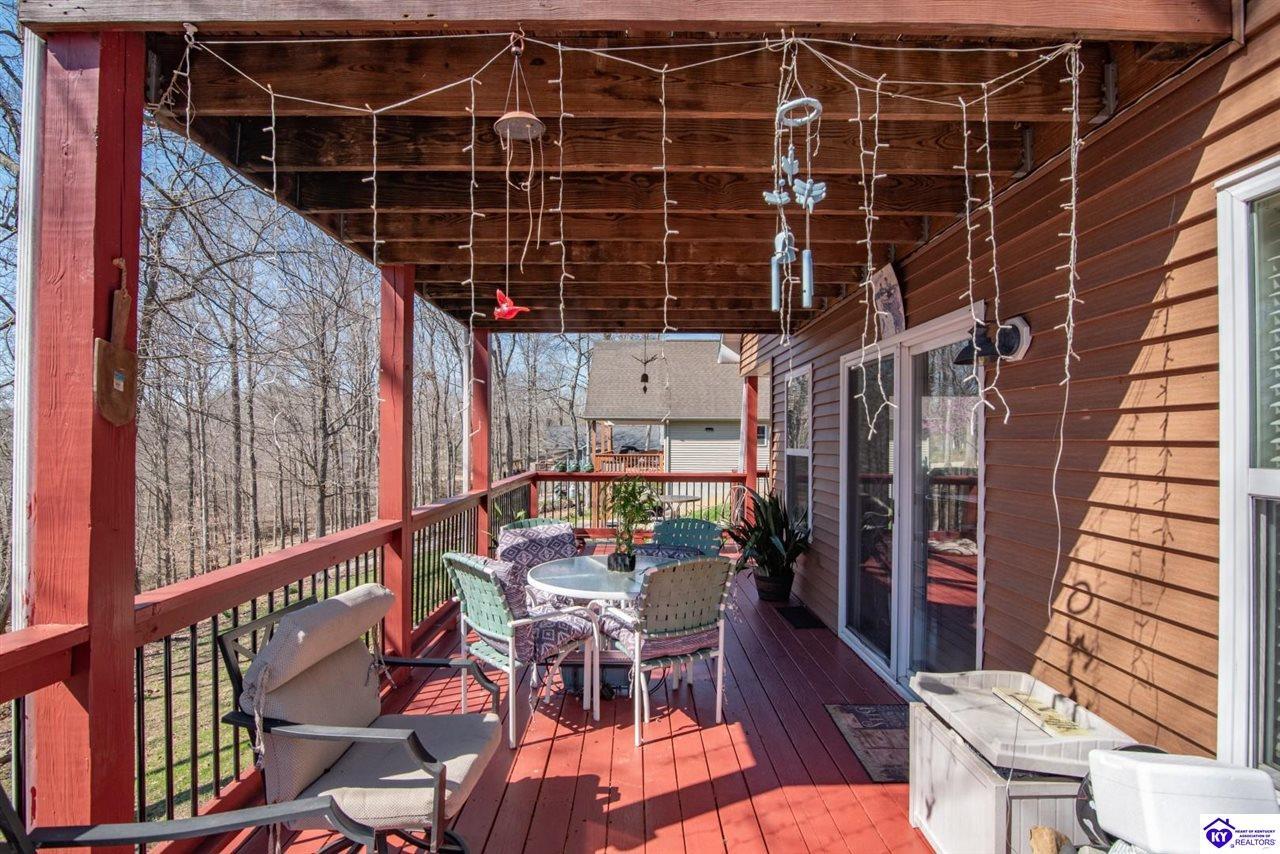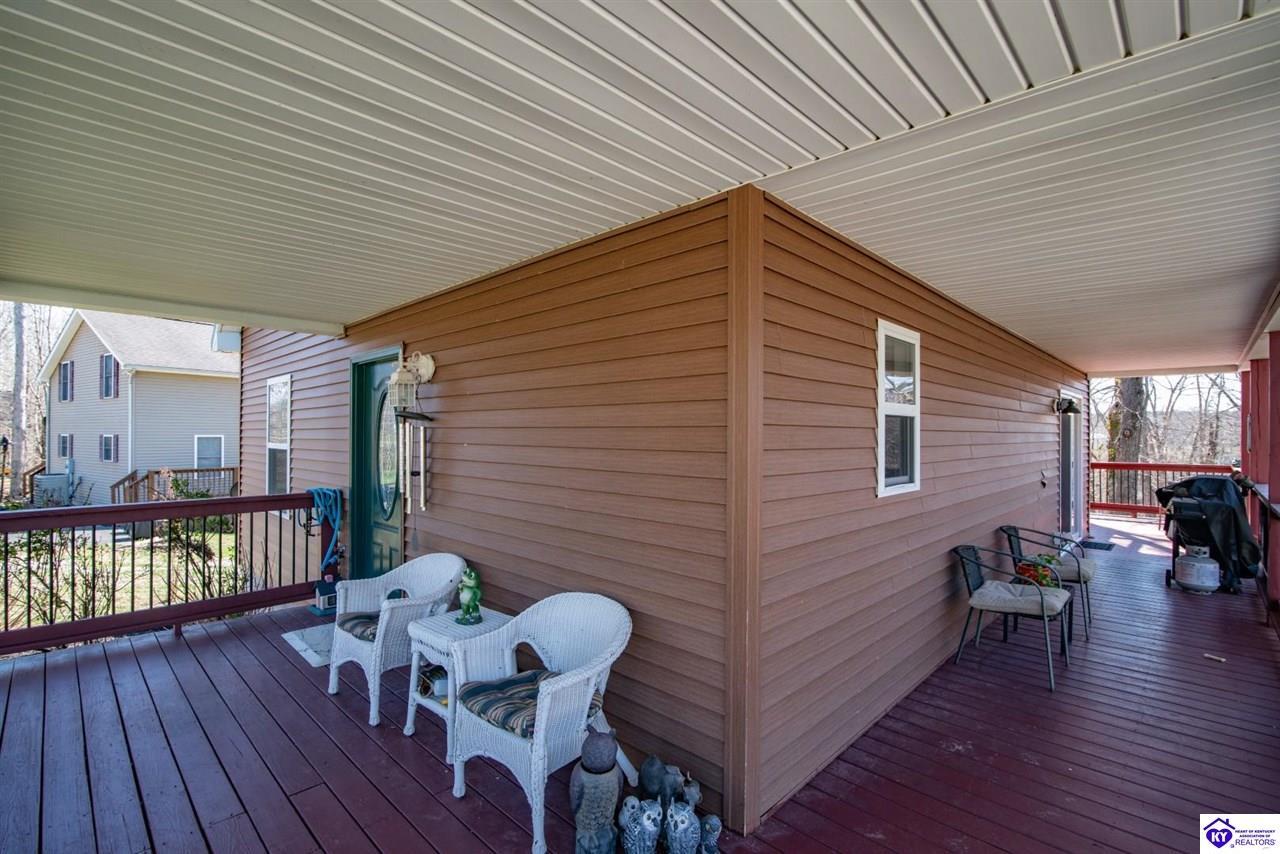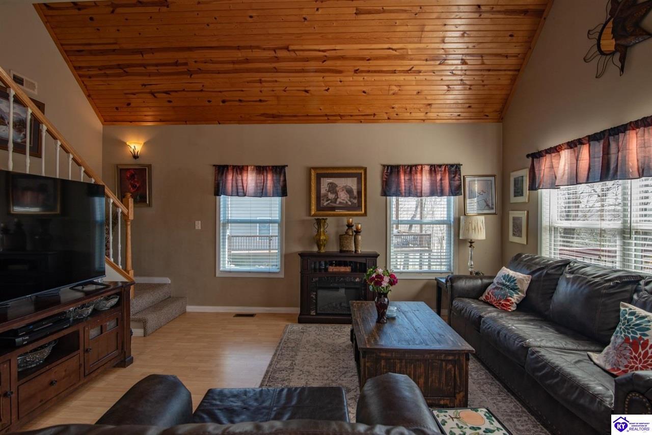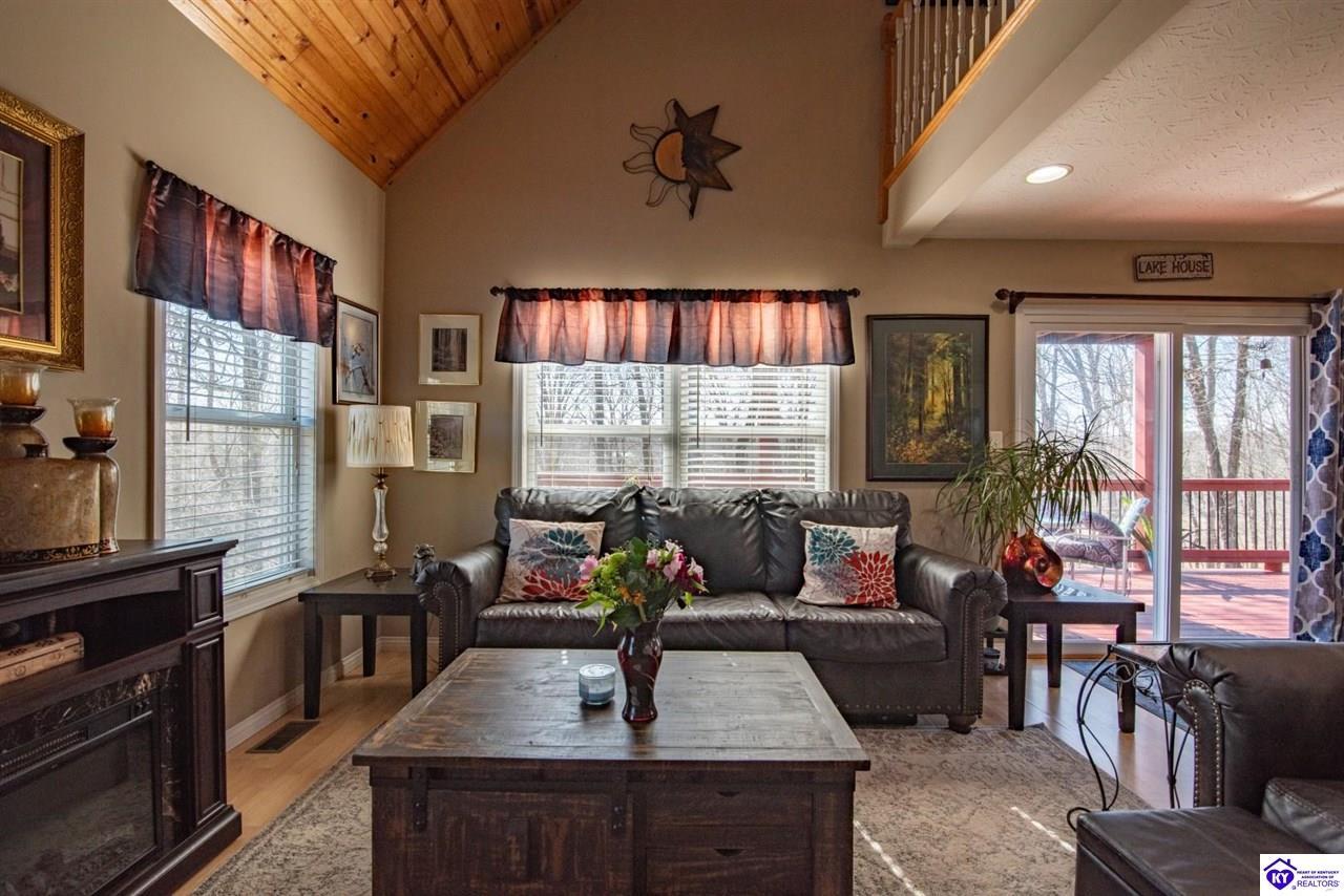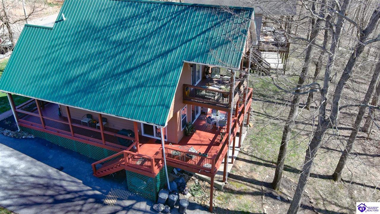 Realtor's notes: Have you always dreamed of owning a home on the lake? Welcome to 431 Lake Front Rd.! A stunning 2-3 bedroom, 2 bath lake front retreat nestled on a gently sloping approx. half acre lot on Rough River Lake. This beautiful home has 2130 Sq Ft that of living space that includes an unfinished walk out basement which allows you to finish to your liking. Main level offers an open floor plan, bedroom, bath, Utility room and a covered 3/4 wrap around deck off of the Kitchen. Upper level has master bed, bath, walk in closet, quaint sitting area in the loft and a private deck. In the Unfinished basement you will see is being used as a family room, bedroom with a covered patio. Plenty of outdoor space for relaxing or entertaining. This home has a dock that goes with it and is transferable with CEO approval. A Must See to believe all this property has to offer.