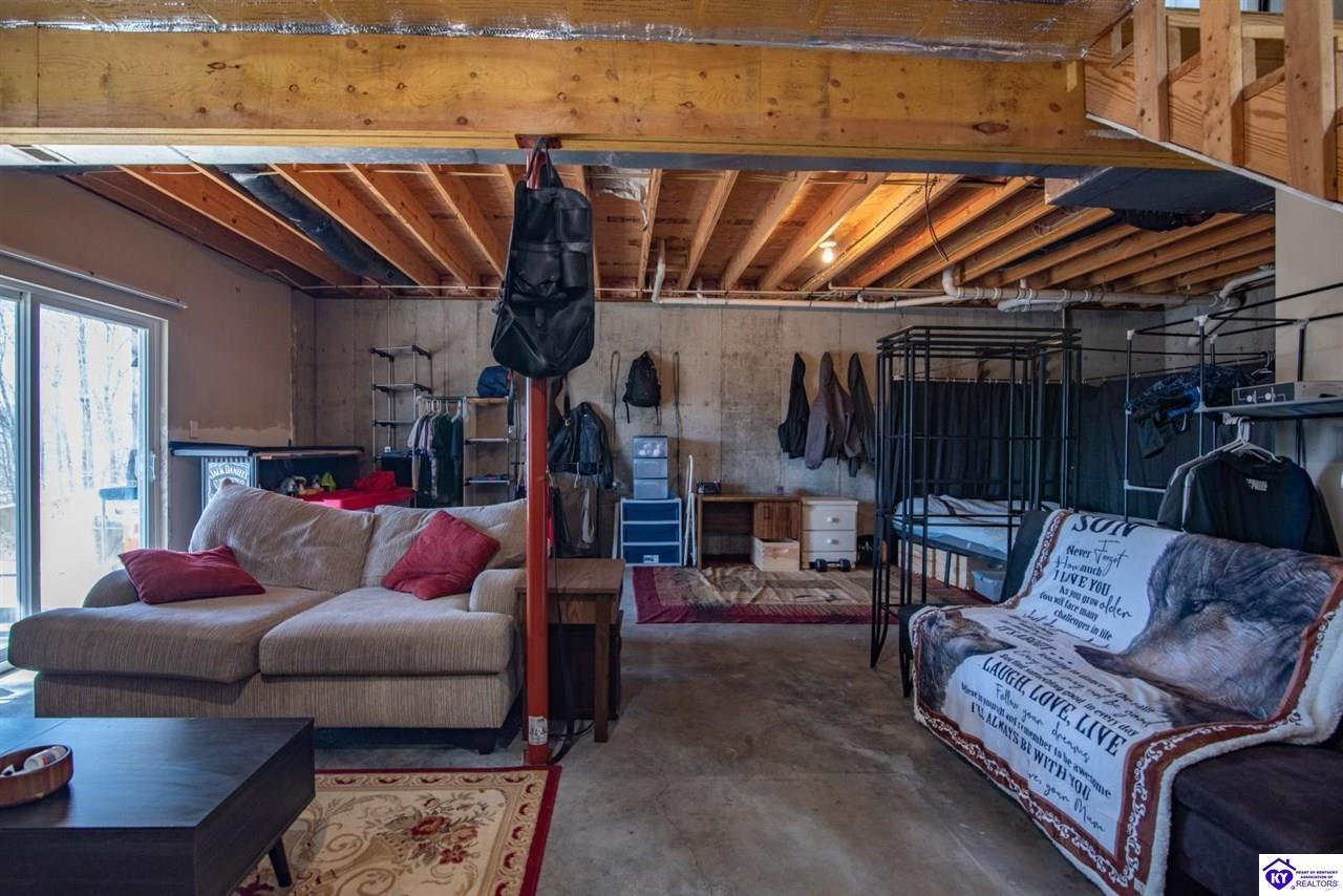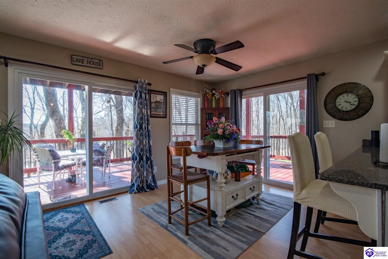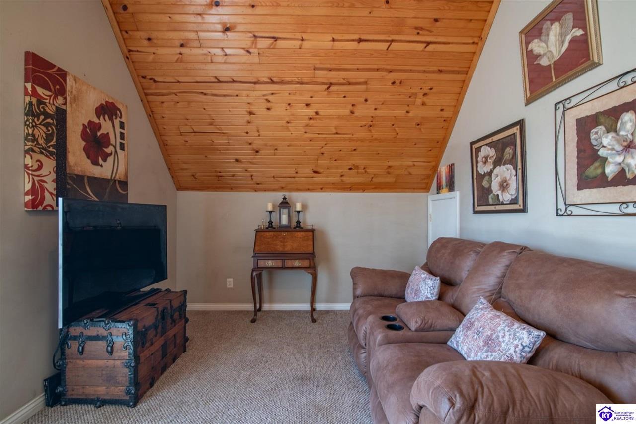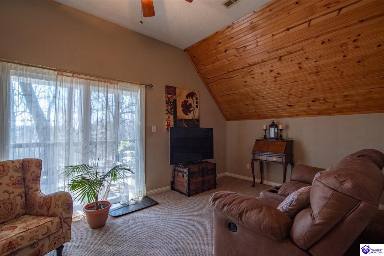 Realtor's notes: Have you always dreamed of owning a home on the lake? Welcome to 431 Lake Front Rd.! A stunning 2-3 bedroom, 2 bath lake front retreat nestled on a gently sloping approx. half acre lot on Rough River Lake. This beautiful home has 2130 Sq Ft that of living space that includes an unfinished walk out basement which allows you to finish to your liking. Main level offers an open floor plan, bedroom, bath, Utility room and a covered 3/4 wrap around deck off of the Kitchen. Upper level has master bed, bath, walk in closet, quaint sitting area in the loft and a private deck. In the Unfinished basement you will see is being used as a family room, bedroom with a covered patio. Plenty of outdoor space for relaxing or entertaining. This home has a dock that goes with it and is transferable with CEO approval. A Must See to believe all this property has to offer.