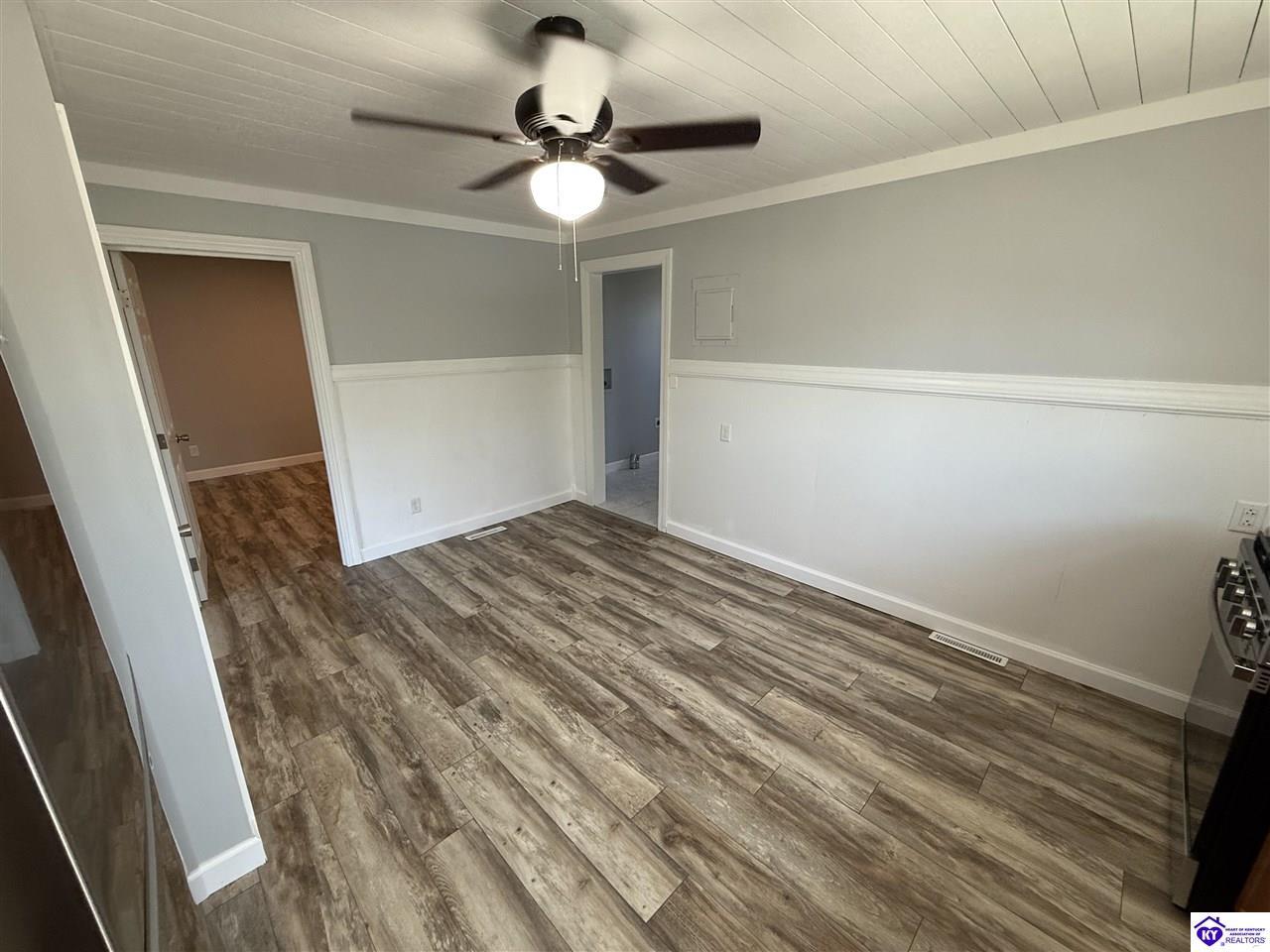 Realtor's notes: Step into this move-in-ready, updated 2-bedroom, 1-bath home just minutes from downtown Elizabethtown, offering a blend of convenience and quiet living. Inside, you'll find an almost complete renovation, with new hard wood flooring in the main living areas, kitchen, and bedrooms, complemented by clean white tile in the bathroom and utility room. The bathroom has been updated with a new vanity top, a closet, and a functional layout. The kitchen comes equipped with updated appliances, including a stove, cooktop, refrigerator, and dishwasher. Major systems have also been updated with a new furnace and AC unit. Outside, the property features an attached one-car garage with power and dual access, a detached storage shed, and an additional 576 sq ft detached garage—perfect for a workshop, extra vehicles, or storage. If you're looking for an updated and functional home, this checks all the boxes!