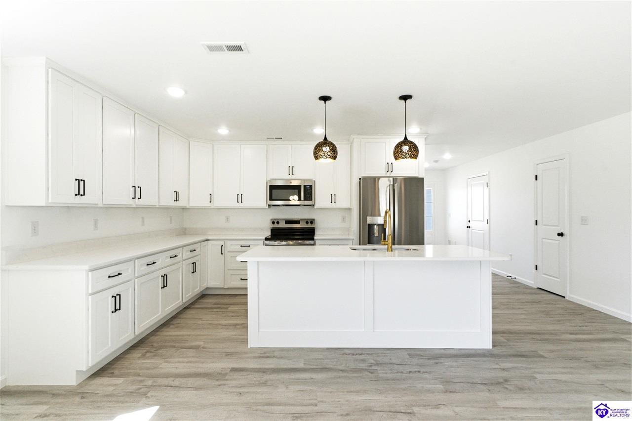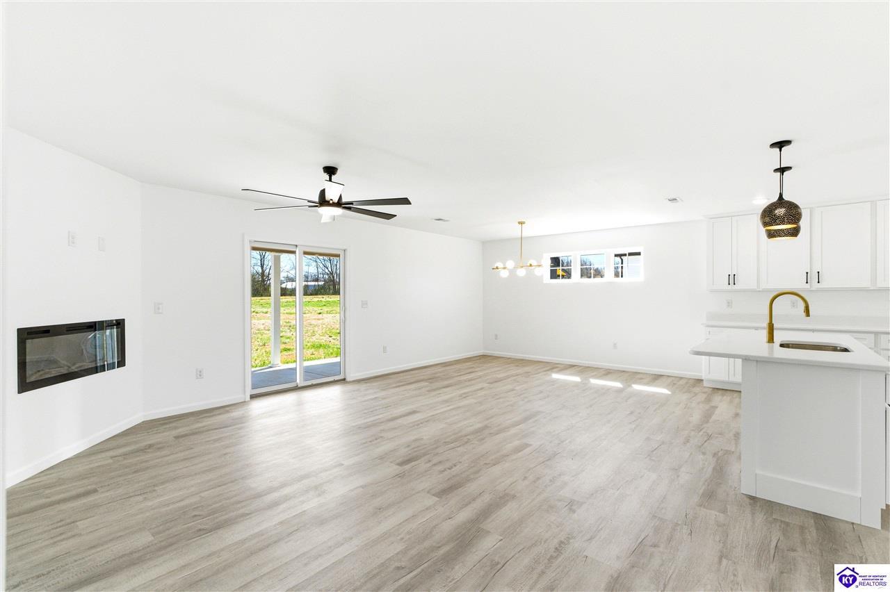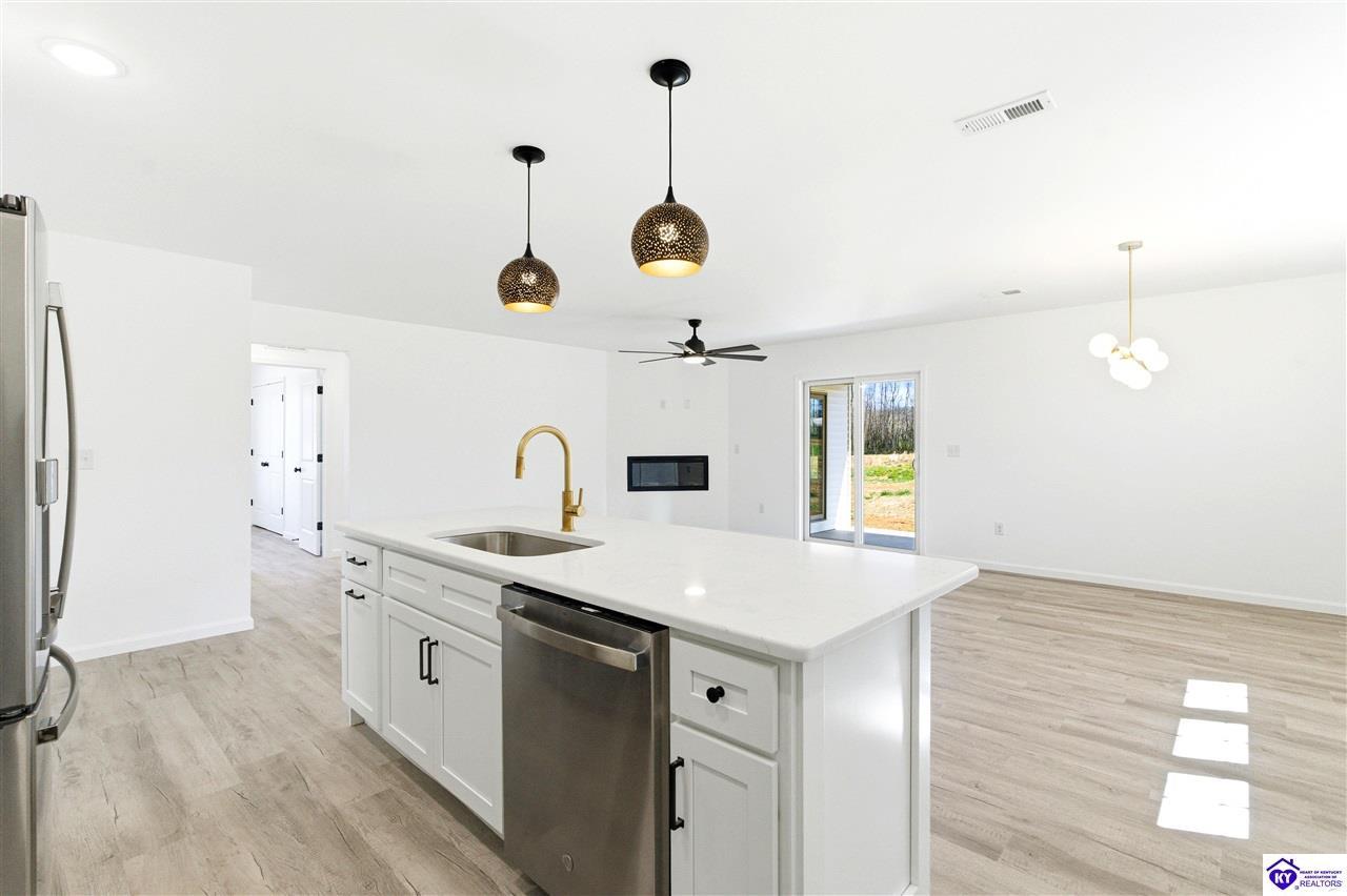 Realtor's notes: Be the first to call this beautiful new construction home yours! Situated on a generous 0.69 acre lot, this thoughtfully designed home offers modern style and everyday comfort. Step inside to find durable LVP flooring flowing seamlessly throughout, creating a clean and cohesive look. The heart of the home features a stunning kitchen with sleek quartz countertops, perfect for cooking and entertaining. Relax in the inviting living area highlighted by a built-in fireplace, adding warmth and charm. Enjoy the space, quality, and contemporary finishes this home has to offer-inside and out. This gorgeous home is approximately 13 miles to I-65 in Elizabethown. Schedule your personal tour today!