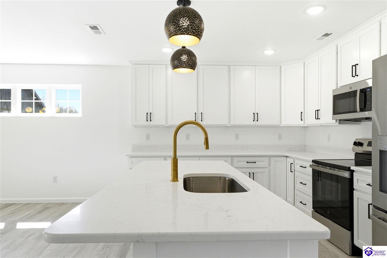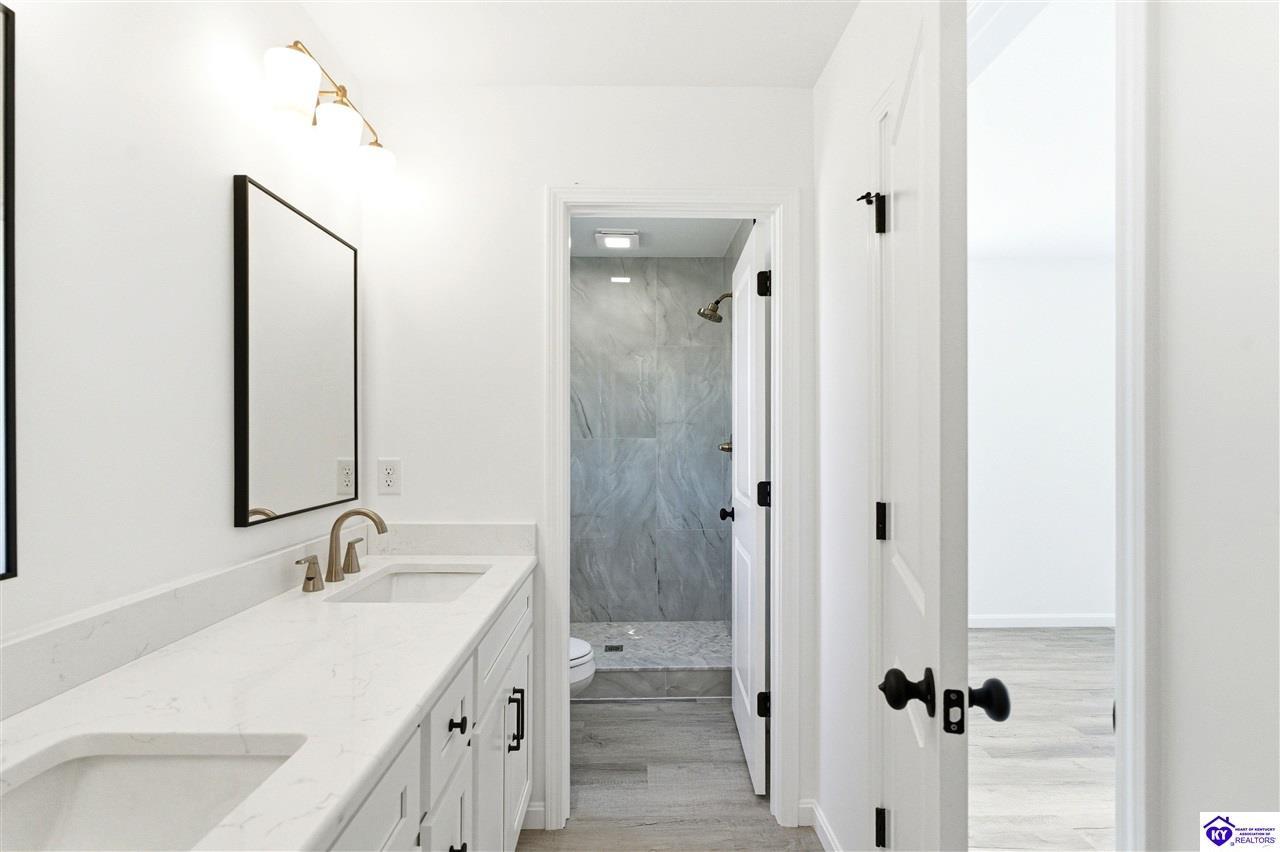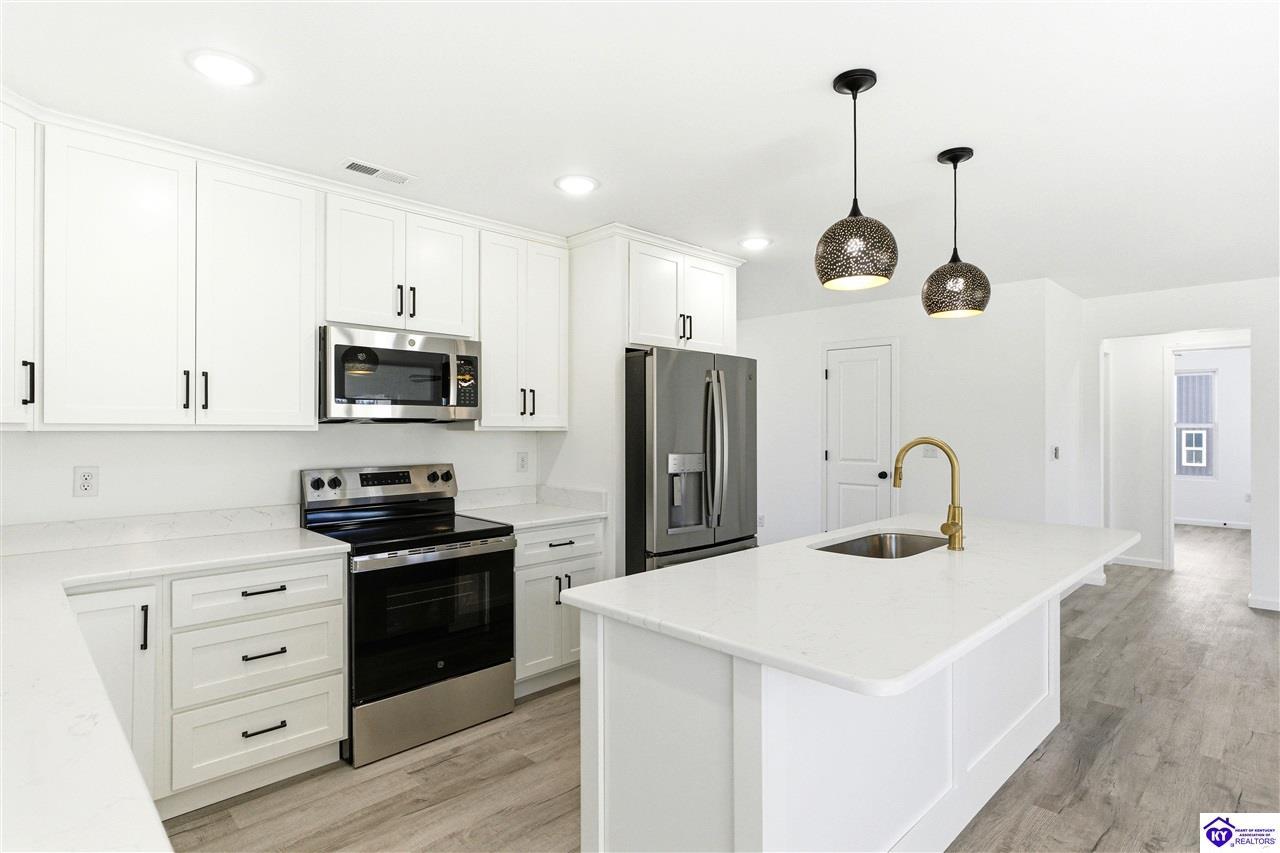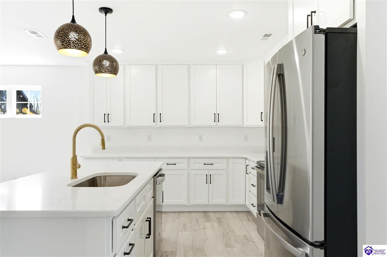 Realtor's notes: Be the first to call this beautiful new construction home yours! Situated on a generous 0.69 acre lot, this thoughtfully designed home offers modern style and everyday comfort. Step inside to find durable LVP flooring flowing seamlessly throughout, creating a clean and cohesive look. The heart of the home features a stunning kitchen with sleek quartz countertops, perfect for cooking and entertaining. Relax in the inviting living area highlighted by a built-in fireplace, adding warmth and charm. Enjoy the space, quality, and contemporary finishes this home has to offer-inside and out. This gorgeous home is approximately 13 miles to I-65 in Elizabethown. Schedule your personal tour today!