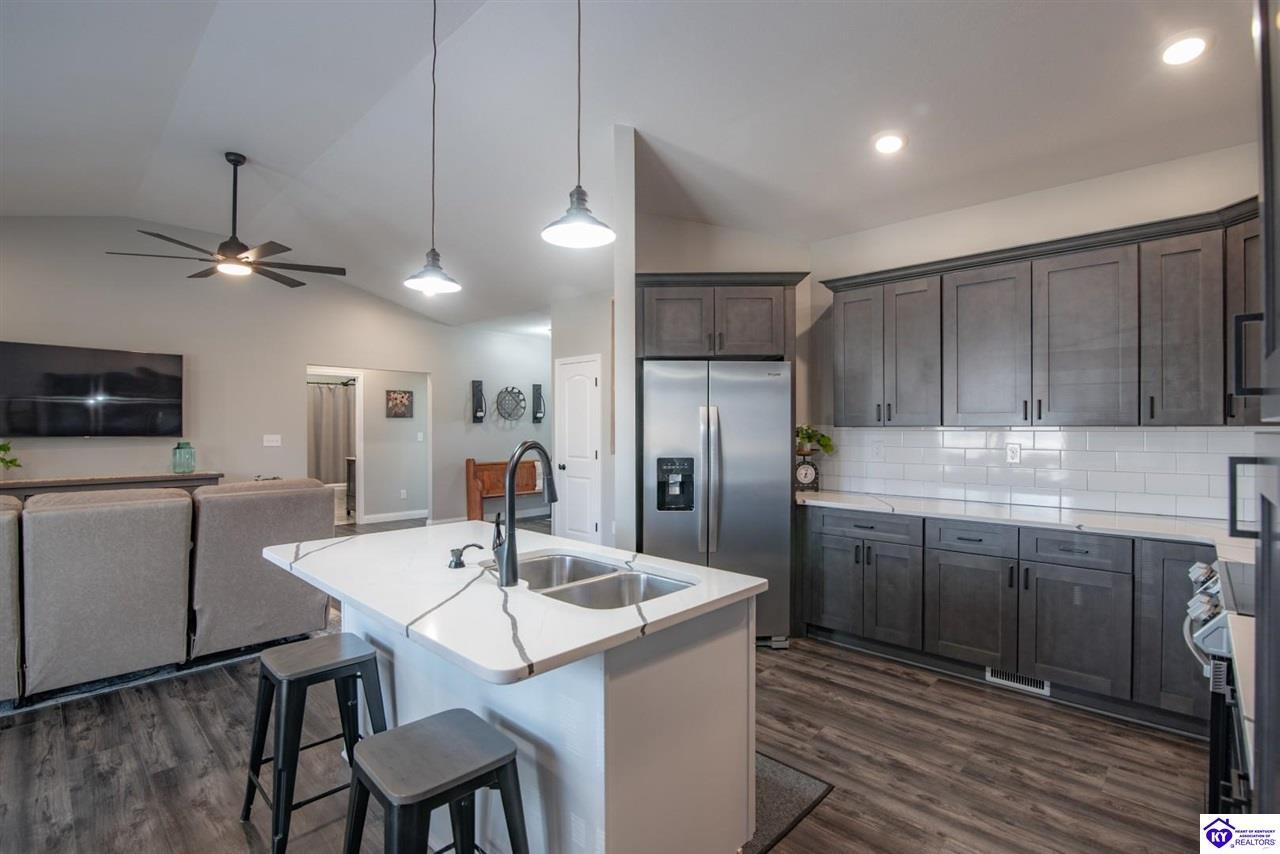Realtor's notes: WELCOME to this beautifully upgraded 2023 custom home in the Private community of Doe Valley--where everyday living feels like a year-round vacation! This move in ready ranch offers desirable main-level living with a fully finished walkout basement, designed for both comfort & flexibility. Features include cathedral ceilings, 36" custom kitchen cabinets, Beautiful quartz countertops, & an upgraded finish package throughout. The spacious primary suite offers and extra lg. walk-in closet and a beautifully appointed en-suite bath w/ double vanity and a tiled walk-in shower. The finished basement includes 4th bedroom w/ walk-in closet, a 3rd full bathroom and additional living space. Residents enjoy Lake Life on Doe Valley's 365 acre Lake with Marina & boat docks, 18-hole Golf Course, 2 beaches, pool, restaurants, year round activities, as well as an After school & summer program for our Doe Valley Kids. Live like you are on vacation Year-Round!!!