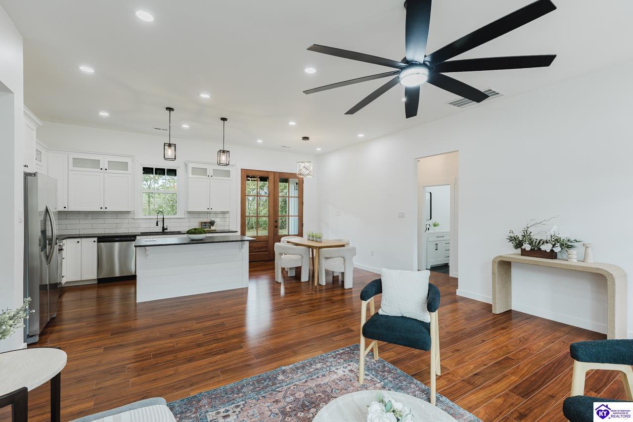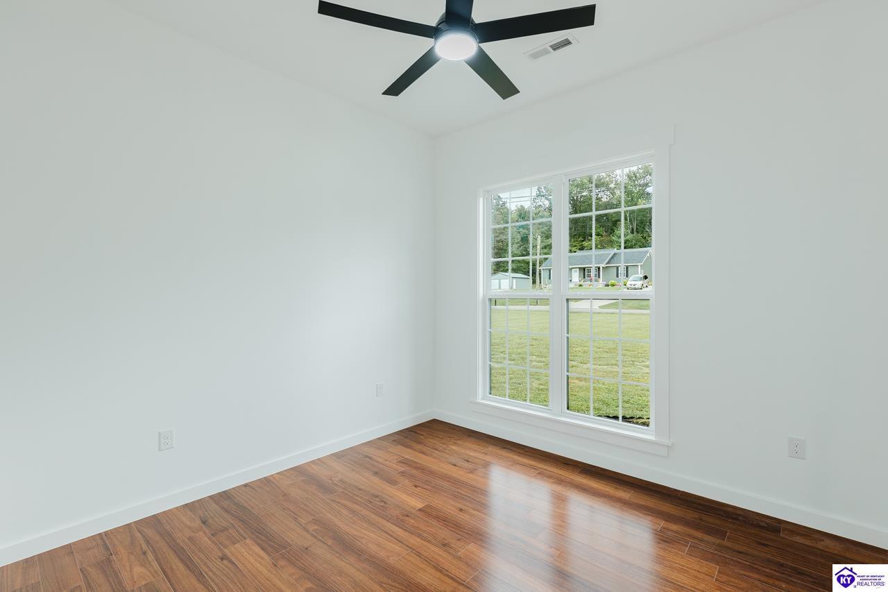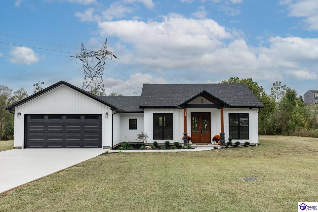 Realtor's notes: Welcome to this stunning new construction home in Elizabethtown, KY, completed in October 2025 and perfectly situated on a spacious 0.68-acre lot. Offering the ideal blend of modern design, energy efficiency, and peaceful country living, this home is conveniently located near Elizabethtown, with quick access to Interstate 65, Lincoln Parkway, and the Western Kentucky Parkway, making commuting and daily travel effortless. Step inside to discover a bright and inviting open-concept floor plan designed for both everyday living and entertaining. The spacious living area flows seamlessly into the dining space and a beautifully appointed kitchen featuring leathered granite countertops, stainless steel appliances, and custom cabinetry—perfect for modern lifestyles. The thoughtfully designed split-bedroom layout offers added privacy, with a relaxing primary suite tucked away from two additional bedrooms—ideal for family, guests, or flexible living needs. Both full bathrooms are finished with granite-top vanities, delivering a clean and upscale feel. A versatile flex room with a sliding barn door adds incredible functionality and can easily serve as a home office, walk-in pantry, mudroom, or bonus space to fit your lifestyle. Built with comfort in mind, this home includes enhanced attic insulation for improved energy efficiency, helping maintain year-round comfort while reducing utility costs. Step outside to enjoy the expansive 0.68-acre yard, offering endless possibilities for outdoor living, gardening, recreation, or simply relaxing in a quiet Kentucky setting. Property Highlights: 3 Bedrooms | 2.5 Bathrooms New Construction (Completed October 2025) Open-Concept Layout with Split-Bedroom Design Flex Room with Barn Door (Office, Pantry, or Mudroom) Leathered Granite Countertops & Granite Bathroom Vanities Stainless Steel Appliances Energy-Efficient Construction with Added Attic Insulation Large 0.68-Acre Lot Convenient Location Near Elizabethtown, I-65, and Major Parkways