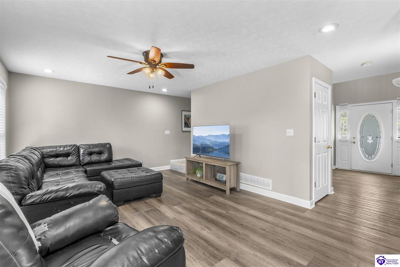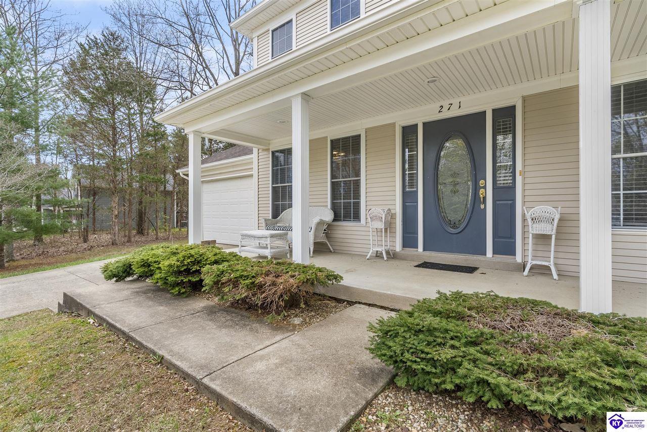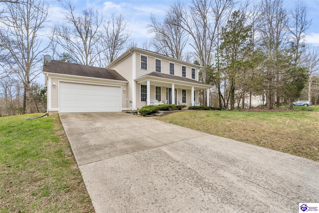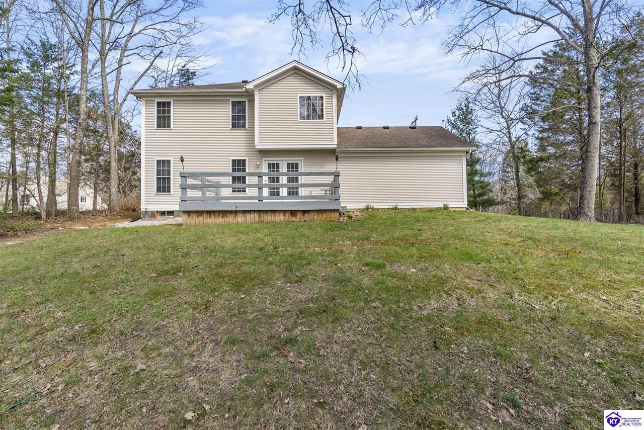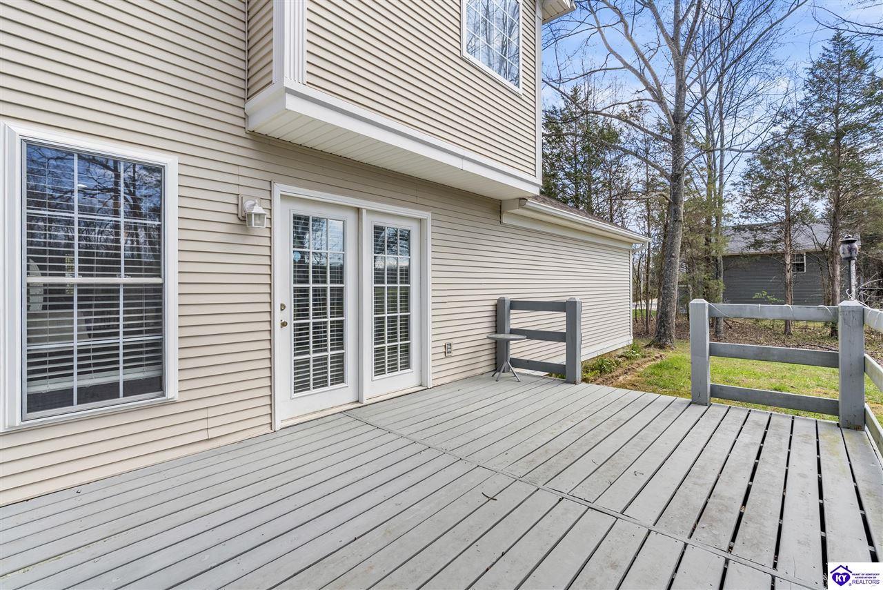 Realtor's notes: Located in the gated lake community of Doe Valley in Brandenburg, KY, this move-in ready 3-bedroom, 2.5-bath home offers a functional layout with multiple living areas and flexible space to fit a variety of needs. The main level features a spacious living room, dining area, and kitchen with ample cabinetry, pantry, and eat-in space. A main-level flex room adds versatility—ideal for a formal dining room, home office, or playroom. Upstairs, the primary suite includes a private bath with soaking tub, separate shower, and walk-in closet. Two additional bedrooms and a full bath complete the upper level. The lower level provides additional space perfect for a recreation room, home gym, or additional living area. Exterior features include a covered front porch, rear deck, 0.43-acre lot, 2-car attached garage, and paved driveway. Enjoy resort-style living in Doe Valley with gated access, a private lake and marina, golf course, swimming pool, clubhouse, and beaches. Conveniently located near Fort Knox, Elizabethtown, and Louisville—ideal for commuters or those relocating to the area.