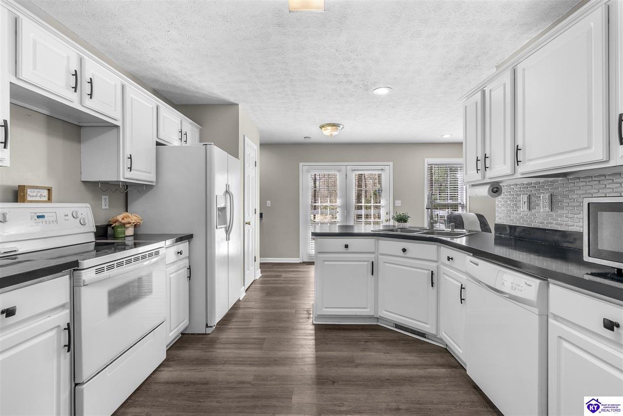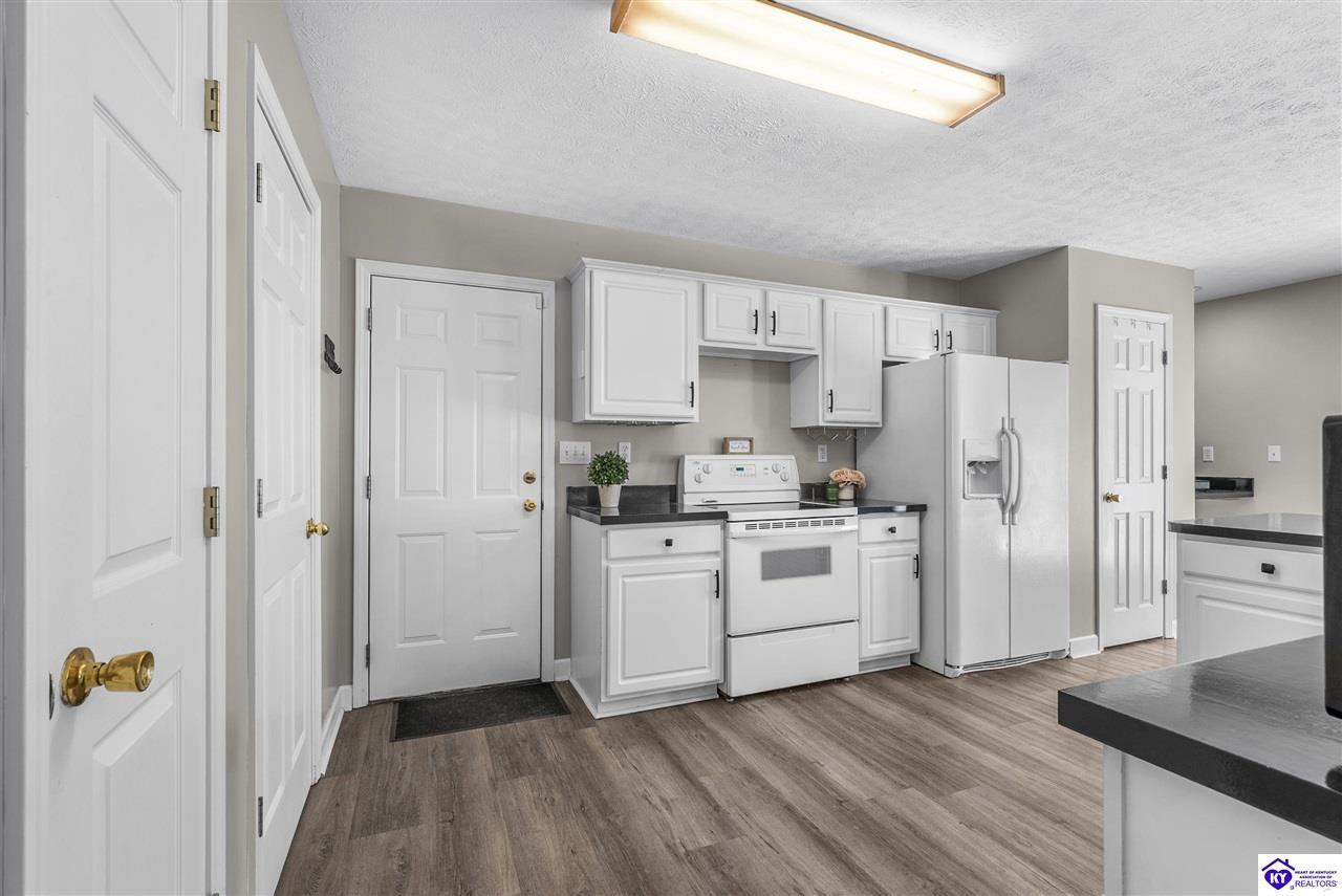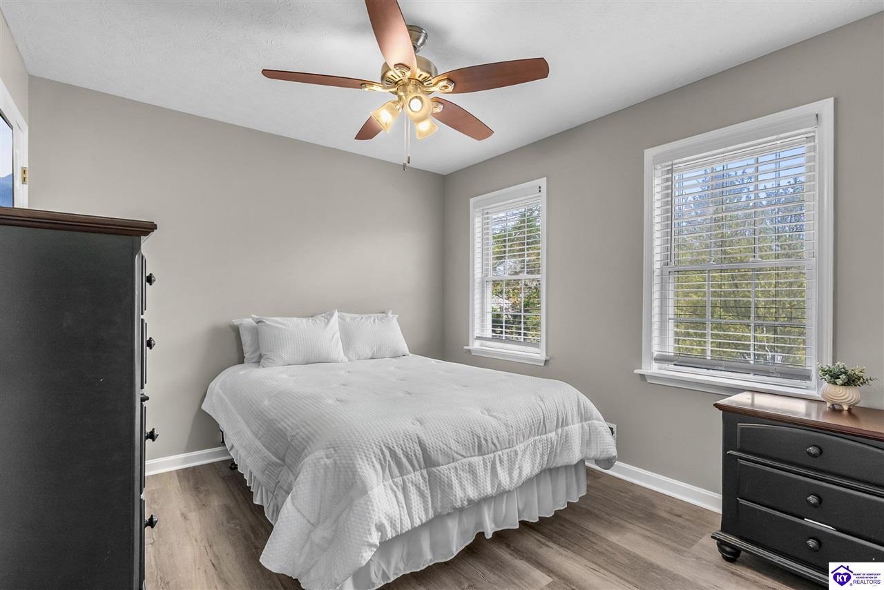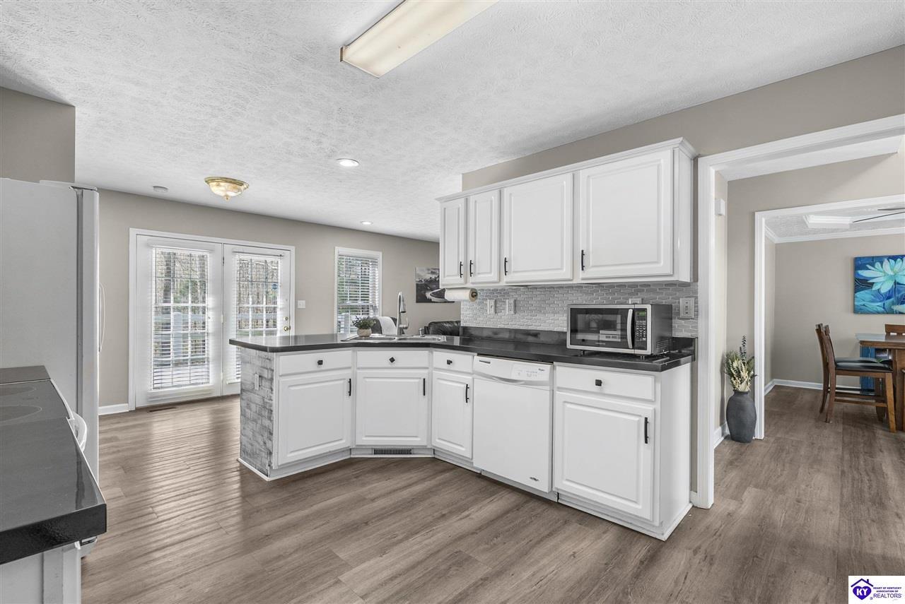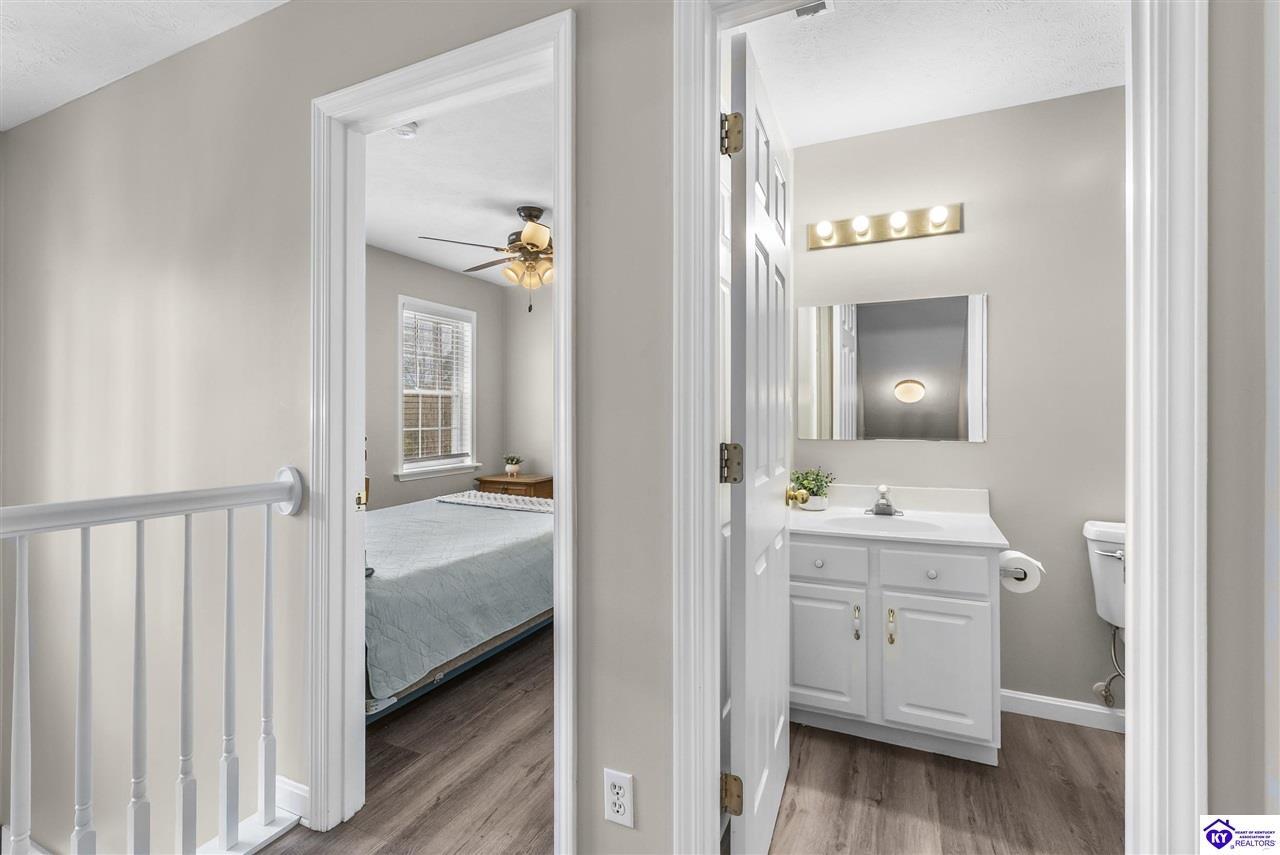Realtor's notes: Located in the gated lake community of Doe Valley in Brandenburg, KY, this move-in ready 3-bedroom, 2.5-bath home offers a functional layout with multiple living areas and flexible space to fit a variety of needs. The main level features a spacious living room, dining area, and kitchen with ample cabinetry, pantry, and eat-in space. A main-level flex room adds versatility—ideal for a formal dining room, home office, or playroom. Upstairs, the primary suite includes a private bath with soaking tub, separate shower, and walk-in closet. Two additional bedrooms and a full bath complete the upper level. The lower level provides additional space perfect for a recreation room, home gym, or additional living area. Exterior features include a covered front porch, rear deck, 0.43-acre lot, 2-car attached garage, and paved driveway. Enjoy resort-style living in Doe Valley with gated access, a private lake and marina, golf course, swimming pool, clubhouse, and beaches. Conveniently located near Fort Knox, Elizabethtown, and Louisville—ideal for commuters or those relocating to the area.