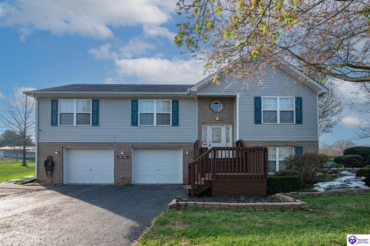 Realtor's notes: Welcome to 260 Cassie’s Way in Vine Grove—located just minutes from Fort Knox, Elizabethtown, and Radcliff! This bi-level home sits on a huge private lot in a peaceful country setting and features a blacktop driveway and large tree-lined back deck perfect for relaxing or entertaining. Inside, you’ll find plenty of space to spread out with multiple living areas, a large primary bedroom with tiled walk-in shower, 2 full baths upstairs, and an additional full bath in the basement. The finished lower level offers extra living space, and the basement refrigerator remains. Additional features include new HVAC, ADT security system, and a 14x24 Built-Rite storage shed for extra storage or workspace. Ideal for buyers searching for a home near Fort Knox with space, privacy, and convenience—don’t miss this one!