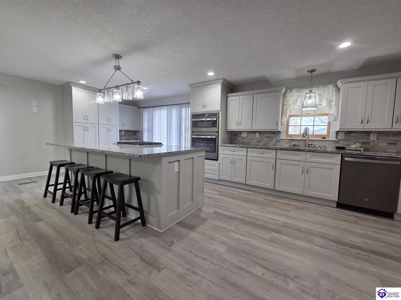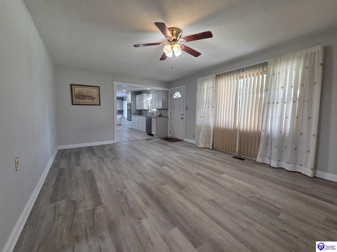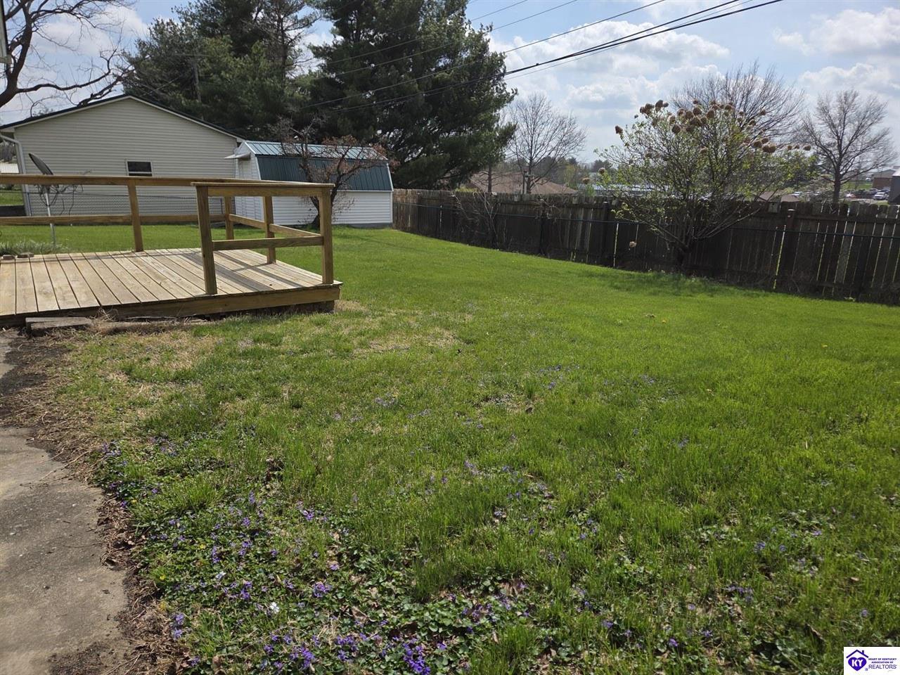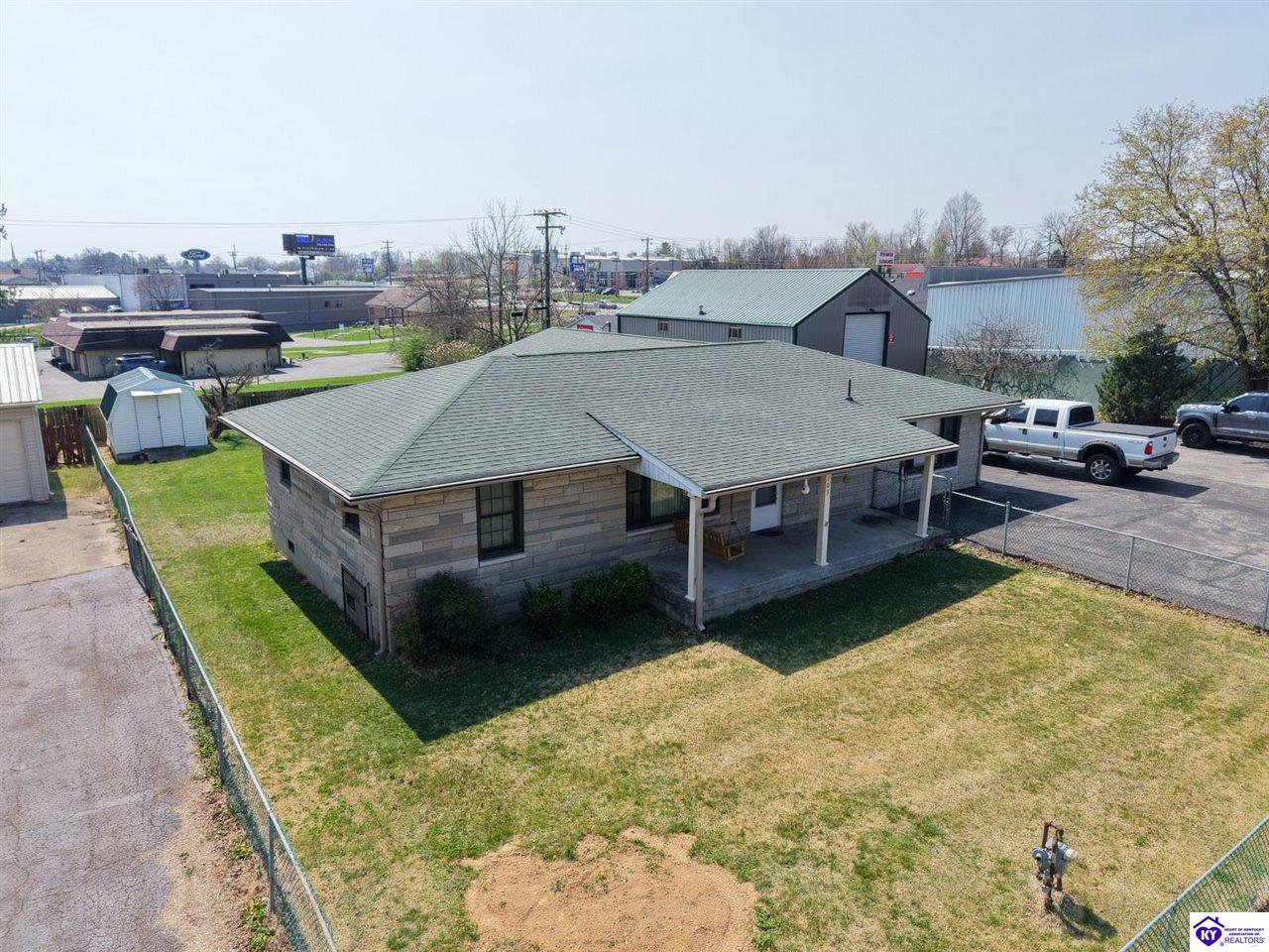 Realtor's notes: This beautifully updated 4-bedroom, 2-bath stone ranch in the heart of Elizabethtown offers nearly 2,000 square feet of comfortable living space on a convenient in-town lot. The classic Bedford stone exterior gives the home tremendous curb appeal, while the thoughtfully renovated interior leaves little to be desired. The stunning kitchen features granite countertops, a gas cooktop island, GE Profile appliances including an over-the-range oven and microwave, dishwasher, refrigerator, and soft-close cabinets. The first full bath impresses with a walk-in tile shower, ceramic tile flooring, and granite finishes, while the second full bath offers a walk-in tub with jacuzzi jets. A spacious enclosed back porch serves as a family room/den and includes laundry hookups and a water softener — a versatile bonus space that adds real everyday functionality. The dining area includes a pantry closet, and the home also features a covered front porch, a deck, and a fenced backyard. Major updates include a new natural gas furnace, on-demand water heater, triple pane windows, and a new roof. The detached metal garage is exceptional — foam insulated and fully equipped with a 15-foot overhead door, a standard overhead door, concrete floors, 220-amp electric, water, a natural gas heater, a fan, and two loft storage areas. A vinyl-sided shed with wood floors completes this outstanding package. Situated just minutes from US-31W with convenient access to all of Elizabethtown's shopping, dining, and services, within walking distance of the beautiful Freeman Lake Park, and only a short drive to Fort Knox, this move-in ready home truly has it all.