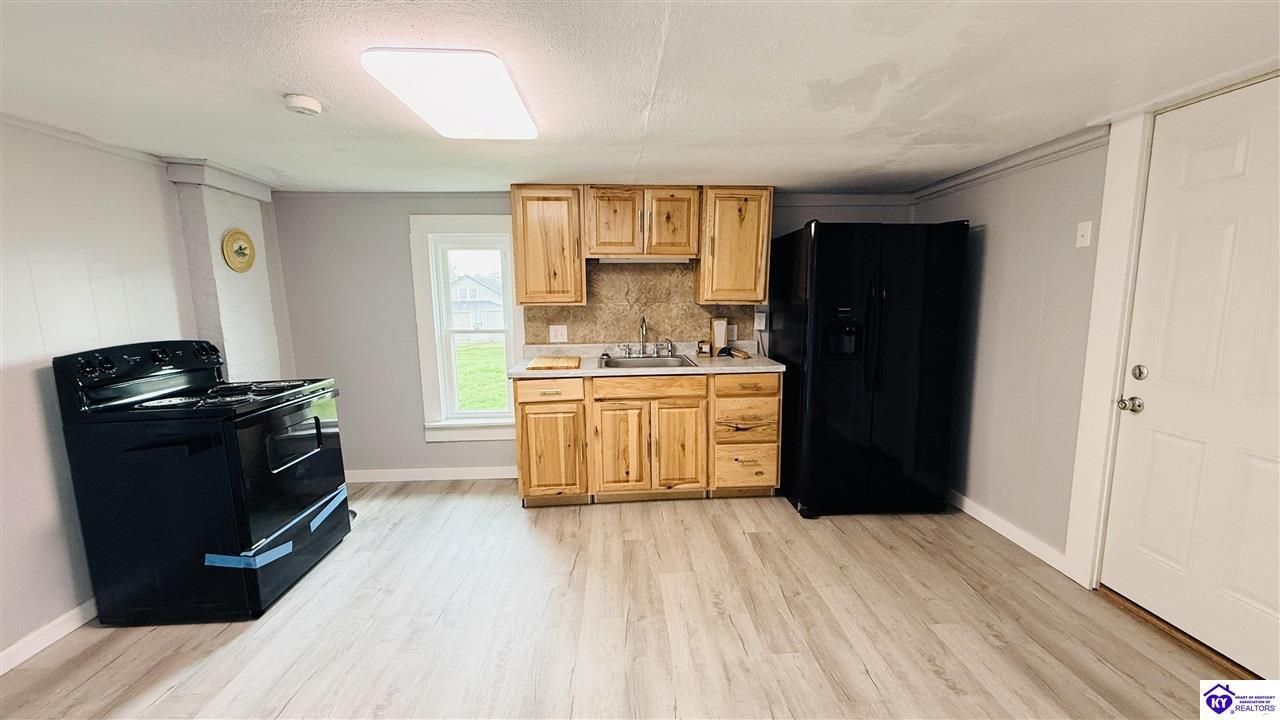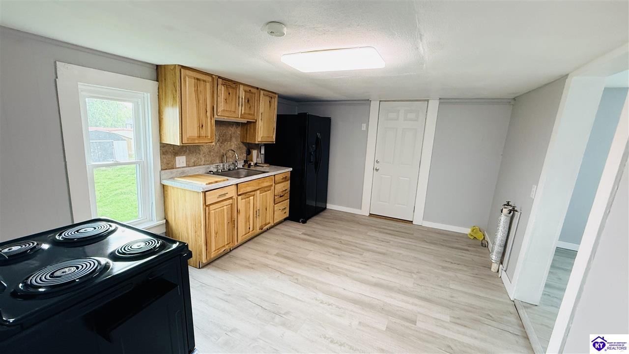 Realtor's notes: Charming and move-in ready, this 728 sq ft home is conveniently located within the city limits of Campbellsville and offers great potential for a starter home, rental investment, or downsizing opportunity. This 2-bedroom, 1-bath home features an eat-in kitchen with washer and dryer hookup located in the kitchen area for added convenience. Recent updates include all new flooring, a newly remodeled bathroom, fresh paint, and new appliances, giving the home a clean and updated feel. Situated on a large corner lot, the property offers plenty of outdoor space and room for possible expansion. Enjoy the convenience of in-town living with the benefit of a spacious lot and recent improvements.