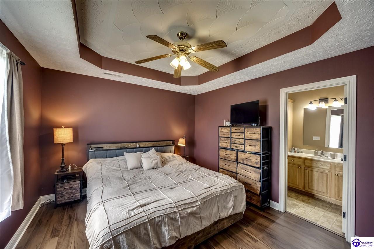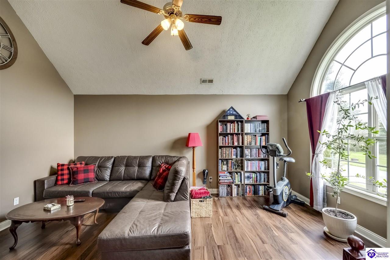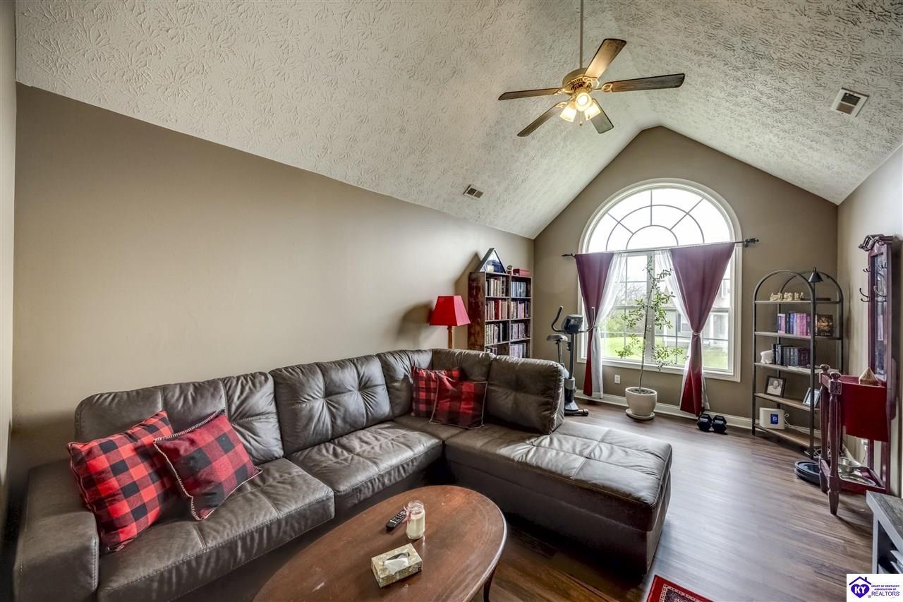 Realtor's notes: Nestled in the heart of gorgeous, historic Bardstown, Kentucky, this move-in ready ranch is the one you've been waiting for! With 3 bedrooms, 2 full baths, split floor plan, this home offers both comfort and privacy for the whole family. Step inside and feel instantly at home. The spacious family room boasts soaring vaulted ceilings that give the space an open, airy feel, perfect for relaxing evenings or gathering with friends. Fresh paint and new flooring give the home a crisp, updated look, while the new HVAC means worry free living from day one. Every inch of this home is thoughtfully laid out and easy to love. When it's time to unwind outdoors, step out back to your private deck and retreat, backing up to a beautiful greenspace and common area that offers that rare peaceful feeling of wide open space right in your backyard. All of this, set in one of Kentucky's most beloved and storied cities. Bardstown's rich history, charming downtown, and warm community spirit make this so much more than just a house . Don't miss your chance to call this gem home. Schedule your showing today!