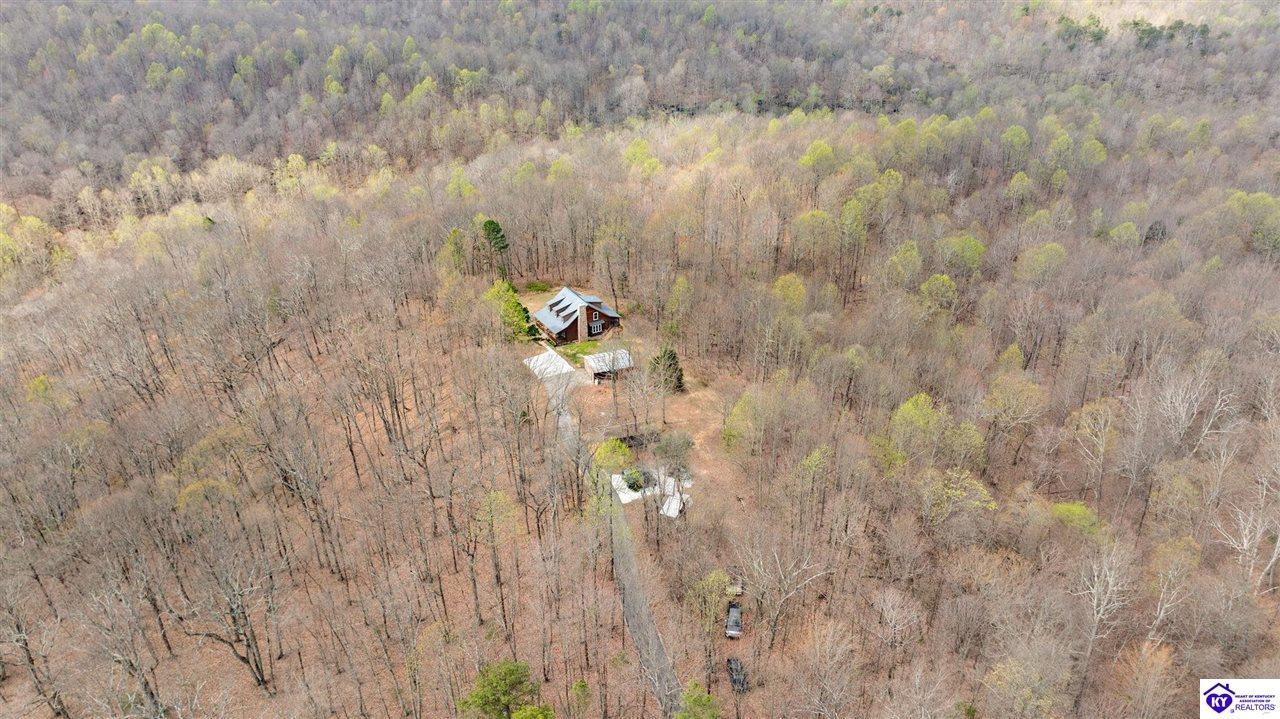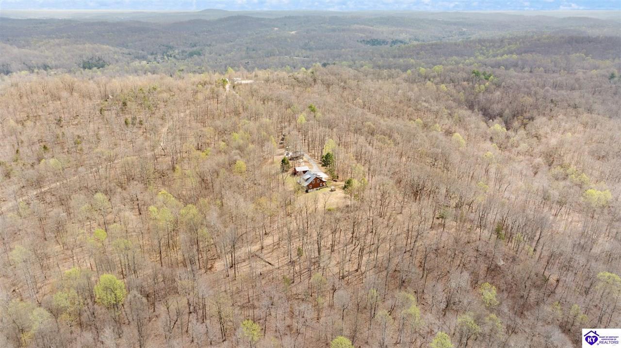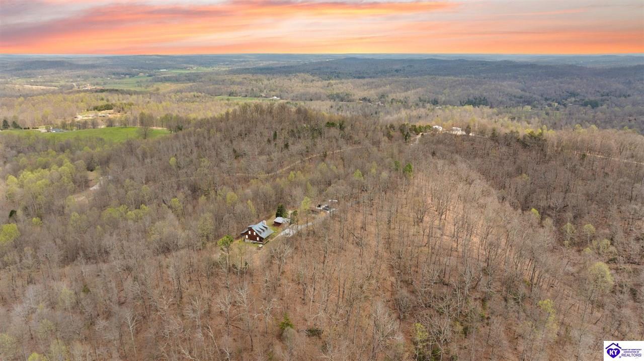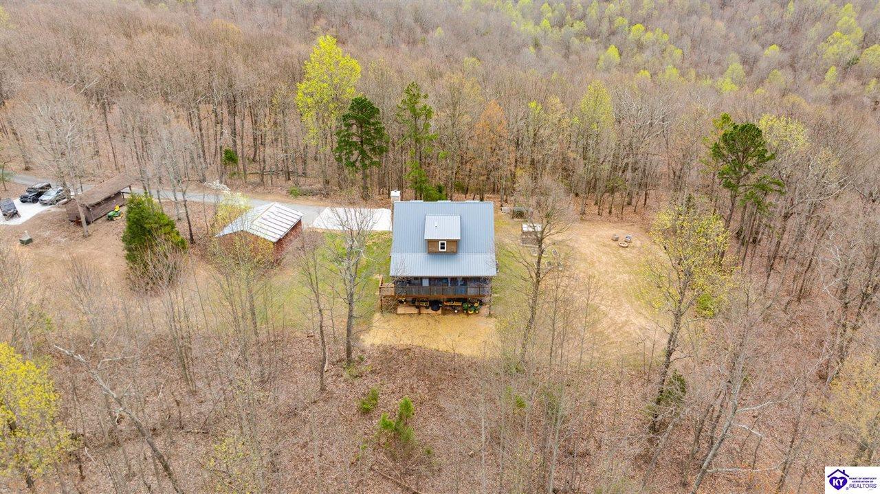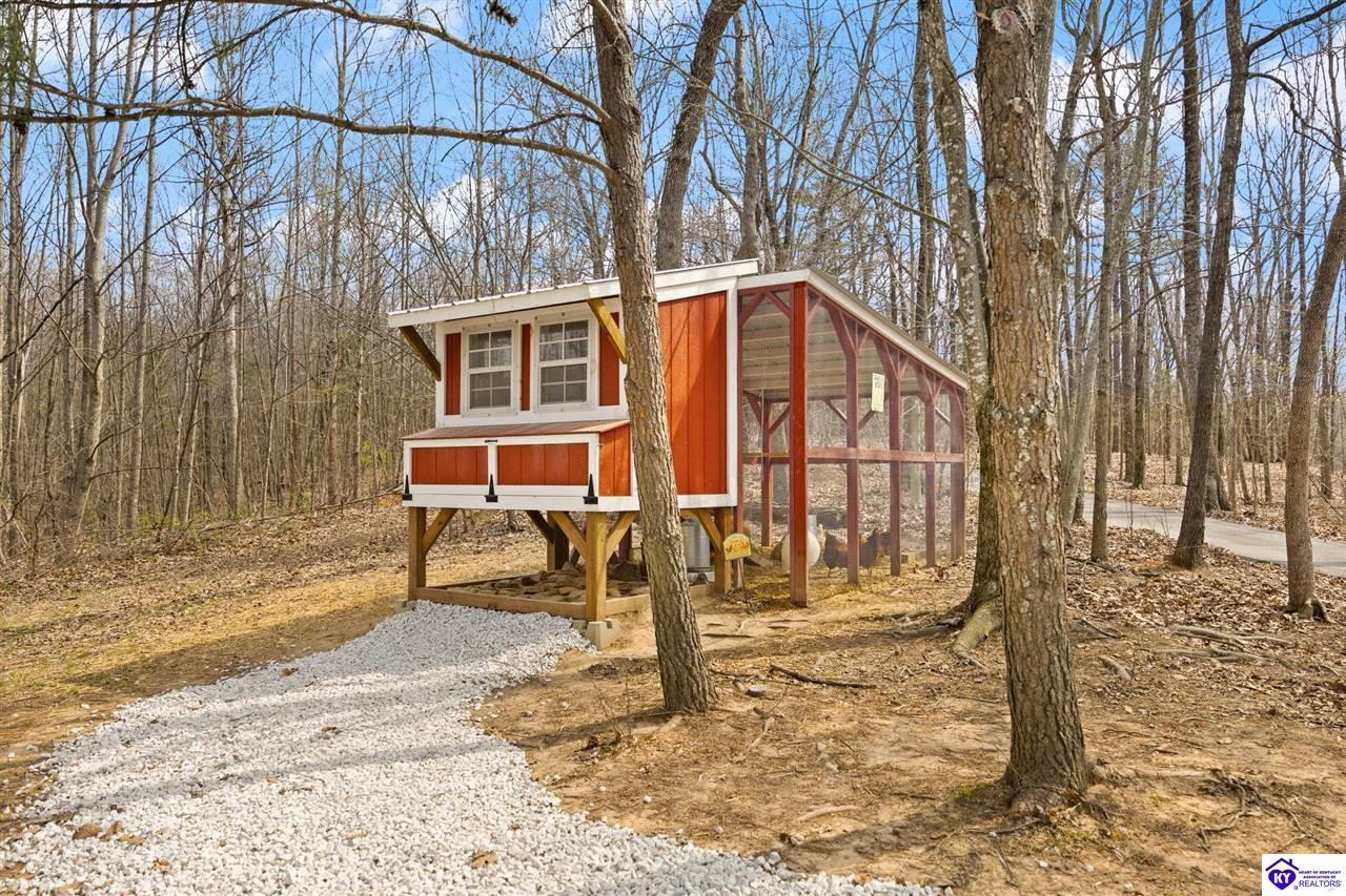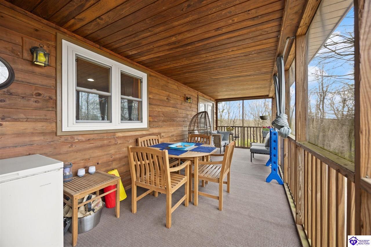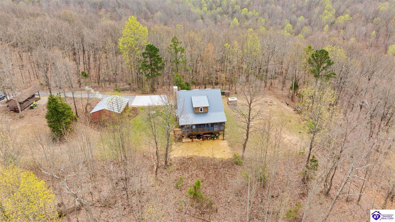 Realtor's notes: Escape to your own private retreat in the heart of Munfordville, KY! Nestled on an incredible 71 wooded acres, this beautiful cabin with wood siding offers the perfect blend of seclusion, comfort, and natural beauty. This 3-bedroom, 2 full bath home features soaring vaulted ceilings and a stunning stacked stone fireplace with chimney, creating a warm and inviting atmosphere. The open living space is filled with natural light and showcases breathtaking views of the surrounding landscape. Upstairs, a loft area provides a peaceful vantage point overlooking the property, while the expansive screened-in back porch—spanning the full length of the home—offers the perfect place to relax and take in the sights and sounds of nature or use as an office space with the fiber internet that is at the property. Accessed by a long blacktop drive behind an electronic security gate at the end of a dead-end county road, this property ensures ultimate privacy. The land itself is truly remarkable, featuring mature hardwoods, three large waterfalls, and an established trail system ideal for ATVs or hiking. The rolling terrain naturally creates prime wildlife corridors, making this a dream property for outdoor enthusiasts, hunters, or anyone seeking a serene escape. For those interested in homesteading, the property is already equipped with a greenhouse and a custom chicken coop. Additional improvements include a 21’ x 31’ detached garage and a 10’ x 20’ shed, providing ample space for storage, hobbies, or equipment. Whether you’re looking for a full-time residence, a weekend getaway, or a private recreational haven, this one-of-a-kind property offers endless possibilities.