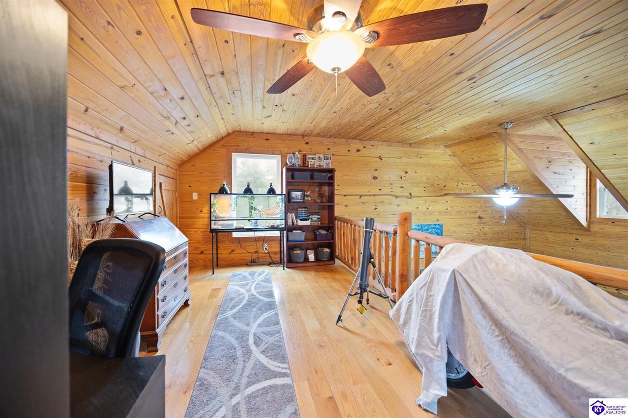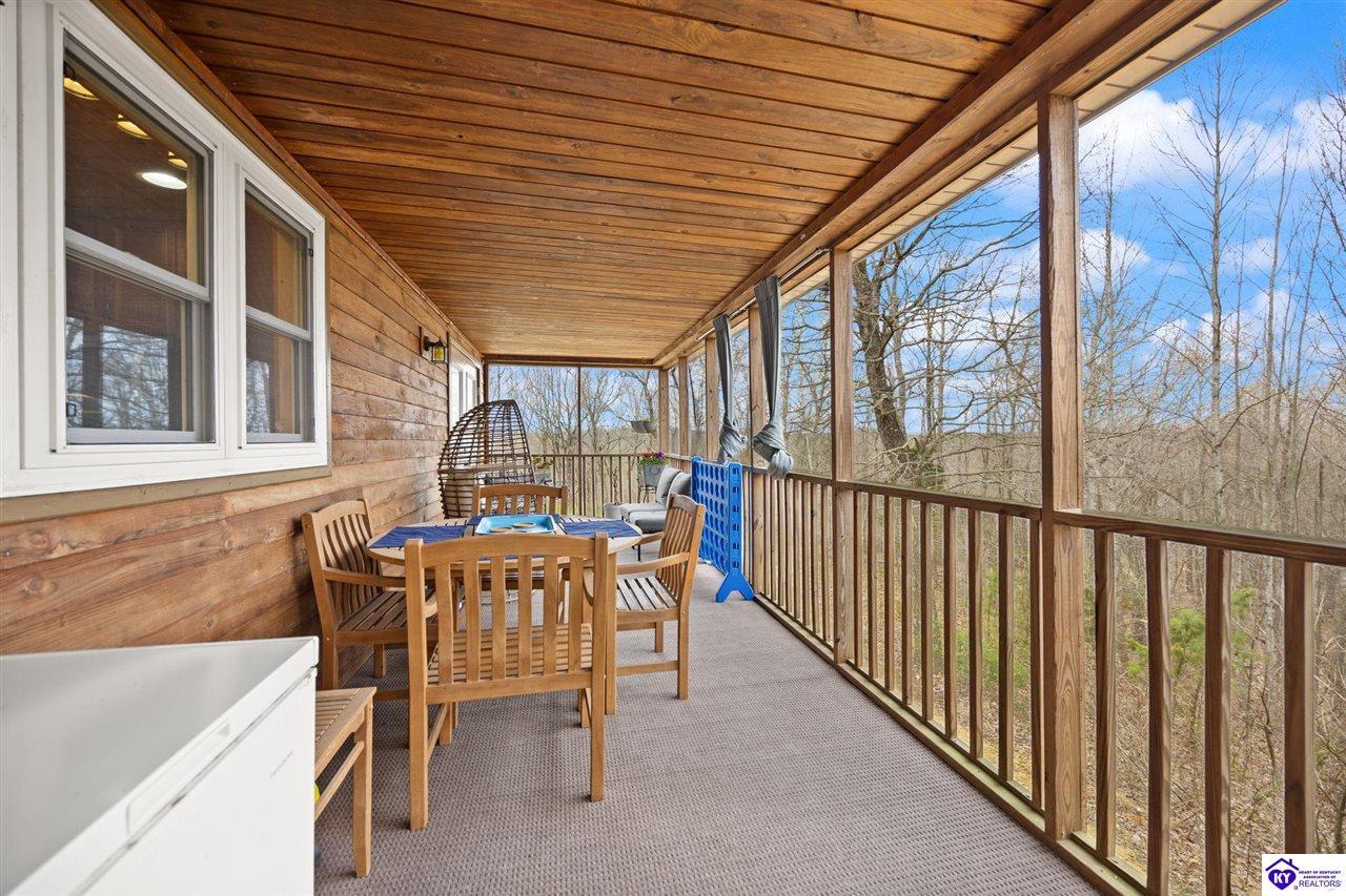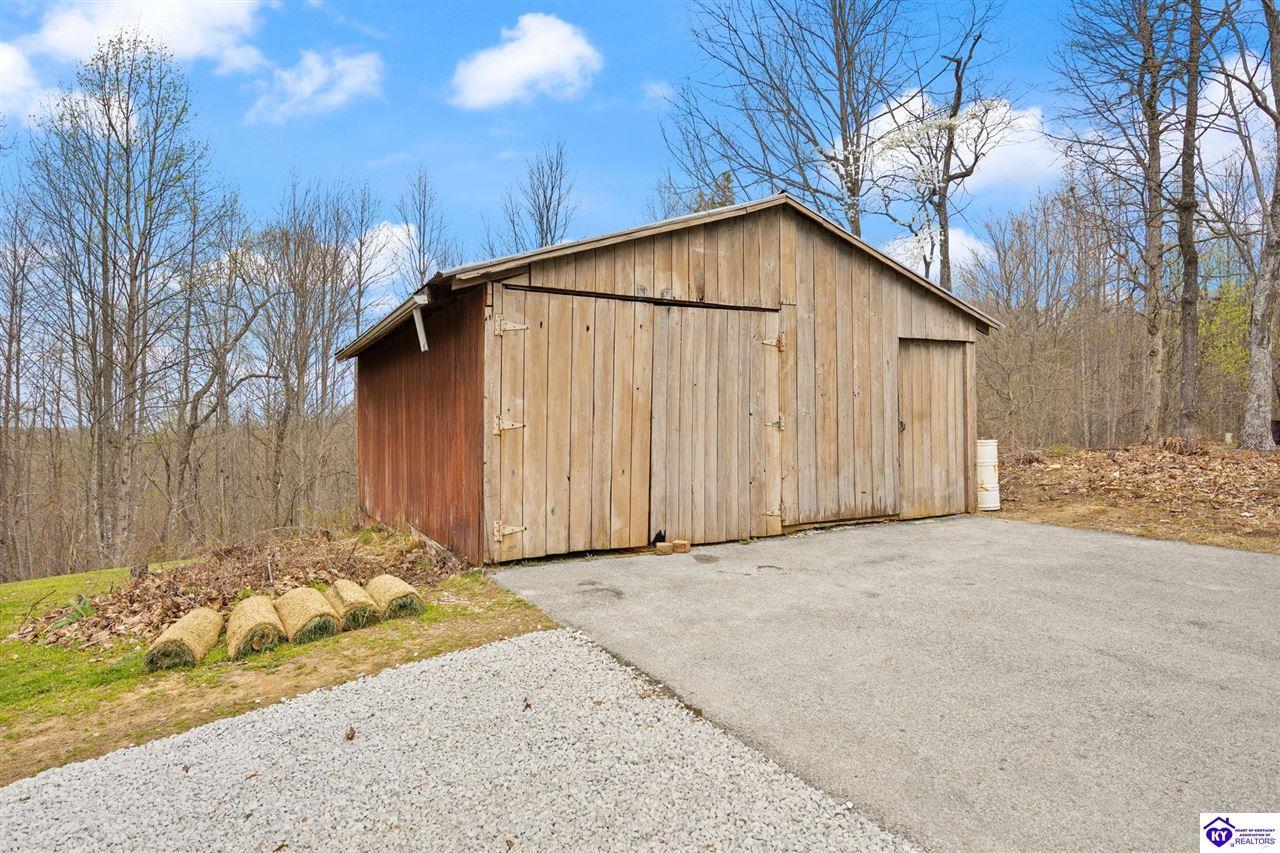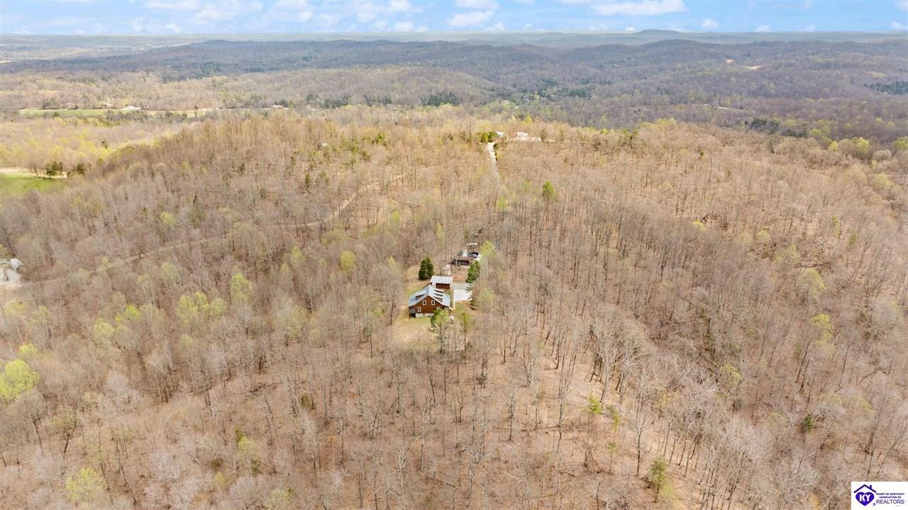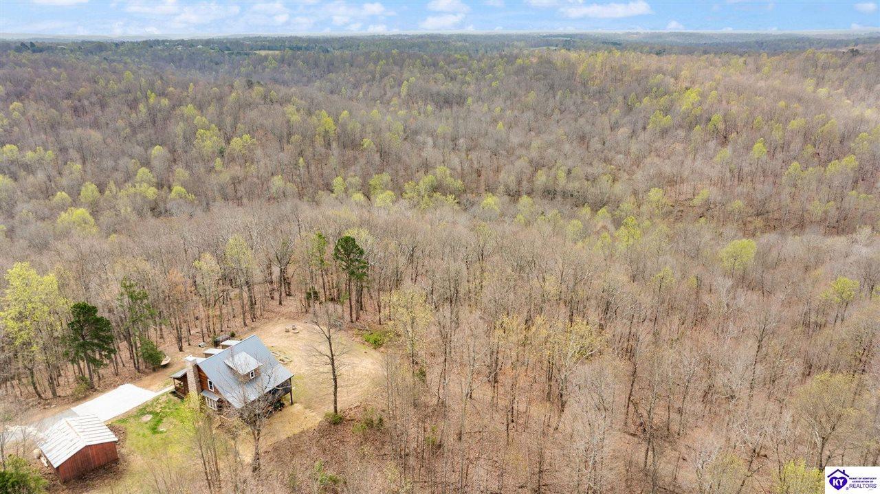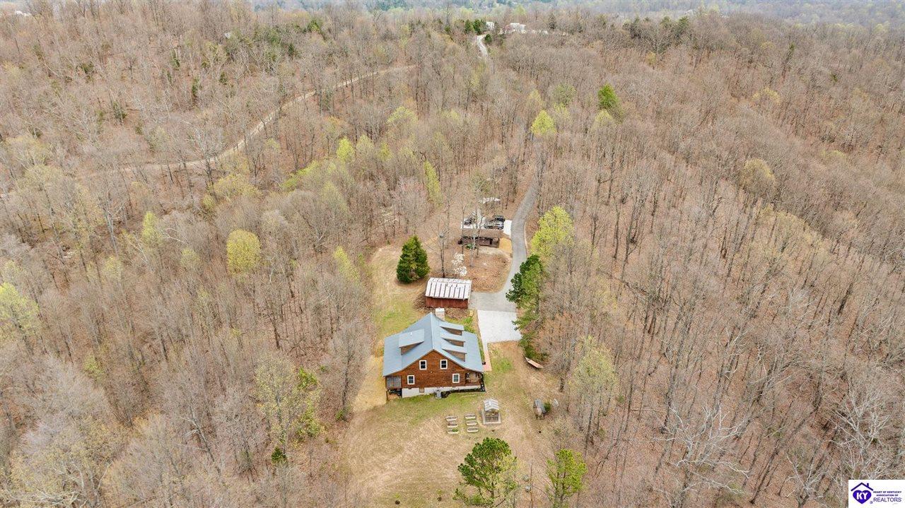 Realtor's notes: Escape to your own private retreat in the heart of Munfordville, KY! Nestled on an incredible 71 wooded acres, this beautiful cabin with wood siding offers the perfect blend of seclusion, comfort, and natural beauty. This 3-bedroom, 2 full bath home features soaring vaulted ceilings and a stunning stacked stone fireplace with chimney, creating a warm and inviting atmosphere. The open living space is filled with natural light and showcases breathtaking views of the surrounding landscape. Upstairs, a loft area provides a peaceful vantage point overlooking the property, while the expansive screened-in back porch—spanning the full length of the home—offers the perfect place to relax and take in the sights and sounds of nature or use as an office space with the fiber internet that is at the property. Accessed by a long blacktop drive behind an electronic security gate at the end of a dead-end county road, this property ensures ultimate privacy. The land itself is truly remarkable, featuring mature hardwoods, three large waterfalls, and an established trail system ideal for ATVs or hiking. The rolling terrain naturally creates prime wildlife corridors, making this a dream property for outdoor enthusiasts, hunters, or anyone seeking a serene escape. For those interested in homesteading, the property is already equipped with a greenhouse and a custom chicken coop. Additional improvements include a 21’ x 31’ detached garage and a 10’ x 20’ shed, providing ample space for storage, hobbies, or equipment. Whether you’re looking for a full-time residence, a weekend getaway, or a private recreational haven, this one-of-a-kind property offers endless possibilities.