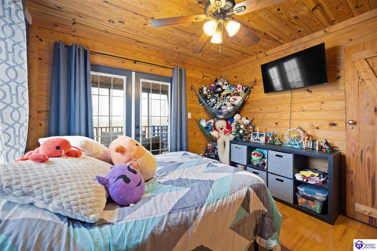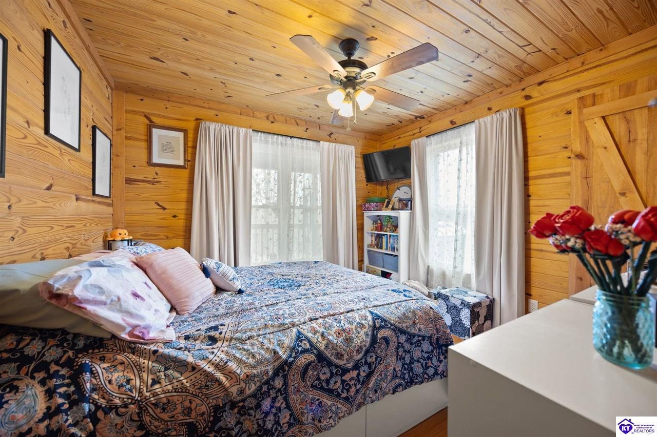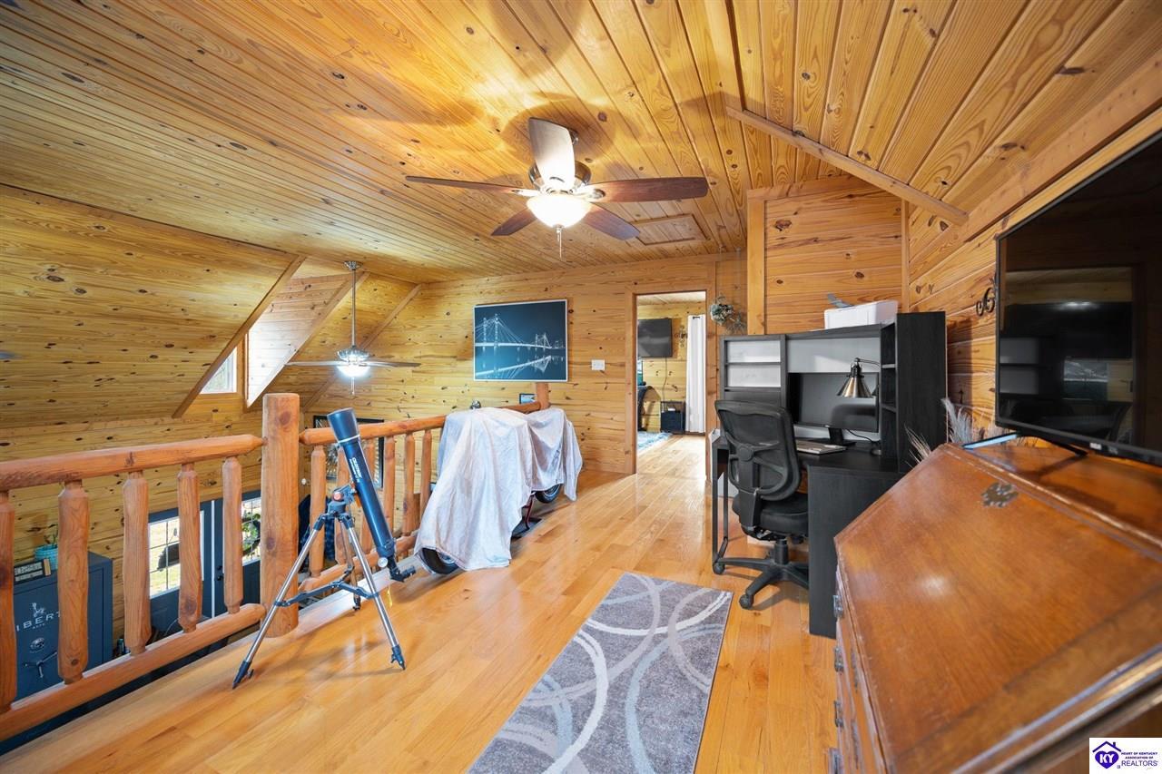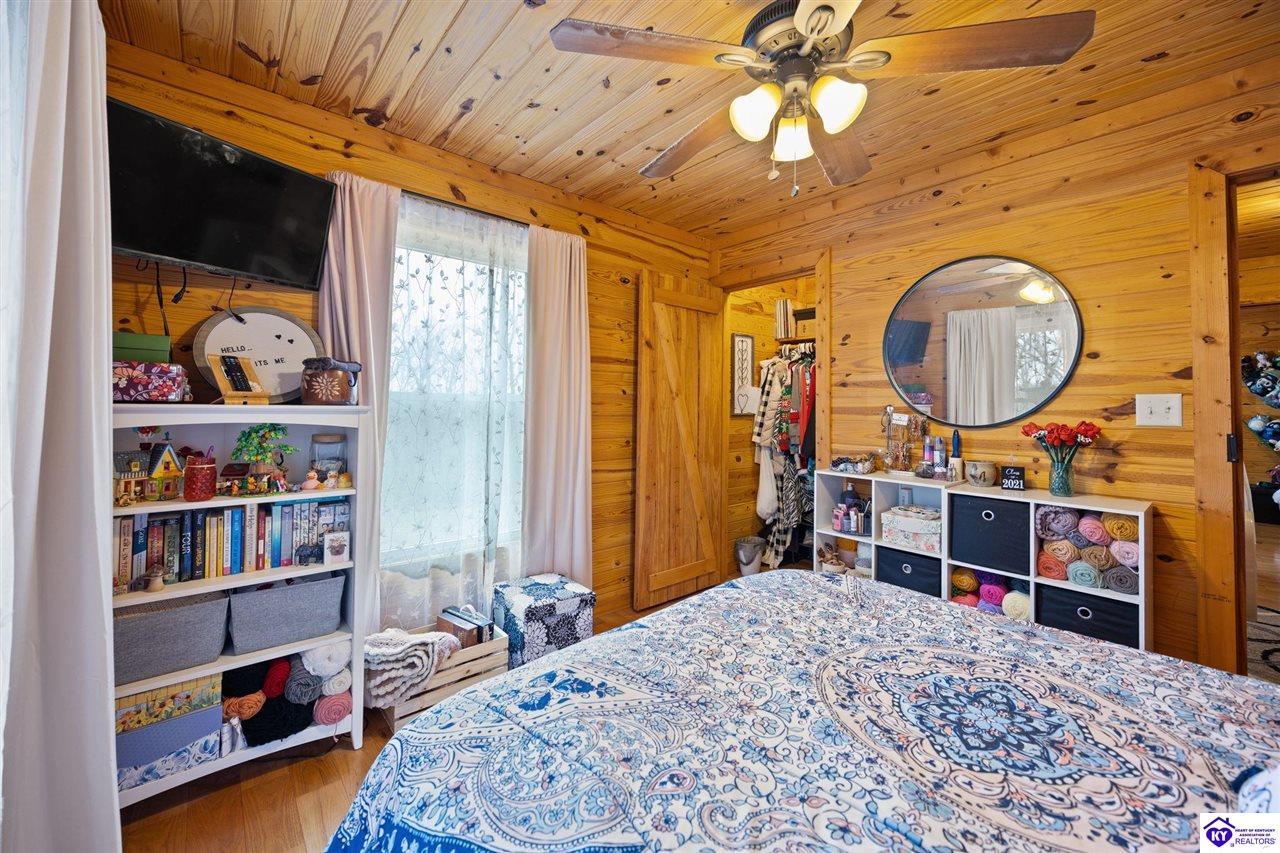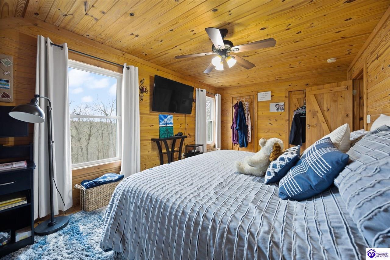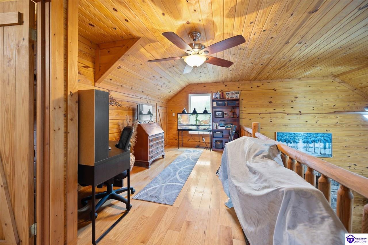 Realtor's notes: Escape to your own private retreat in the heart of Munfordville, KY! Nestled on an incredible 71 wooded acres, this beautiful cabin with wood siding offers the perfect blend of seclusion, comfort, and natural beauty. This 3-bedroom, 2 full bath home features soaring vaulted ceilings and a stunning stacked stone fireplace with chimney, creating a warm and inviting atmosphere. The open living space is filled with natural light and showcases breathtaking views of the surrounding landscape. Upstairs, a loft area provides a peaceful vantage point overlooking the property, while the expansive screened-in back porch—spanning the full length of the home—offers the perfect place to relax and take in the sights and sounds of nature or use as an office space with the fiber internet that is at the property. Accessed by a long blacktop drive behind an electronic security gate at the end of a dead-end county road, this property ensures ultimate privacy. The land itself is truly remarkable, featuring mature hardwoods, three large waterfalls, and an established trail system ideal for ATVs or hiking. The rolling terrain naturally creates prime wildlife corridors, making this a dream property for outdoor enthusiasts, hunters, or anyone seeking a serene escape. For those interested in homesteading, the property is already equipped with a greenhouse and a custom chicken coop. Additional improvements include a 21’ x 31’ detached garage and a 10’ x 20’ shed, providing ample space for storage, hobbies, or equipment. Whether you’re looking for a full-time residence, a weekend getaway, or a private recreational haven, this one-of-a-kind property offers endless possibilities.