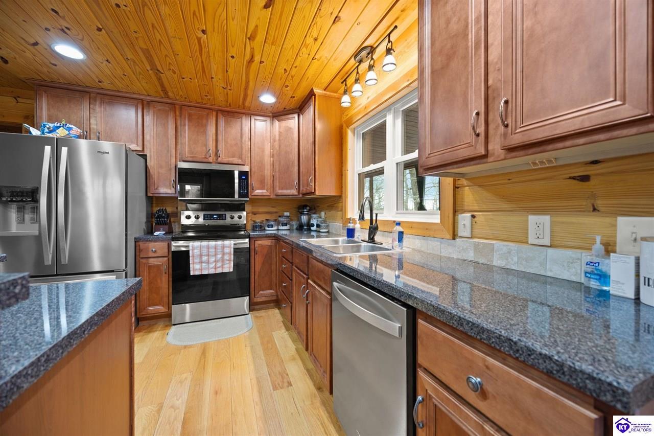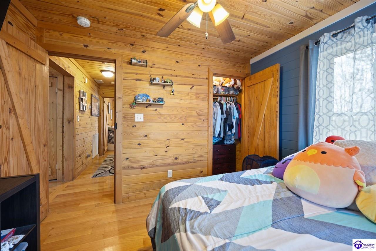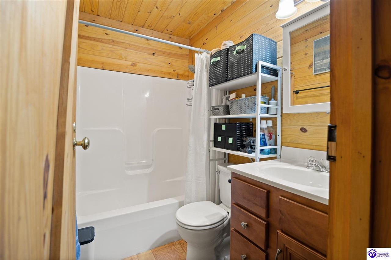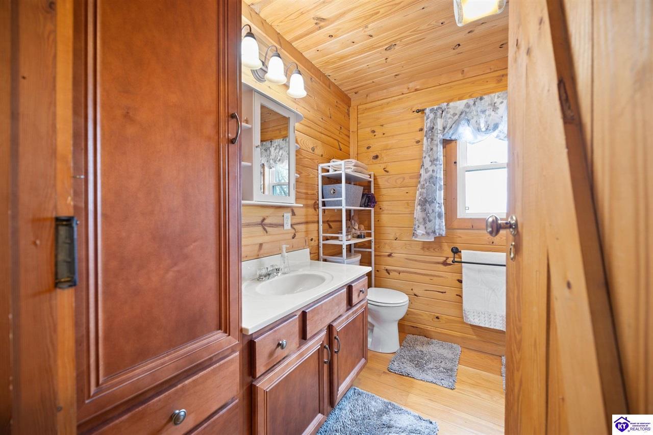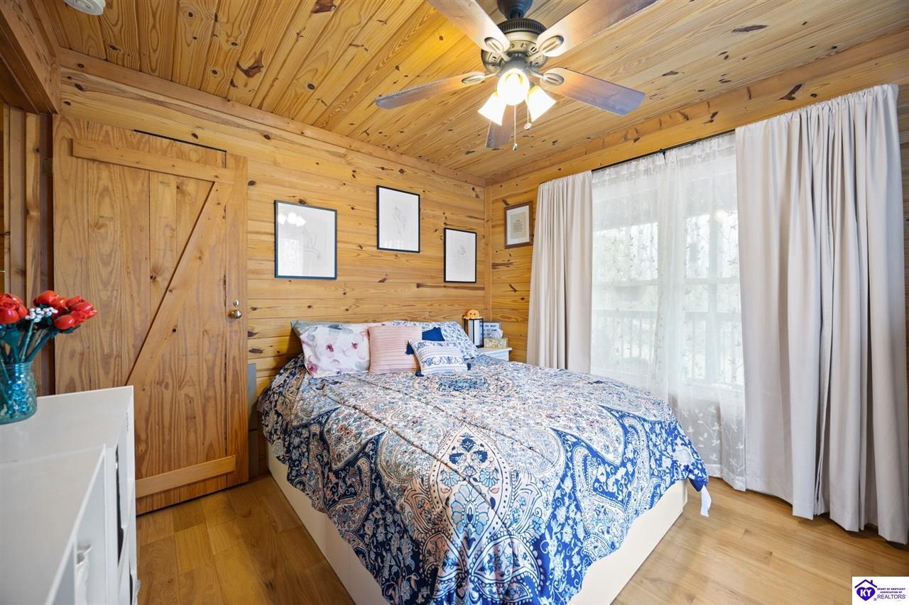 Realtor's notes: Escape to your own private retreat in the heart of Munfordville, KY! Nestled on an incredible 71 wooded acres, this beautiful cabin with wood siding offers the perfect blend of seclusion, comfort, and natural beauty. This 3-bedroom, 2 full bath home features soaring vaulted ceilings and a stunning stacked stone fireplace with chimney, creating a warm and inviting atmosphere. The open living space is filled with natural light and showcases breathtaking views of the surrounding landscape. Upstairs, a loft area provides a peaceful vantage point overlooking the property, while the expansive screened-in back porch—spanning the full length of the home—offers the perfect place to relax and take in the sights and sounds of nature or use as an office space with the fiber internet that is at the property. Accessed by a long blacktop drive behind an electronic security gate at the end of a dead-end county road, this property ensures ultimate privacy. The land itself is truly remarkable, featuring mature hardwoods, three large waterfalls, and an established trail system ideal for ATVs or hiking. The rolling terrain naturally creates prime wildlife corridors, making this a dream property for outdoor enthusiasts, hunters, or anyone seeking a serene escape. For those interested in homesteading, the property is already equipped with a greenhouse and a custom chicken coop. Additional improvements include a 21’ x 31’ detached garage and a 10’ x 20’ shed, providing ample space for storage, hobbies, or equipment. Whether you’re looking for a full-time residence, a weekend getaway, or a private recreational haven, this one-of-a-kind property offers endless possibilities.
