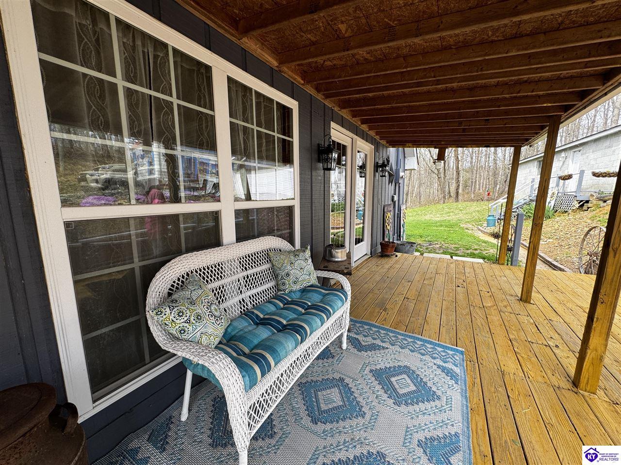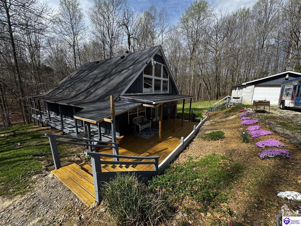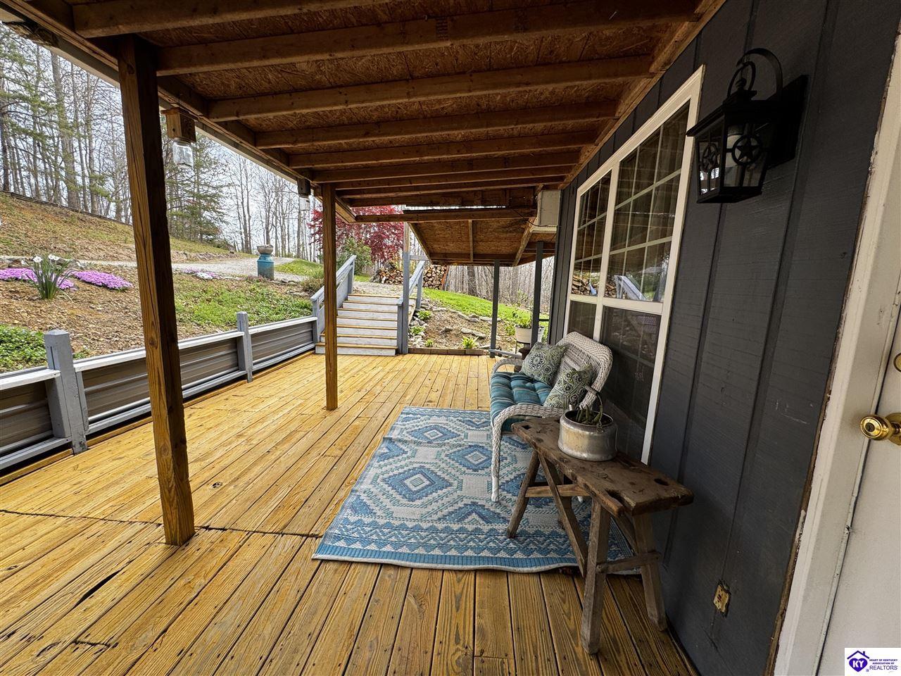 Exterior Covered Front Porch, Workshop, Covered Deck, Landscaping, Trees