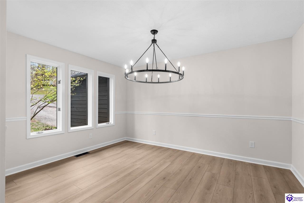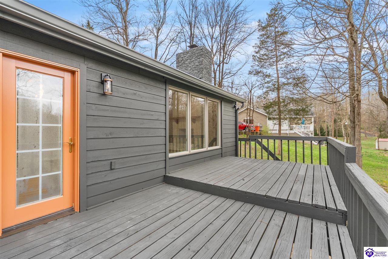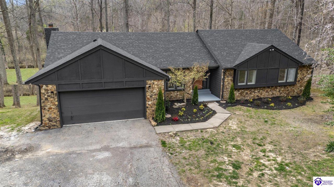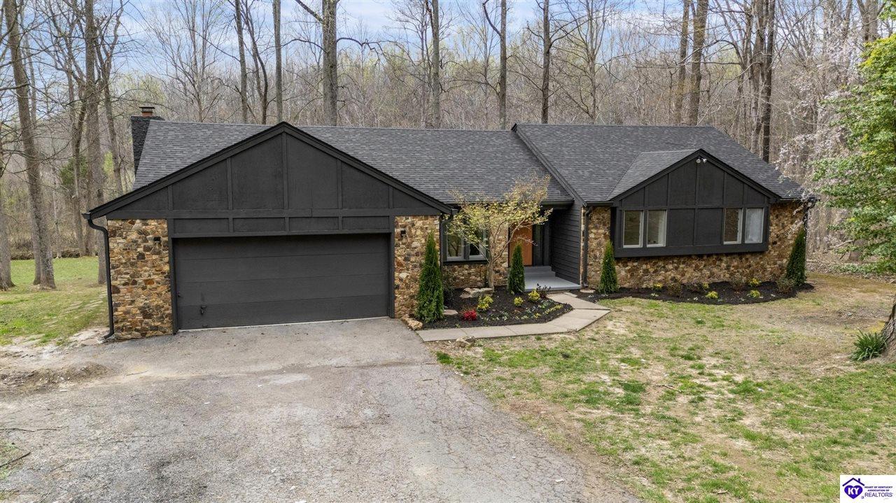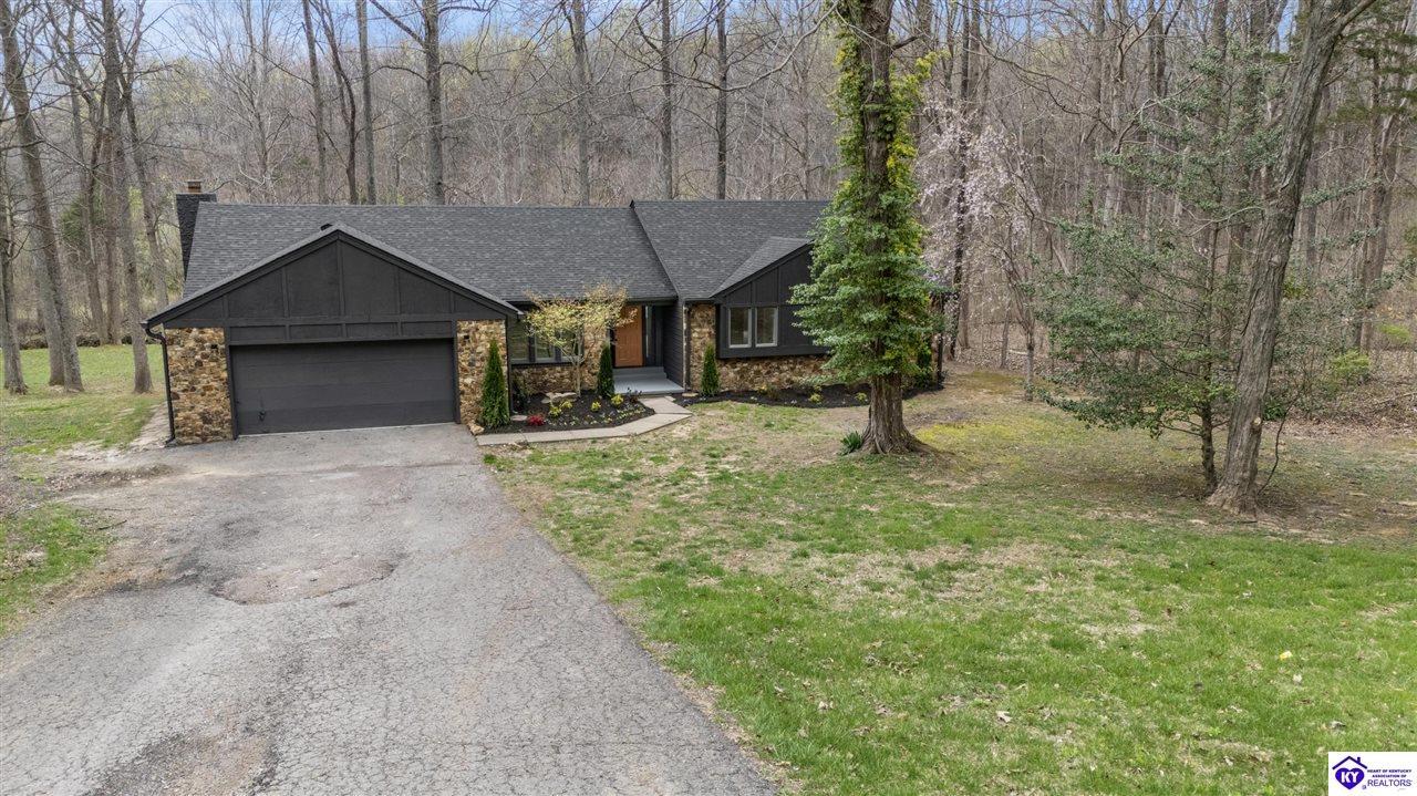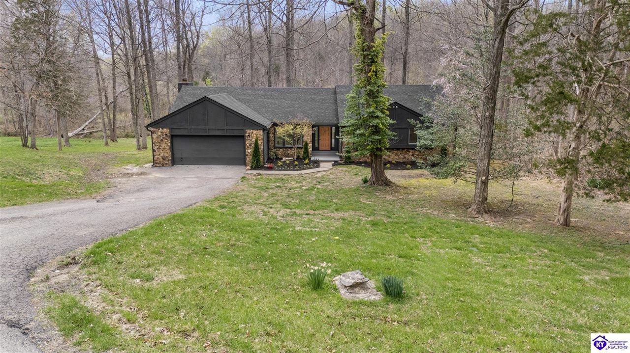 Realtor's notes: Welcome to 328 Thicket Drive. This exquisitely renovated ranch is situated on a little under an acre wooded lot in The Woods neighborhood in Elizabethtown. Backing up to 110 acres of undeveloped forest, this property offers the ultimate feeling of peace and seclusion while being just minutes away from all the stores and restaurants. Mature trees and lovely fresh landscaping greet you as you walk up to this home. Heading inside you will discover an open and inviting layout offering a perfect blend of modern elegance and comfort. Beautiful new wide plank WPC flooring, fresh neutral tones, contemporary fixtures, and abundant natural light make this home feel bright and airy throughout. From the foyer you can access the formal dining room, with room to seat 8 to 10 people, the living room, or head into the open kitchen and family room. The absolutely stunning eat-in kitchen boasts ample cabinetry with all new hardware, white quartz countertops, tile backsplash, stainless-steel appliances including smooth top range, island with breakfast bar, and planning desk. The fabulous, vaulted family room is highlighted by a stone, wood burning fireplace with mantle and you will love the view of the surrounding woods that the three large rear windows provide. The short hallway off the living room provides access to the bedrooms and baths. The primary suite offers a spacious bedroom, large walk-in closet, and all new bath boasting a gorgeous new double vanity with quartz top. There are two more generously sized bedrooms, each with large closets, and a 2nd all new full bath also offering a double vanity with quartz top. Rounding out the interior of this home is a convenient laundry and mud room connecting the kitchen to the attached two car garage. Heading out back, through the rear kitchen door, leads you onto a fantastic 10’ x 22’ two-tiered deck providing a great space for those summer barbeques or just relaxing and enjoying nature. Under the deck is a nice covered patio that leads to the basement entrance. This unfinished basement offers a good size room offering plenty of storage space, a small workshop area, and access to the furnace and water heater. The enormous backyard is populated with numerous mature trees while still offering tons of space of kids or pets to play in. Additional updates include: new roof with architectural shingles, new carpet in all bedrooms, new door hardware, new light fixtures throughout, and fresh paint throughout. Schedule a showing today!