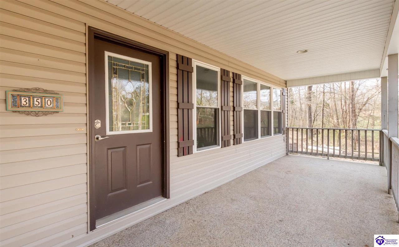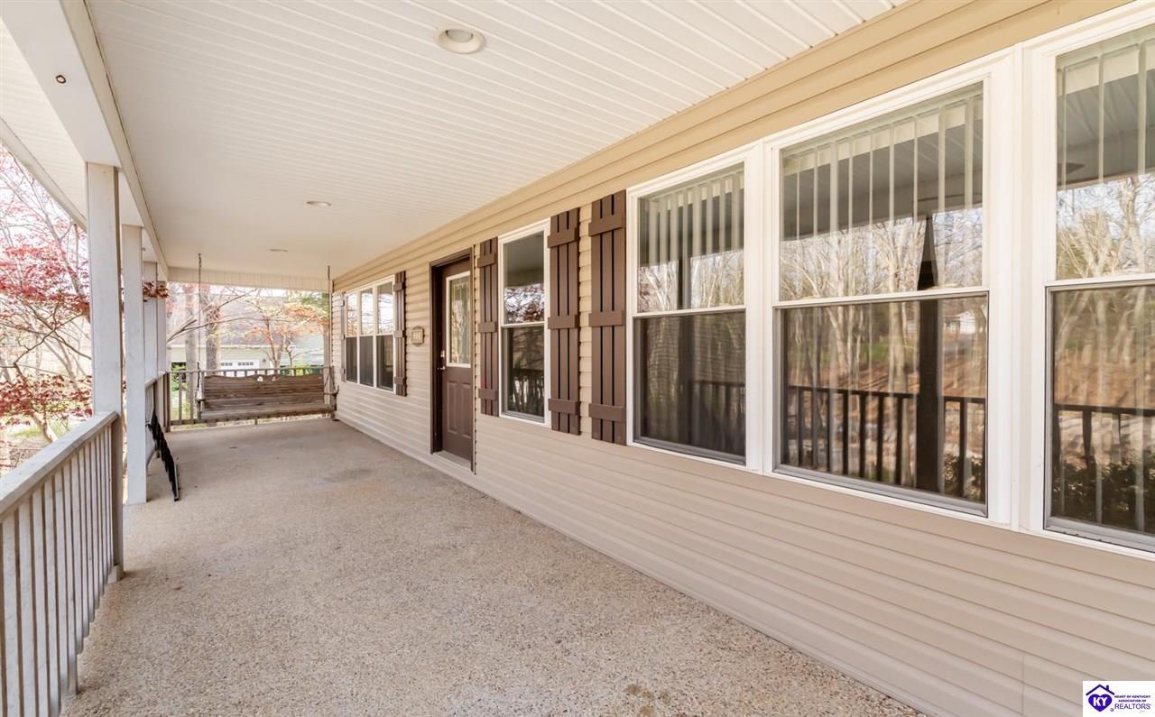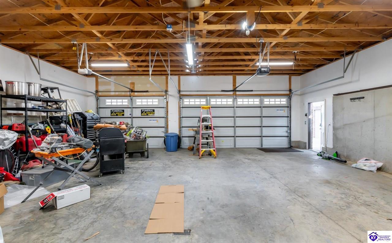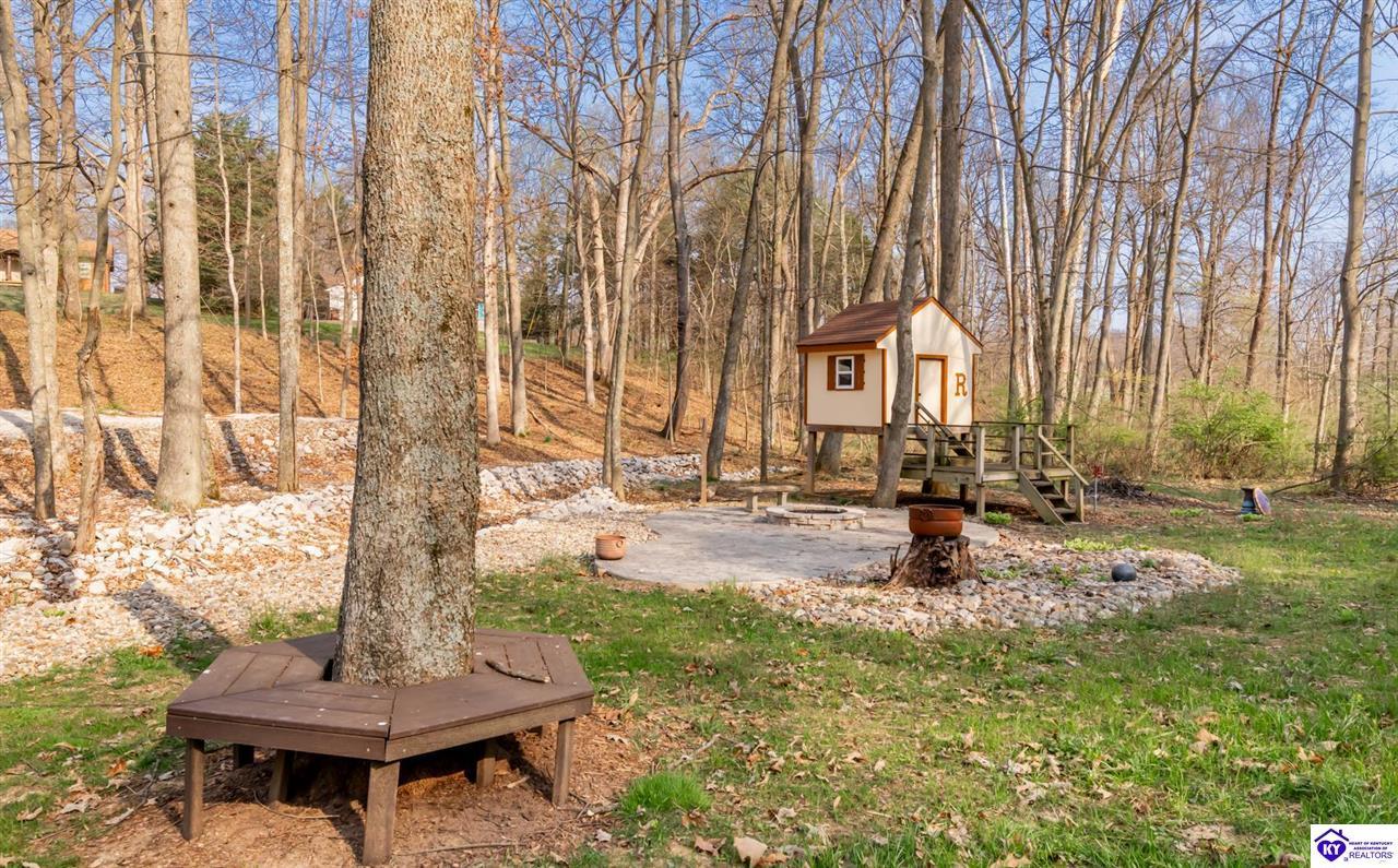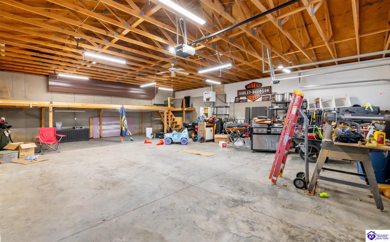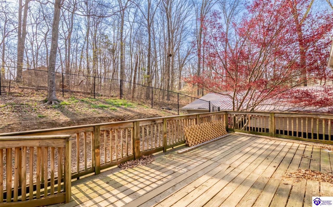 Realtor's notes: This Cape-style home features a unique and thoughtfully designed floorplan that stands apart from the typical Cape layout. Situated on a beautifully landscaped, wooded, and private park-like acre in Elizabethtown, KY, the home offers approximately 2,700 square feet with 3 bedrooms and 3 full bathrooms. The main living area showcases vaulted ceilings and an open layout with a dedicated dining area. The updated kitchen features granite countertops, a gorgeous tile backsplash, and a large eat-in bar. An open loft adds flexible space, while two propane fireplaces provide warmth and character. The home is equipped with an efficient gas furnace and central air conditioning to help keep utility costs manageable. The partially finished basement includes additional living or recreational space, a full bathroom, and an in-home tornado shelter. Outdoor features include a fenced backyard, a deck off the back of the home, and a large covered front porch overlooking the peaceful setting. The property offers exceptional garage and workspace options, including an attached 1-car garage with workshop area and a 32x40 detached garage built by Phillips Homes in 2015. This structure includes one 16 door, one 10 door, matching exterior finishes, loft space, a 100-amp panel, ventless propane heater, and reinforced concrete walls. With solid construction, a distinctive layout, and a wide range of functional features, this property presents a rare opportunity in a desirable Elizabethtown location.