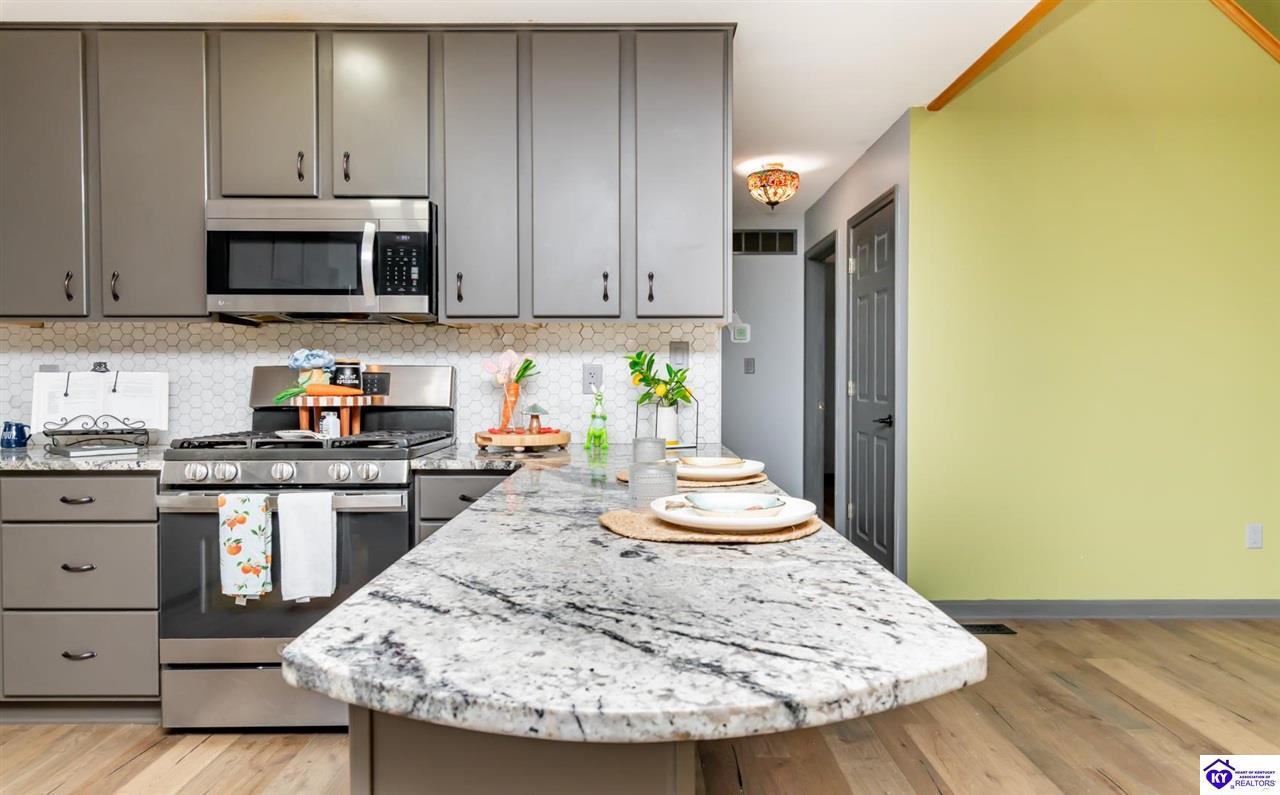 Kitchen Eat-In, Granite Counter Tops, Kitchen Bar, Microwave, Range Gas, Refrigerator