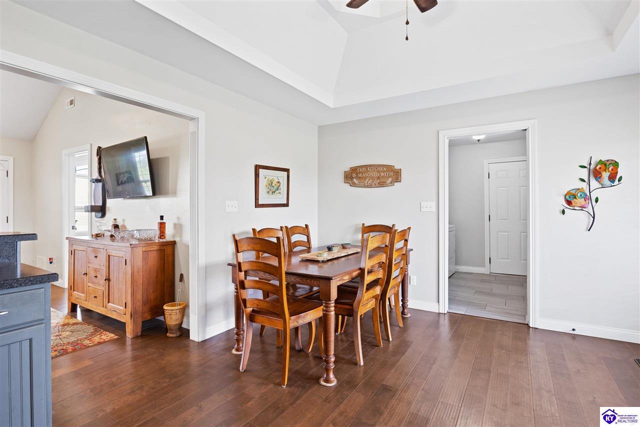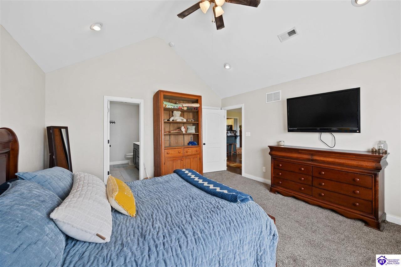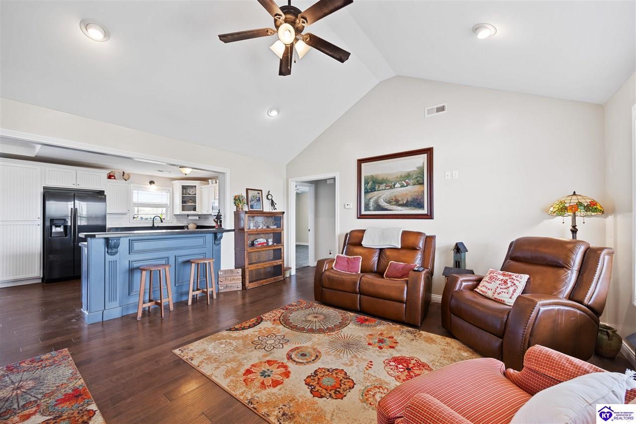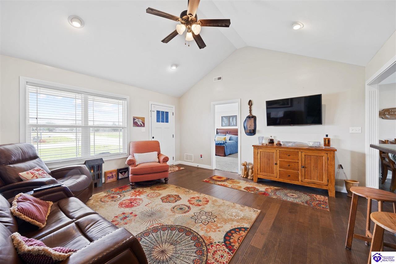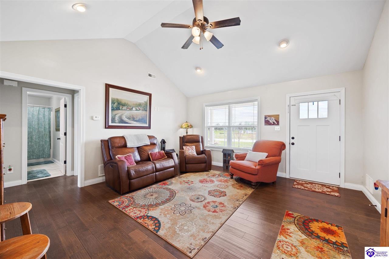 Realtor's notes: Welcome home to this stunning 3-bedroom, 2-bath home just outside of Bardstown, perfectly located near fine dining, boutique shopping, and the Bluegrass Parkway, all while offering a peaceful country feel with minimal maintenance. Inside, the spacious living room features vaulted ceilings and an open floor plan that flows seamlessly into the kitchen, which boasts ample counter space and beautiful cabinetry—ideal for entertaining. The highly desirable split floor plan includes a large primary bedroom with an en-suite bathroom and oversized walk-in closet, while the two additional bedrooms are generously sized. A 2-car attached garage adds even more convenience. Don’t wait—schedule your private showing today, this home won’t last long!