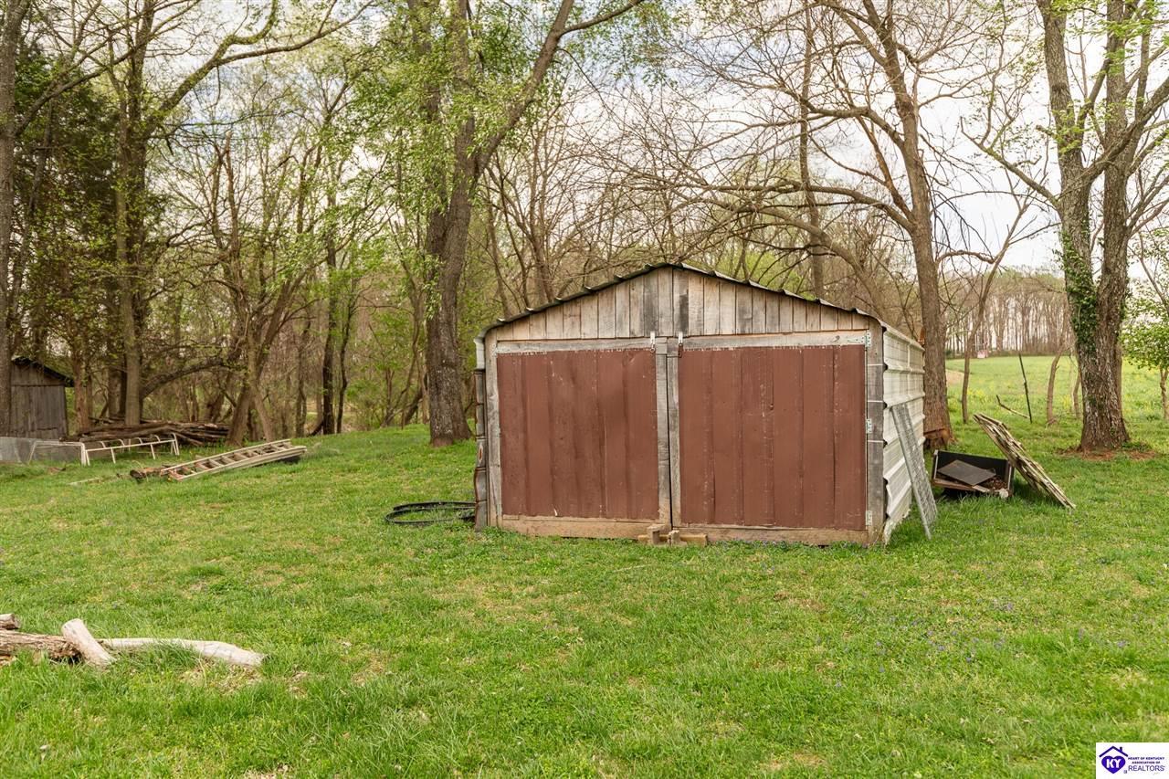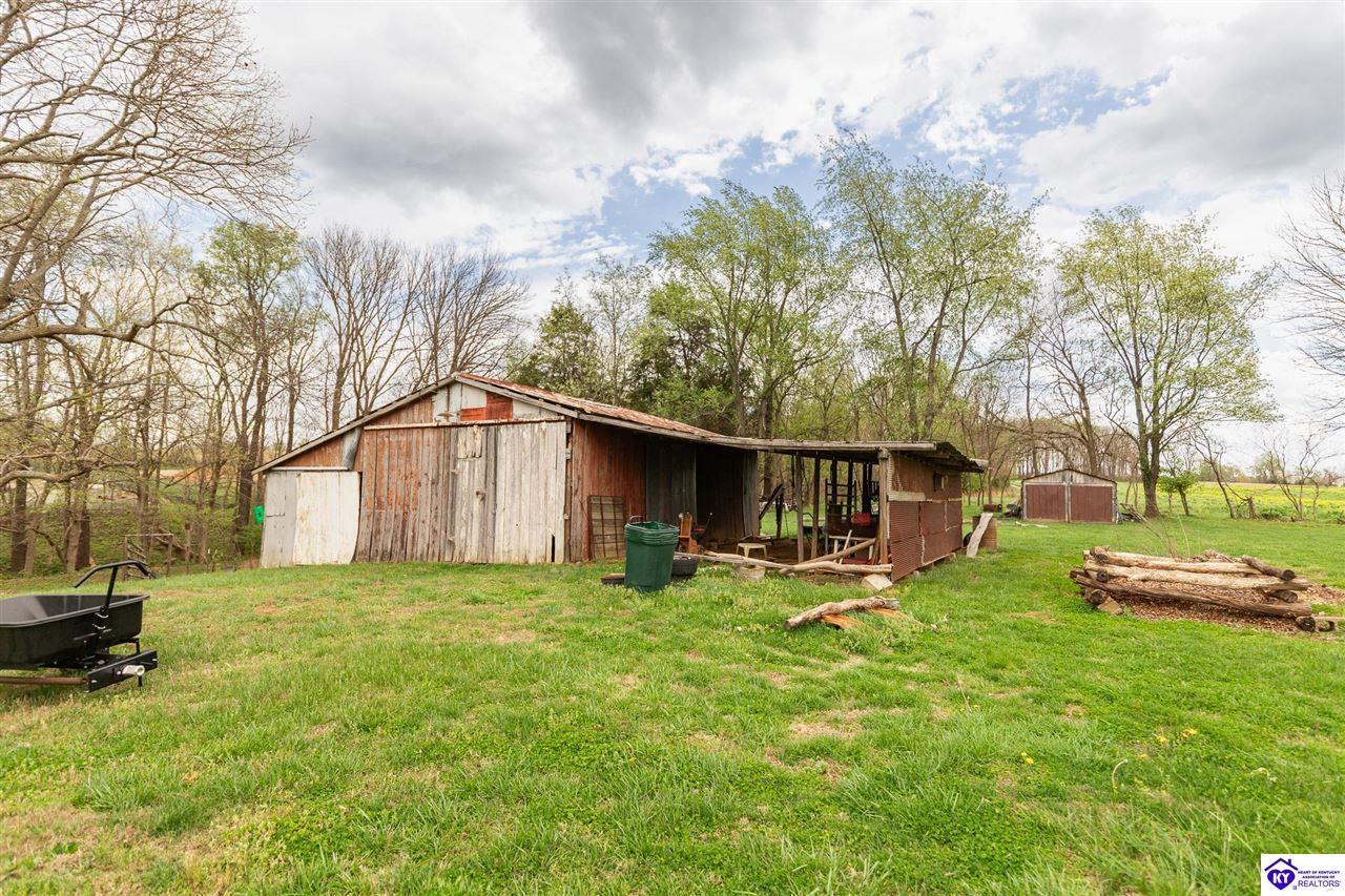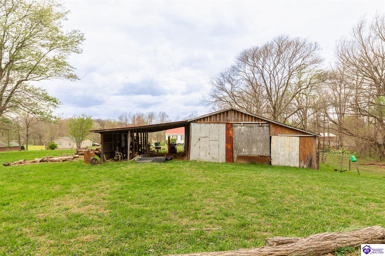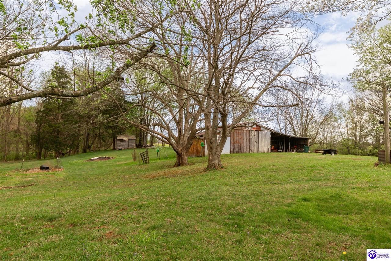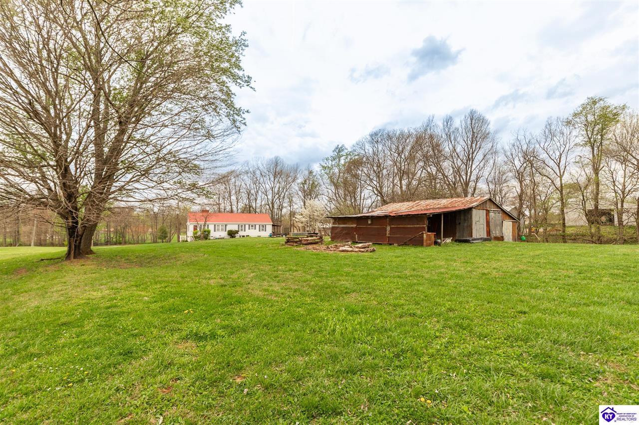 Realtor's notes: Welcome to 128 Ditto Lane! Located in Vine Grove just off of Joe Prather Hwy., this four bedroom, two bathroom home is situated on 2.7 acres and includes a barn with a lean-to and a shed. Inside the home, notice the original hardwood floors. The kitchen/dining combo includes stainless steel appliances and plenty of space for entertaining guests. The living room has a bedford stone propane fireplace perfect for cozying up on winter nights. The primary bedroom is located just off of the living room and has a door that opens to the backyard. The first of the remaining three bedrooms is also located off of the living room. Off of the dining area, there is a hallway that leads to the first floor full bathroom with a tile floor and also tile in the tub/shower combo. The two other bedrooms can be found as well. In the finished portion of the basement, there is LVP flooring. The second full bathroom is located in the laundry room and includes a shower stall. There is one bonus room that is currently being used as a storage area. In the unfinished portion, there is plenty of space for additional storage. The basement walks out to the one car garage which has an abundance of space for storage. Outside, the 2.7 acres provides plenty of space for gardening, having a mini farm, or whatever your heart desires! The barn provides storage space and can be used to house a couple of animals if needed. Don't miss out on this one, schedule your tour today!