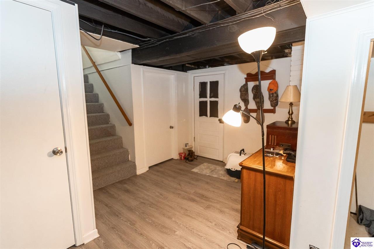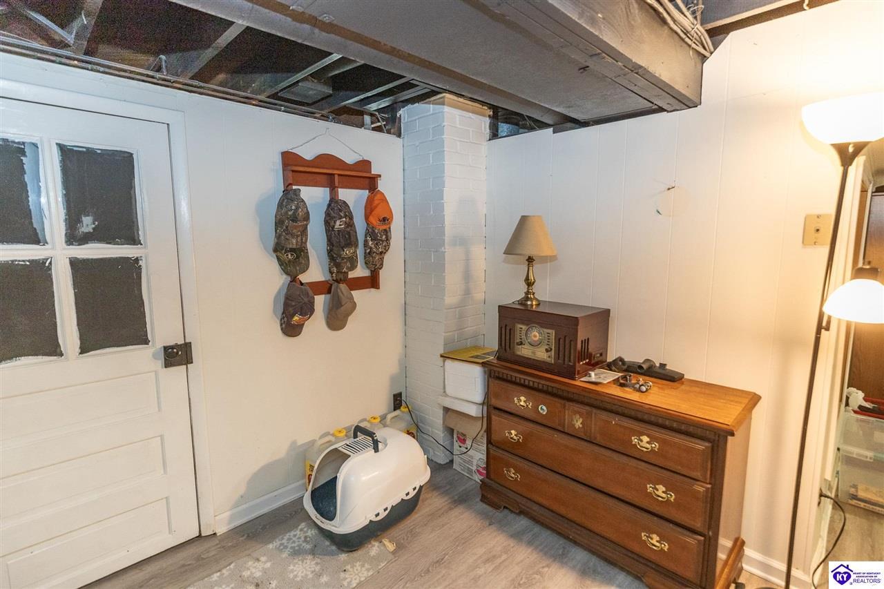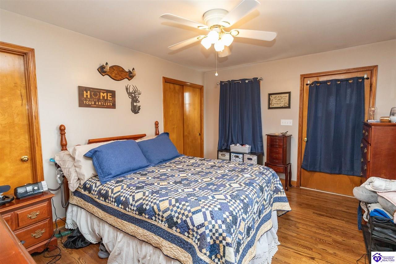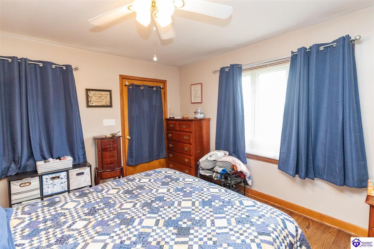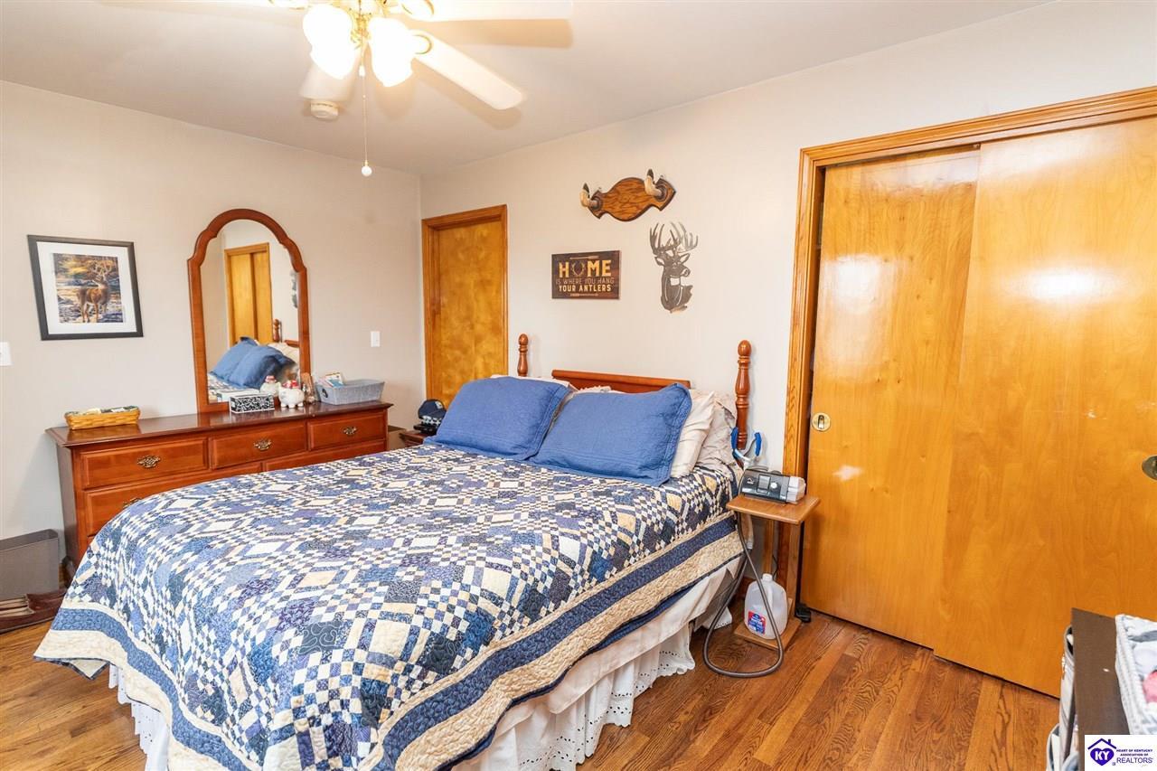 Realtor's notes: Welcome to 128 Ditto Lane! Located in Vine Grove just off of Joe Prather Hwy., this four bedroom, two bathroom home is situated on 2.7 acres and includes a barn with a lean-to and a shed. Inside the home, notice the original hardwood floors. The kitchen/dining combo includes stainless steel appliances and plenty of space for entertaining guests. The living room has a bedford stone propane fireplace perfect for cozying up on winter nights. The primary bedroom is located just off of the living room and has a door that opens to the backyard. The first of the remaining three bedrooms is also located off of the living room. Off of the dining area, there is a hallway that leads to the first floor full bathroom with a tile floor and also tile in the tub/shower combo. The two other bedrooms can be found as well. In the finished portion of the basement, there is LVP flooring. The second full bathroom is located in the laundry room and includes a shower stall. There is one bonus room that is currently being used as a storage area. In the unfinished portion, there is plenty of space for additional storage. The basement walks out to the one car garage which has an abundance of space for storage. Outside, the 2.7 acres provides plenty of space for gardening, having a mini farm, or whatever your heart desires! The barn provides storage space and can be used to house a couple of animals if needed. Don't miss out on this one, schedule your tour today!