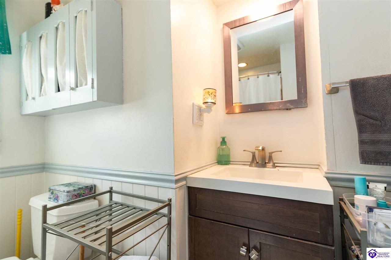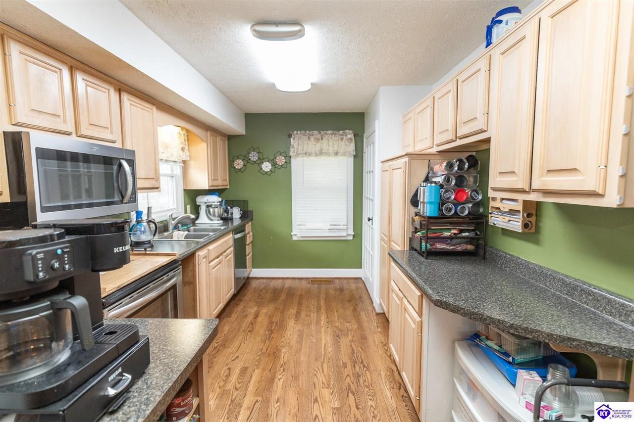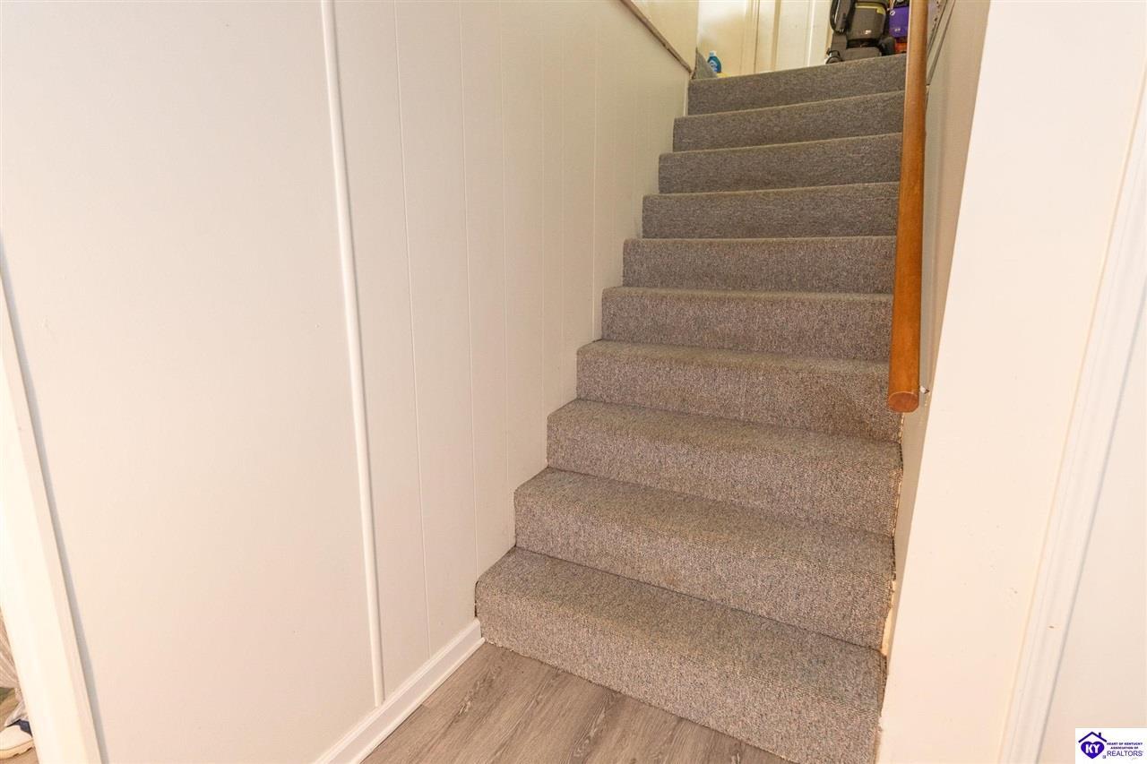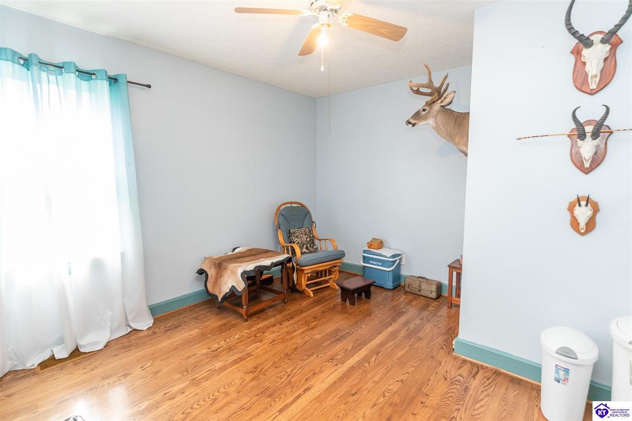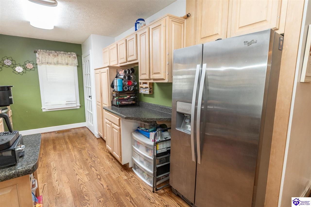 Realtor's notes: Welcome to 128 Ditto Lane! Located in Vine Grove just off of Joe Prather Hwy., this four bedroom, two bathroom home is situated on 2.7 acres and includes a barn with a lean-to and a shed. Inside the home, notice the original hardwood floors. The kitchen/dining combo includes stainless steel appliances and plenty of space for entertaining guests. The living room has a bedford stone propane fireplace perfect for cozying up on winter nights. The primary bedroom is located just off of the living room and has a door that opens to the backyard. The first of the remaining three bedrooms is also located off of the living room. Off of the dining area, there is a hallway that leads to the first floor full bathroom with a tile floor and also tile in the tub/shower combo. The two other bedrooms can be found as well. In the finished portion of the basement, there is LVP flooring. The second full bathroom is located in the laundry room and includes a shower stall. There is one bonus room that is currently being used as a storage area. In the unfinished portion, there is plenty of space for additional storage. The basement walks out to the one car garage which has an abundance of space for storage. Outside, the 2.7 acres provides plenty of space for gardening, having a mini farm, or whatever your heart desires! The barn provides storage space and can be used to house a couple of animals if needed. Don't miss out on this one, schedule your tour today!