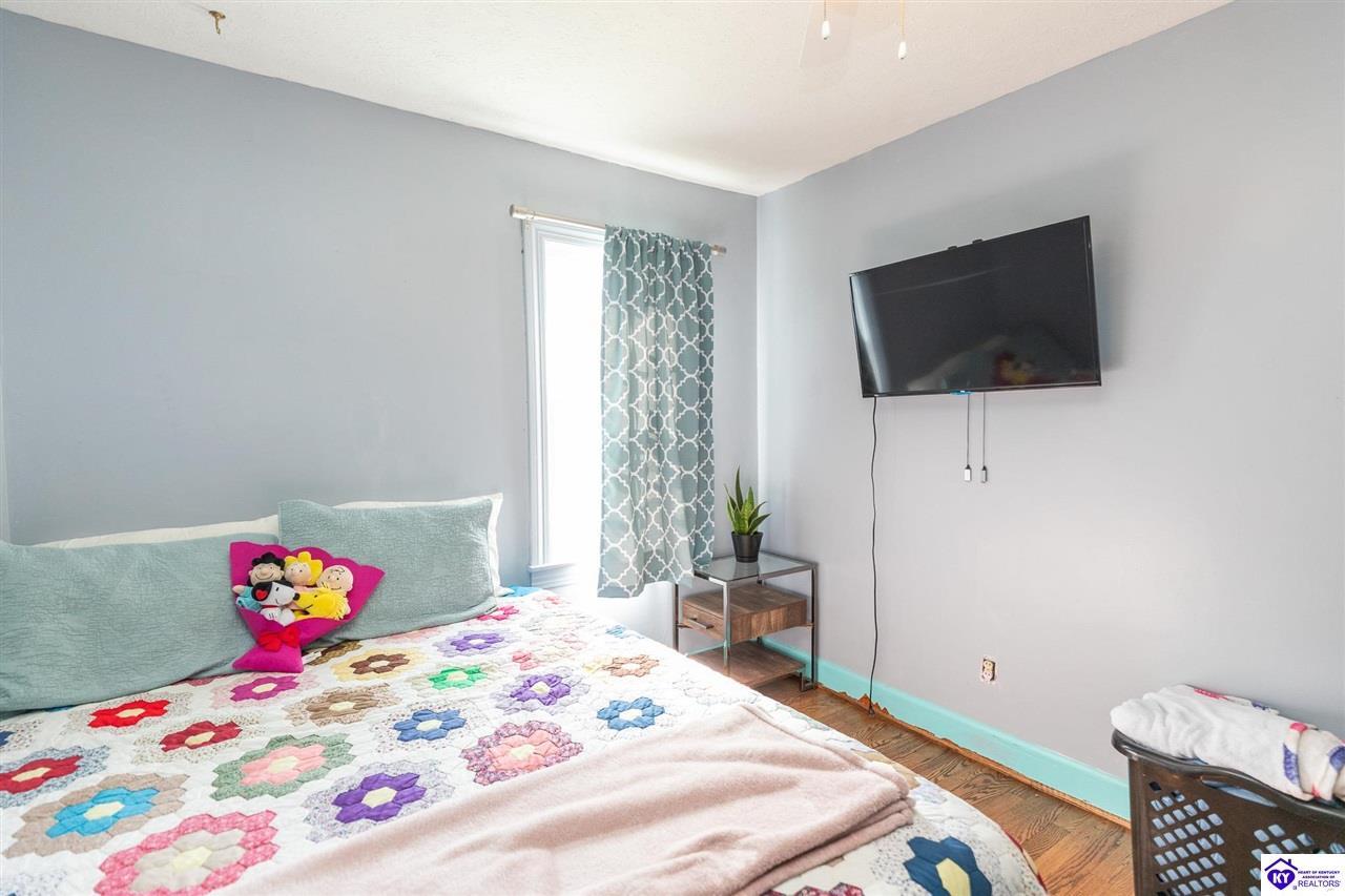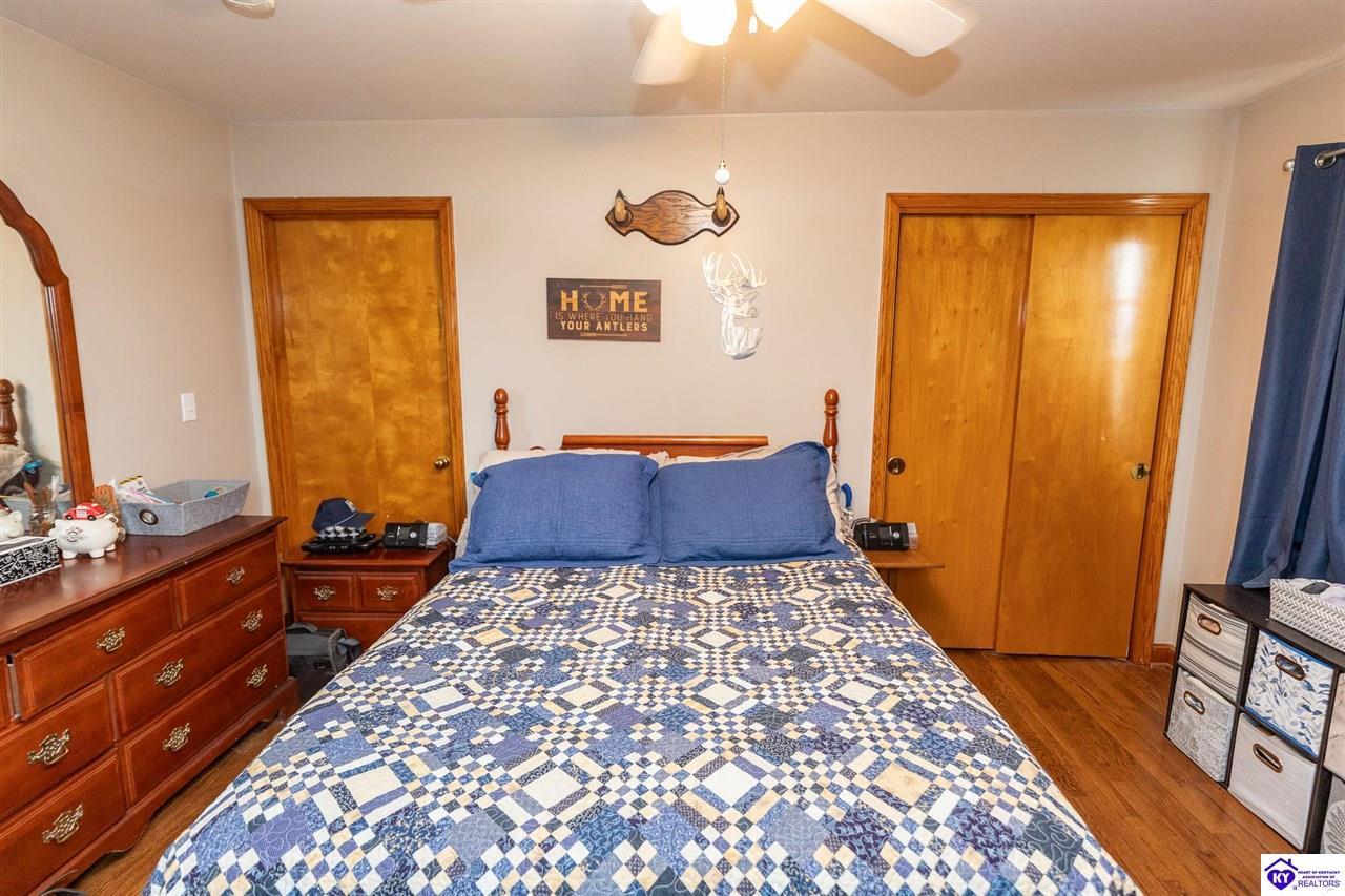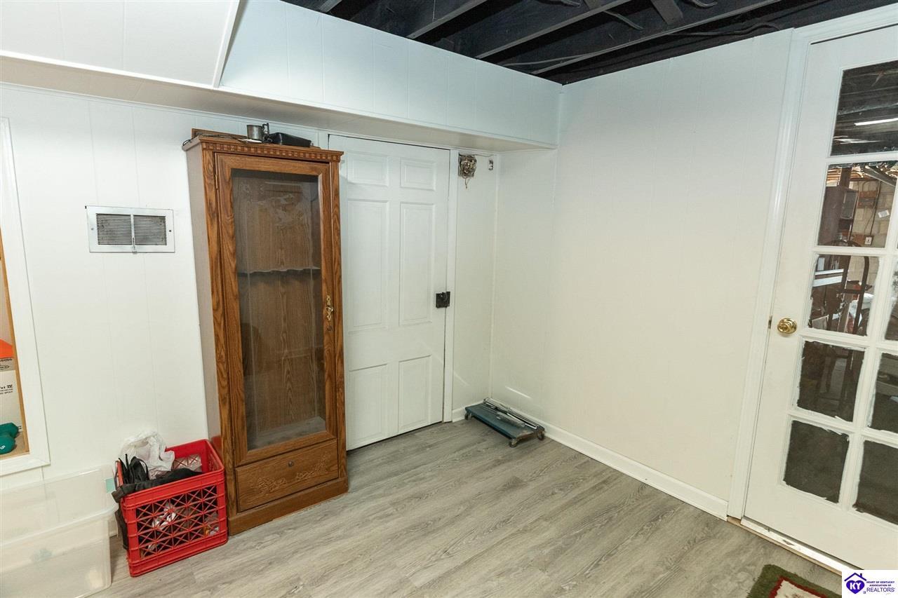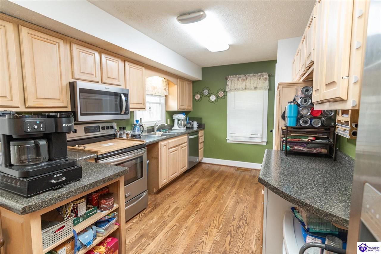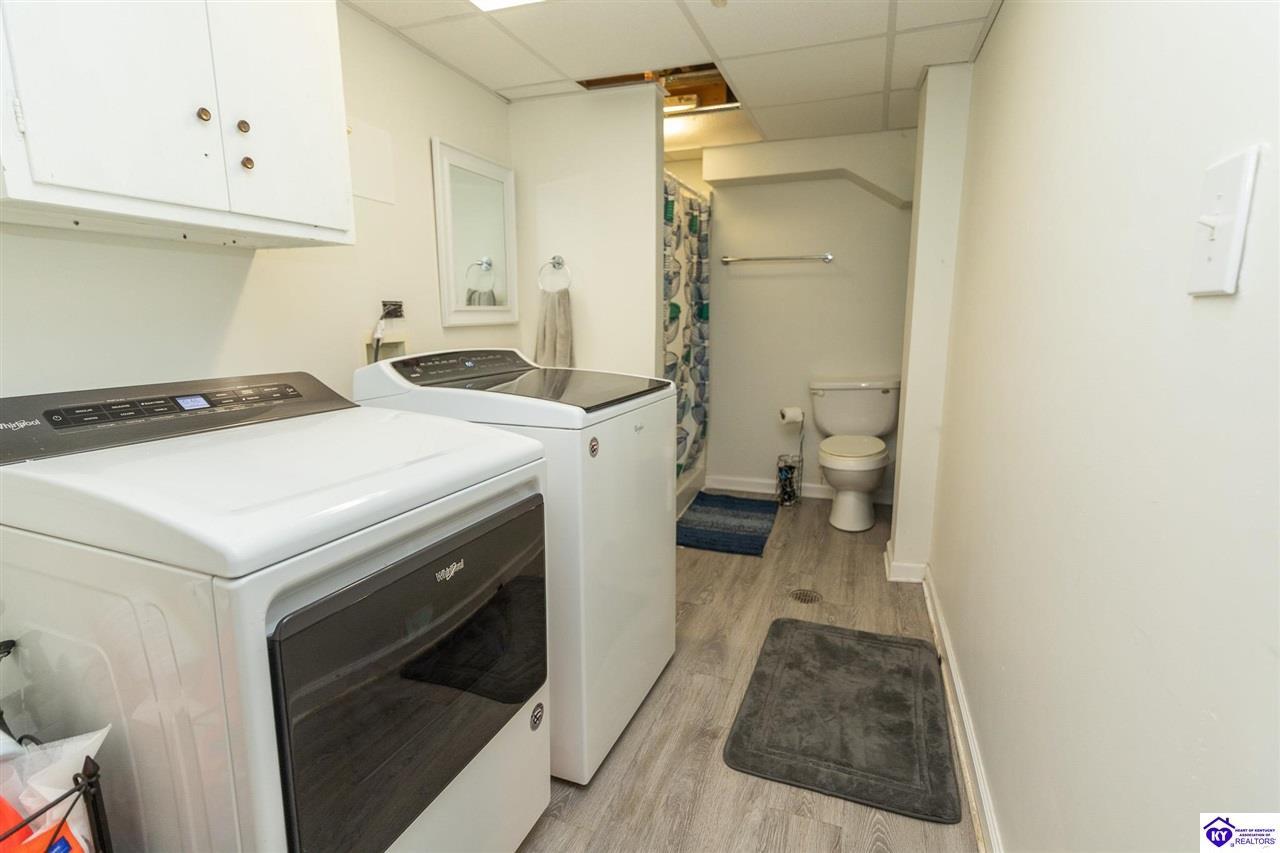 Realtor's notes: Welcome to 128 Ditto Lane! Located in Vine Grove just off of Joe Prather Hwy., this four bedroom, two bathroom home is situated on 2.7 acres and includes a barn with a lean-to and a shed. Inside the home, notice the original hardwood floors. The kitchen/dining combo includes stainless steel appliances and plenty of space for entertaining guests. The living room has a bedford stone propane fireplace perfect for cozying up on winter nights. The primary bedroom is located just off of the living room and has a door that opens to the backyard. The first of the remaining three bedrooms is also located off of the living room. Off of the dining area, there is a hallway that leads to the first floor full bathroom with a tile floor and also tile in the tub/shower combo. The two other bedrooms can be found as well. In the finished portion of the basement, there is LVP flooring. The second full bathroom is located in the laundry room and includes a shower stall. There is one bonus room that is currently being used as a storage area. In the unfinished portion, there is plenty of space for additional storage. The basement walks out to the one car garage which has an abundance of space for storage. Outside, the 2.7 acres provides plenty of space for gardening, having a mini farm, or whatever your heart desires! The barn provides storage space and can be used to house a couple of animals if needed. Don't miss out on this one, schedule your tour today!