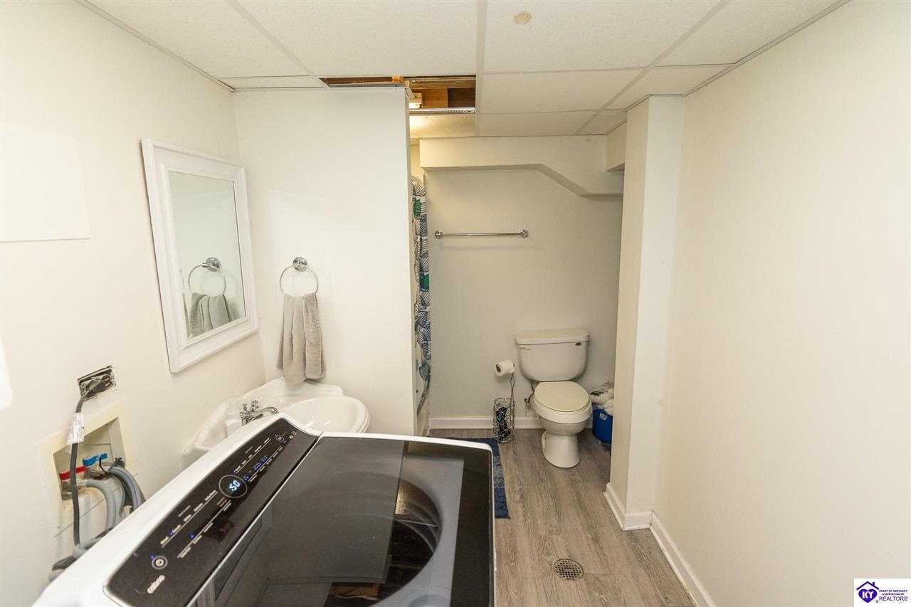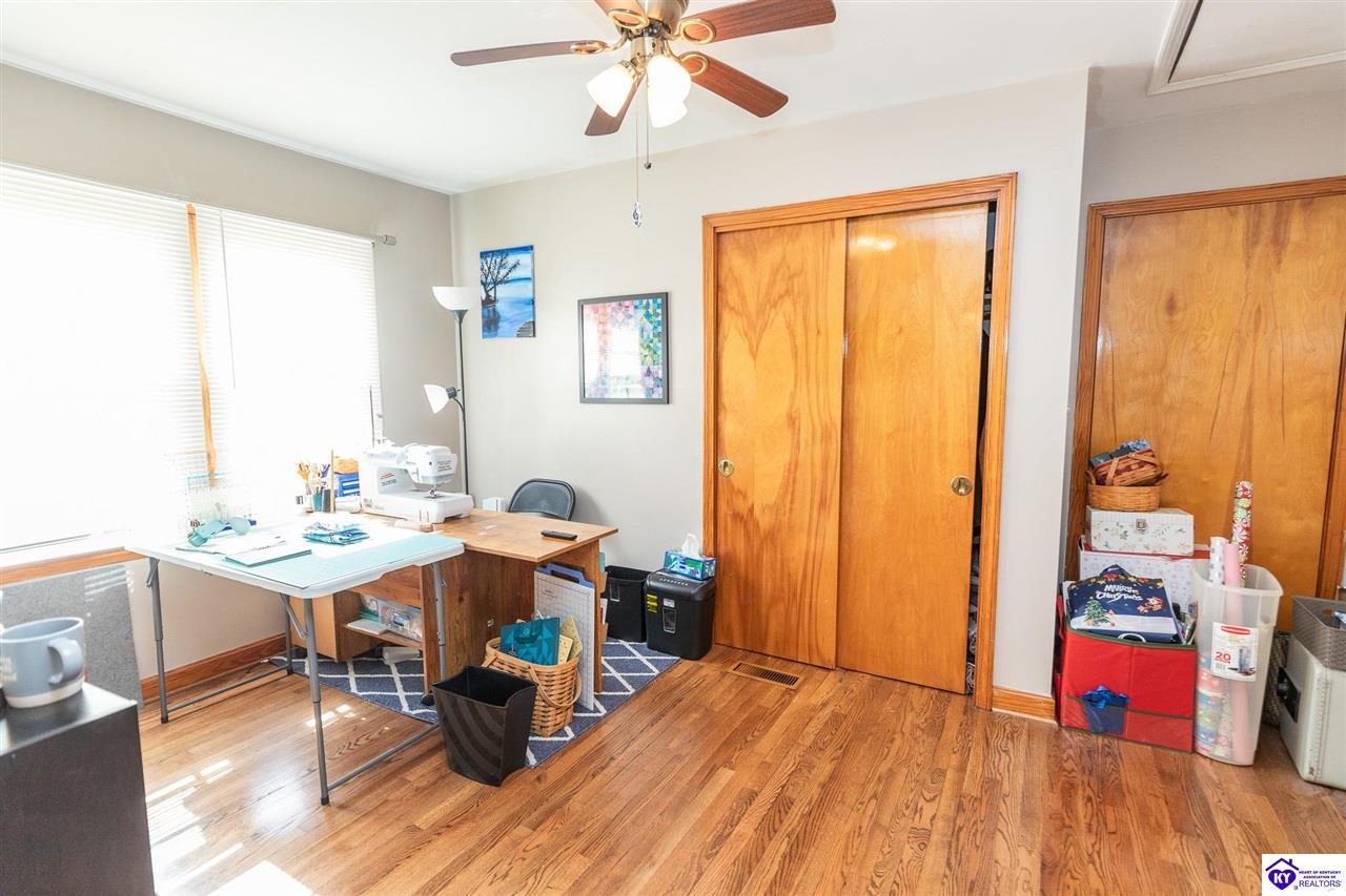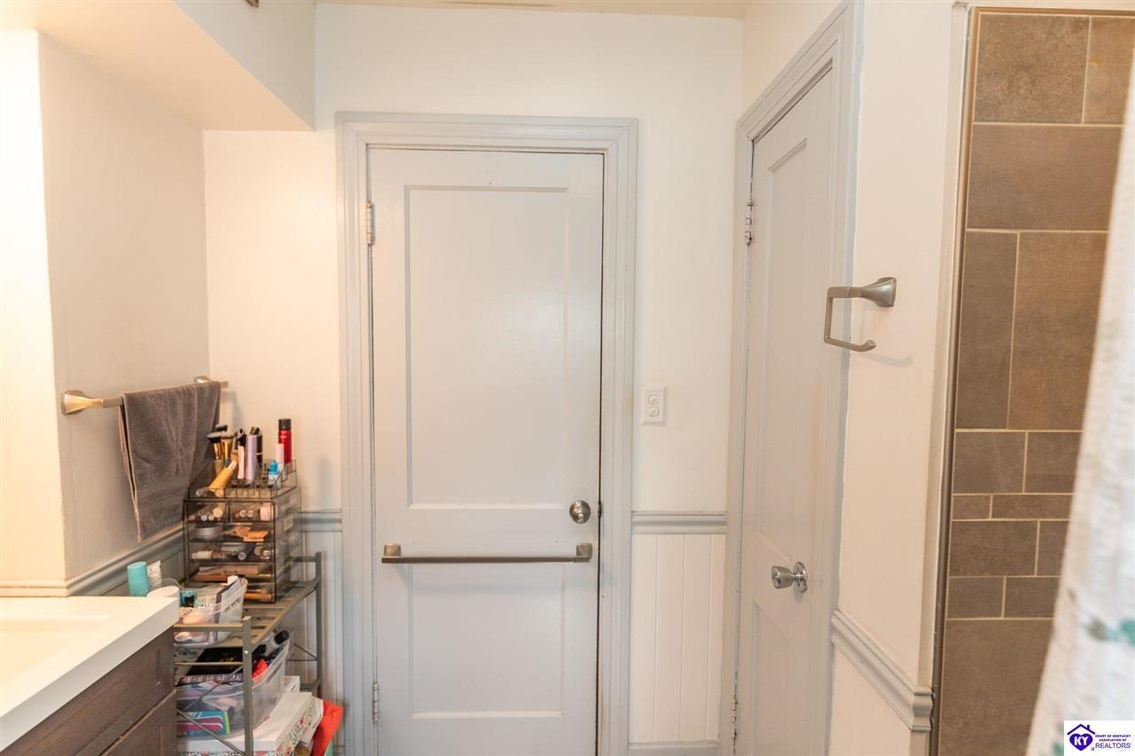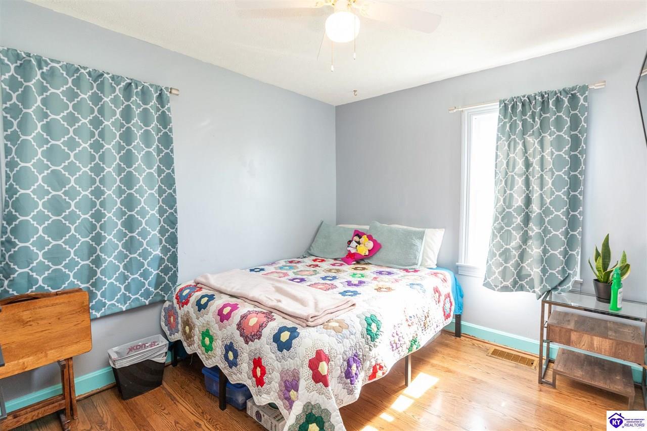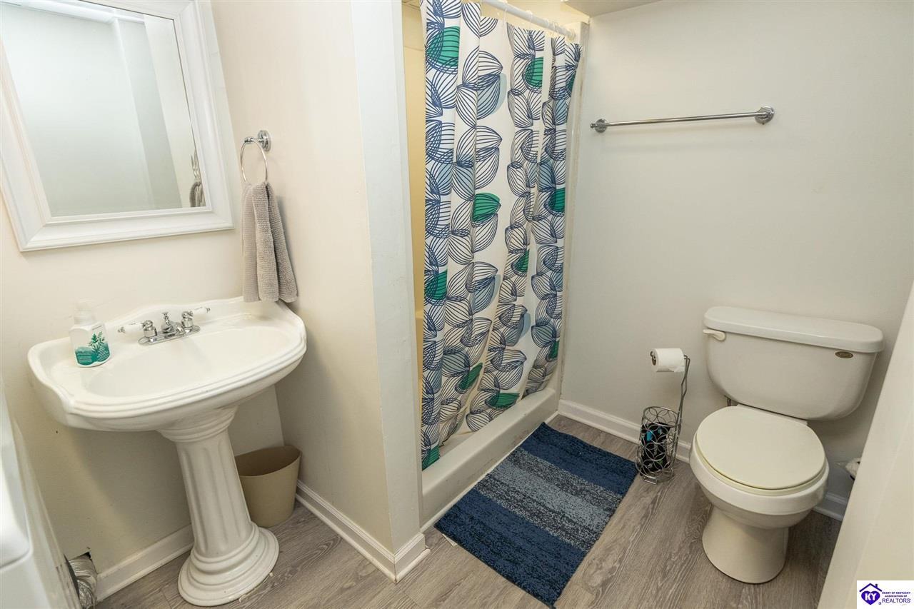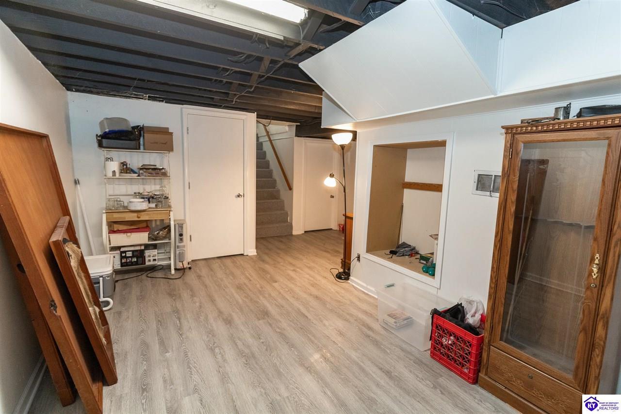 Realtor's notes: Welcome to 128 Ditto Lane! Located in Vine Grove just off of Joe Prather Hwy., this four bedroom, two bathroom home is situated on 2.7 acres and includes a barn with a lean-to and a shed. Inside the home, notice the original hardwood floors. The kitchen/dining combo includes stainless steel appliances and plenty of space for entertaining guests. The living room has a bedford stone propane fireplace perfect for cozying up on winter nights. The primary bedroom is located just off of the living room and has a door that opens to the backyard. The first of the remaining three bedrooms is also located off of the living room. Off of the dining area, there is a hallway that leads to the first floor full bathroom with a tile floor and also tile in the tub/shower combo. The two other bedrooms can be found as well. In the finished portion of the basement, there is LVP flooring. The second full bathroom is located in the laundry room and includes a shower stall. There is one bonus room that is currently being used as a storage area. In the unfinished portion, there is plenty of space for additional storage. The basement walks out to the one car garage which has an abundance of space for storage. Outside, the 2.7 acres provides plenty of space for gardening, having a mini farm, or whatever your heart desires! The barn provides storage space and can be used to house a couple of animals if needed. Don't miss out on this one, schedule your tour today!