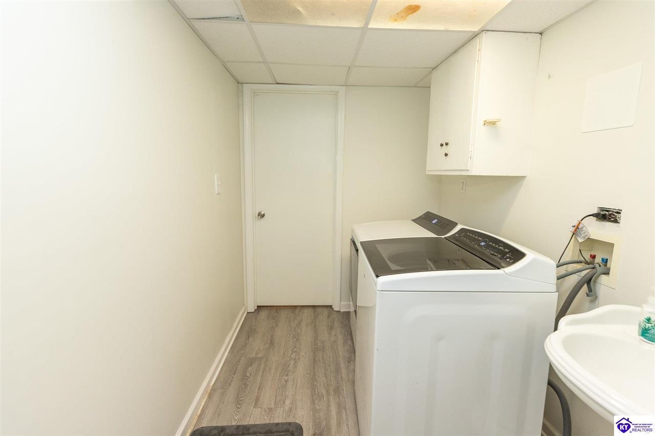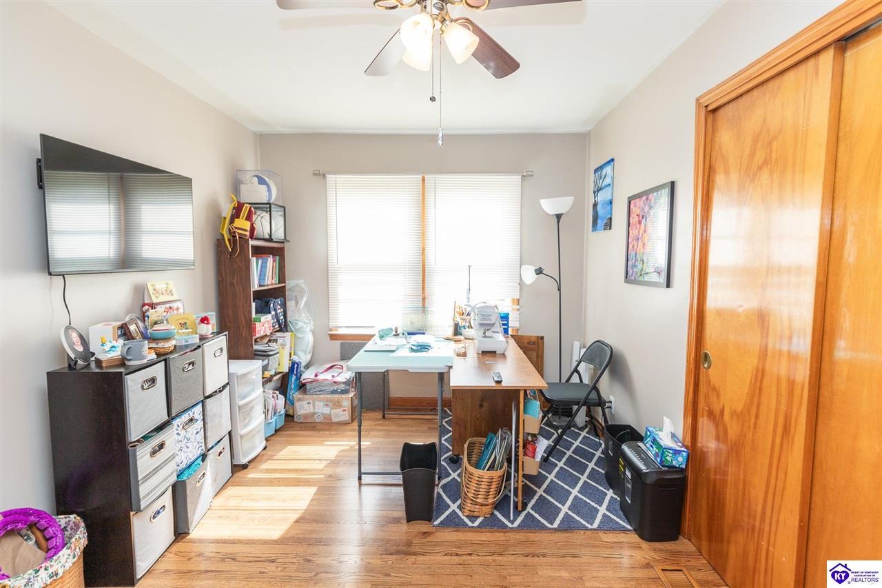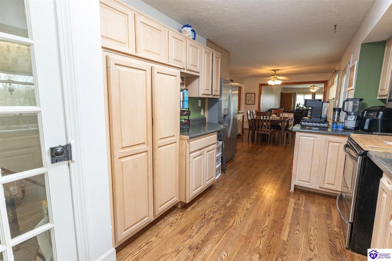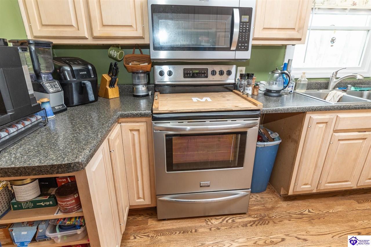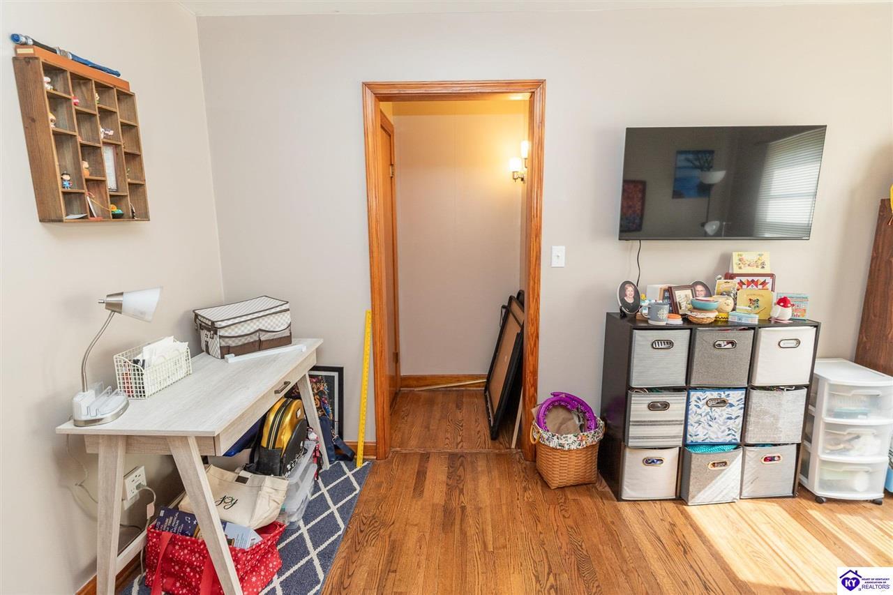 Realtor's notes: Welcome to 128 Ditto Lane! Located in Vine Grove just off of Joe Prather Hwy., this four bedroom, two bathroom home is situated on 2.7 acres and includes a barn with a lean-to and a shed. Inside the home, notice the original hardwood floors. The kitchen/dining combo includes stainless steel appliances and plenty of space for entertaining guests. The living room has a bedford stone propane fireplace perfect for cozying up on winter nights. The primary bedroom is located just off of the living room and has a door that opens to the backyard. The first of the remaining three bedrooms is also located off of the living room. Off of the dining area, there is a hallway that leads to the first floor full bathroom with a tile floor and also tile in the tub/shower combo. The two other bedrooms can be found as well. In the finished portion of the basement, there is LVP flooring. The second full bathroom is located in the laundry room and includes a shower stall. There is one bonus room that is currently being used as a storage area. In the unfinished portion, there is plenty of space for additional storage. The basement walks out to the one car garage which has an abundance of space for storage. Outside, the 2.7 acres provides plenty of space for gardening, having a mini farm, or whatever your heart desires! The barn provides storage space and can be used to house a couple of animals if needed. Don't miss out on this one, schedule your tour today!