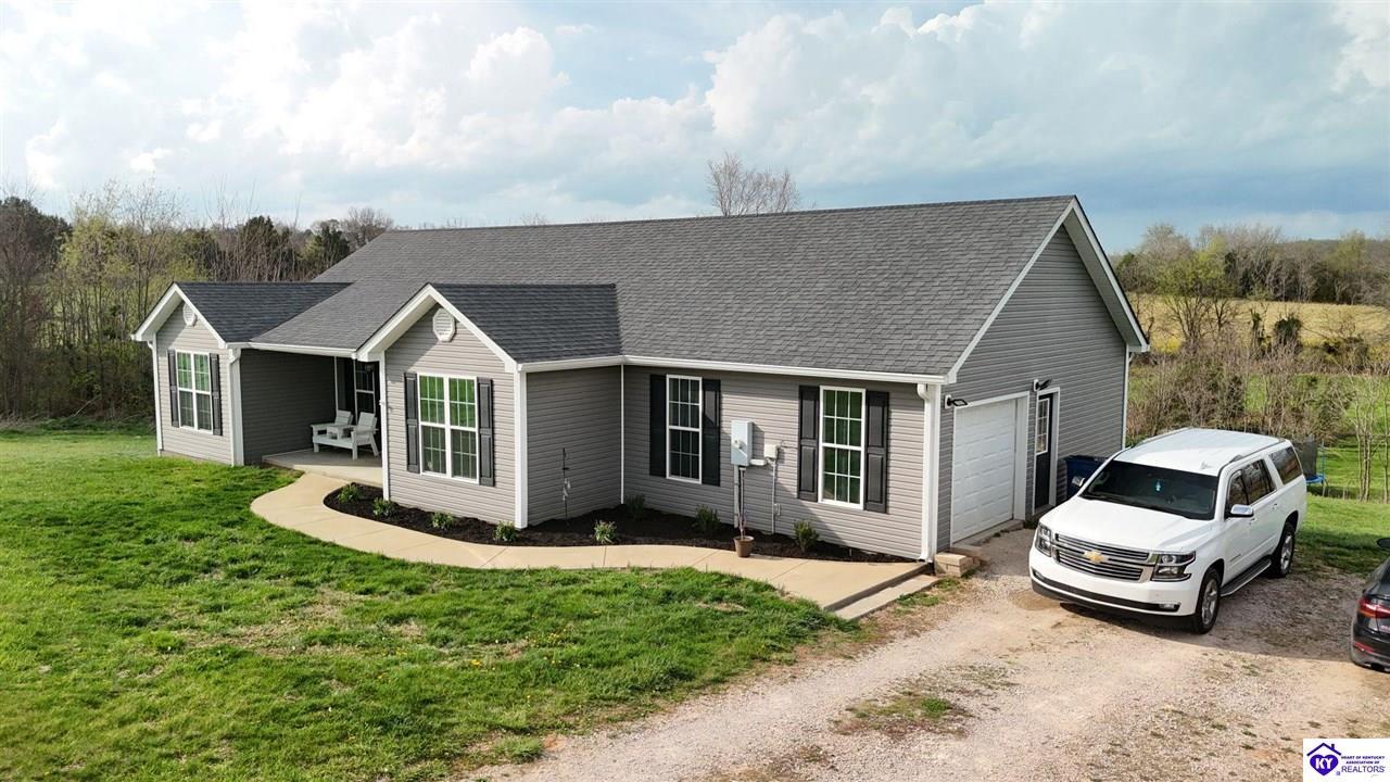 Realtor's notes: Welcome home to peaceful country living in Upton, KY! Built in 2016, this beautiful 3 bedroom, 2 bathroom, plus a flex room ranch home sits on 1.635 acres, offering the perfect blend of space, comfort, and modern design. Inside, youl?l love the split floor plan that provides privacy between the primary suite and additional bedrooms. The vaulted ceilings help create an open, airy feel in the main living area, making it perfect for relaxing and entertaining. The versatile flex room gives you endless options ? a home office, play room, gym, or guest space. This home offers everything for functional & comfortable living and then some!