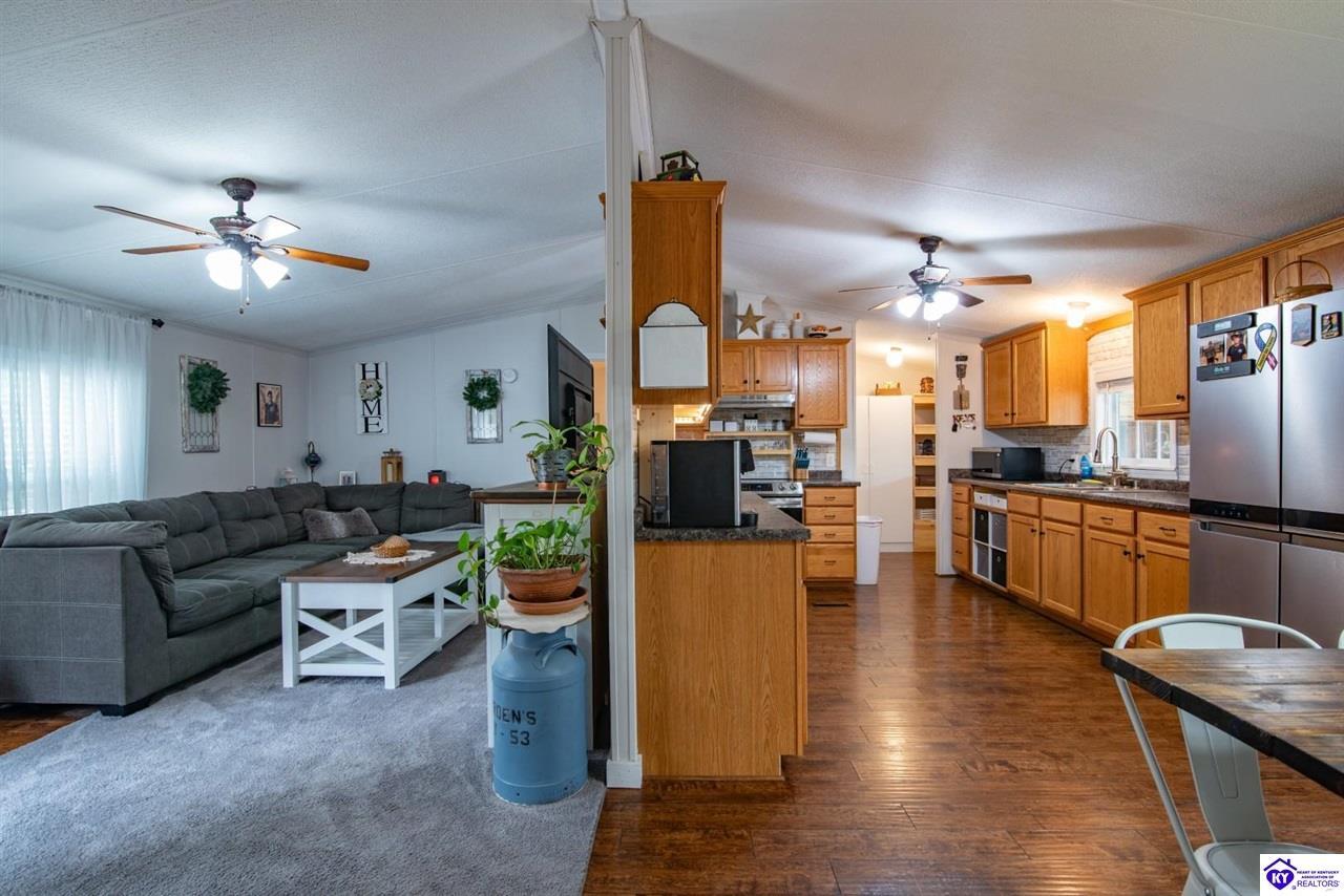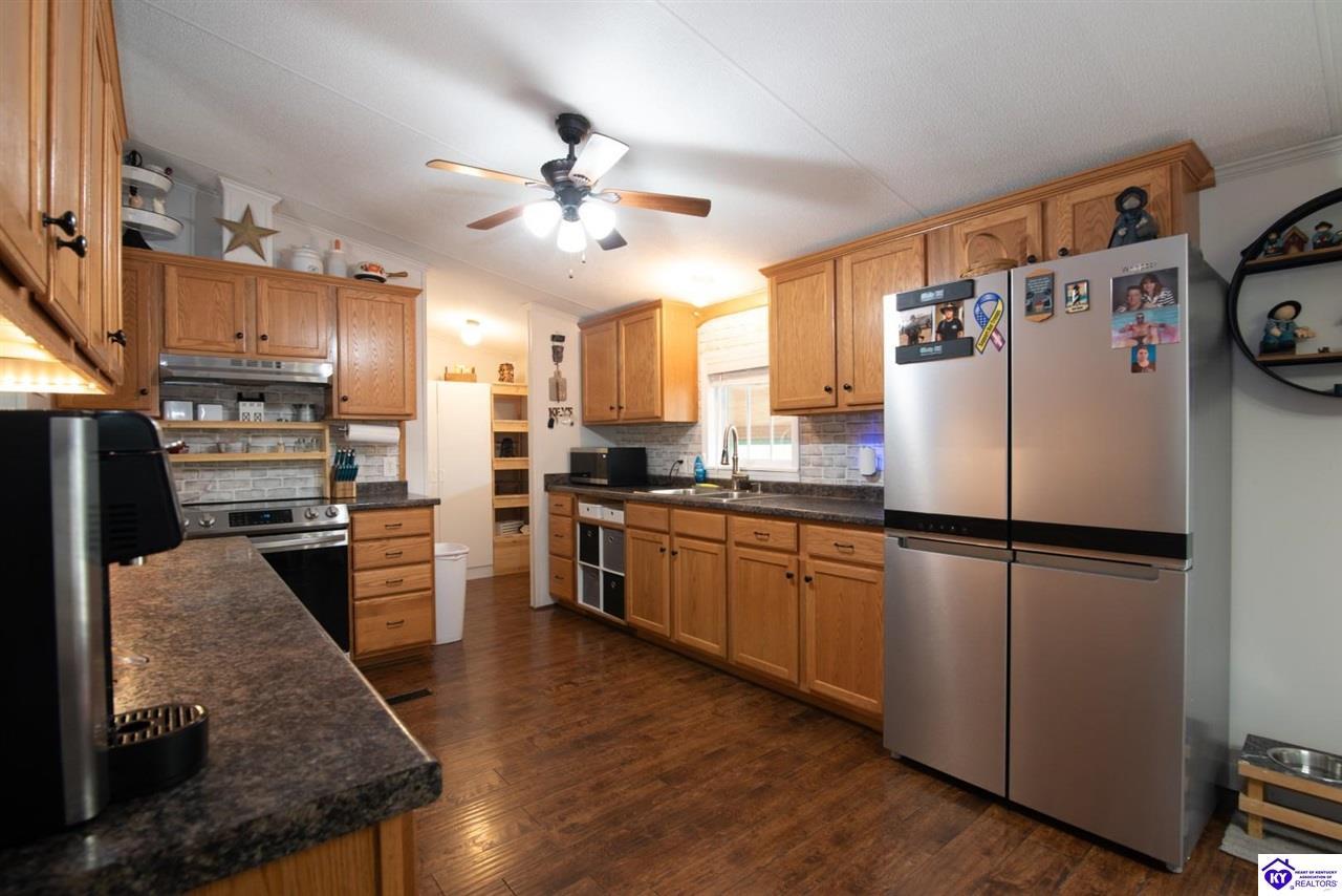 Realtor's notes: This one right here is SPECIAL. Located on 2 gorgeous acres just a hop, skip, and a jump from town, this 1,920 sq ft doublewide is move-in ready and full of charm! With newer windows and doors already done for you, all you gotta do is unpack and make yourself at home. You've got 2 bedrooms, 2 full baths, AND a bonus office or craft room — because we all need our space! The added family room means there's plenty of room for everybody to spread out. Now let's talk about outside, because THAT is where this property really shines. Sit out on your concrete front porch with your morning coffee, or kick back under the covered back patio when the evenings cool down. The privacy-fenced yard is perfect for the kids, the dogs, or just your own peace and quiet. You've got a detached garage, a storage shed, AND three gravel driveways — bring all the trucks, trailers, and toys, there's room! And that garden spot? The blackberries and blueberries are already growing — somebody loved this land and it shows. Mature shade trees keep things cool and pretty all summer long. Private and peaceful, but you're still close enough to town for everything you need. Properties like this don't last long in Grayson County — come see it before it's gone!