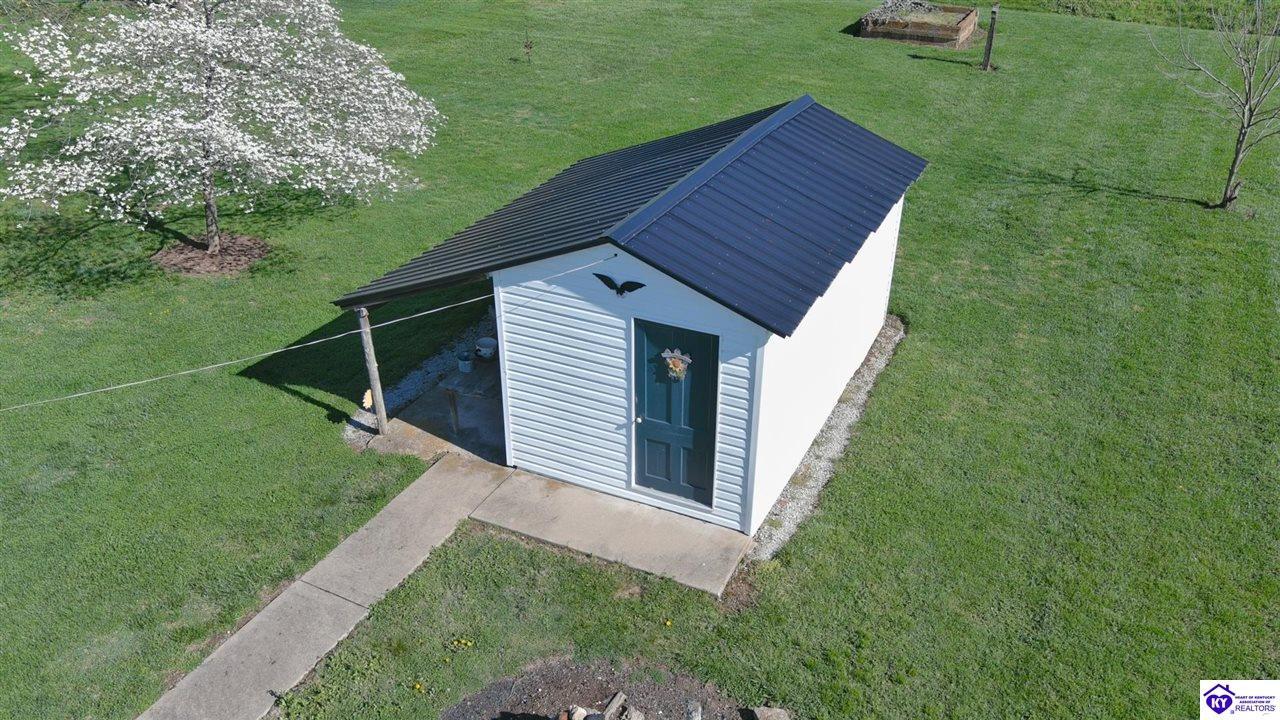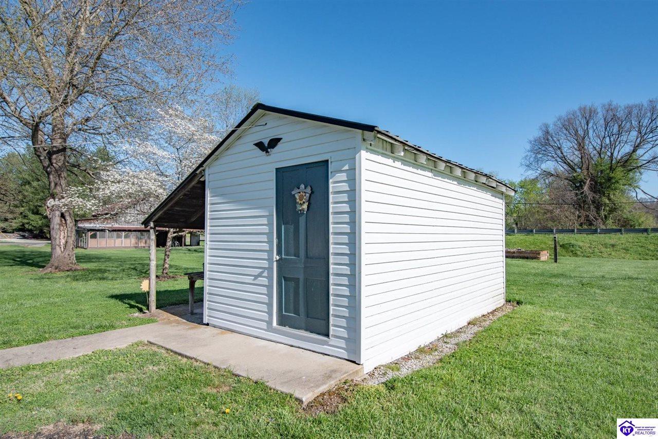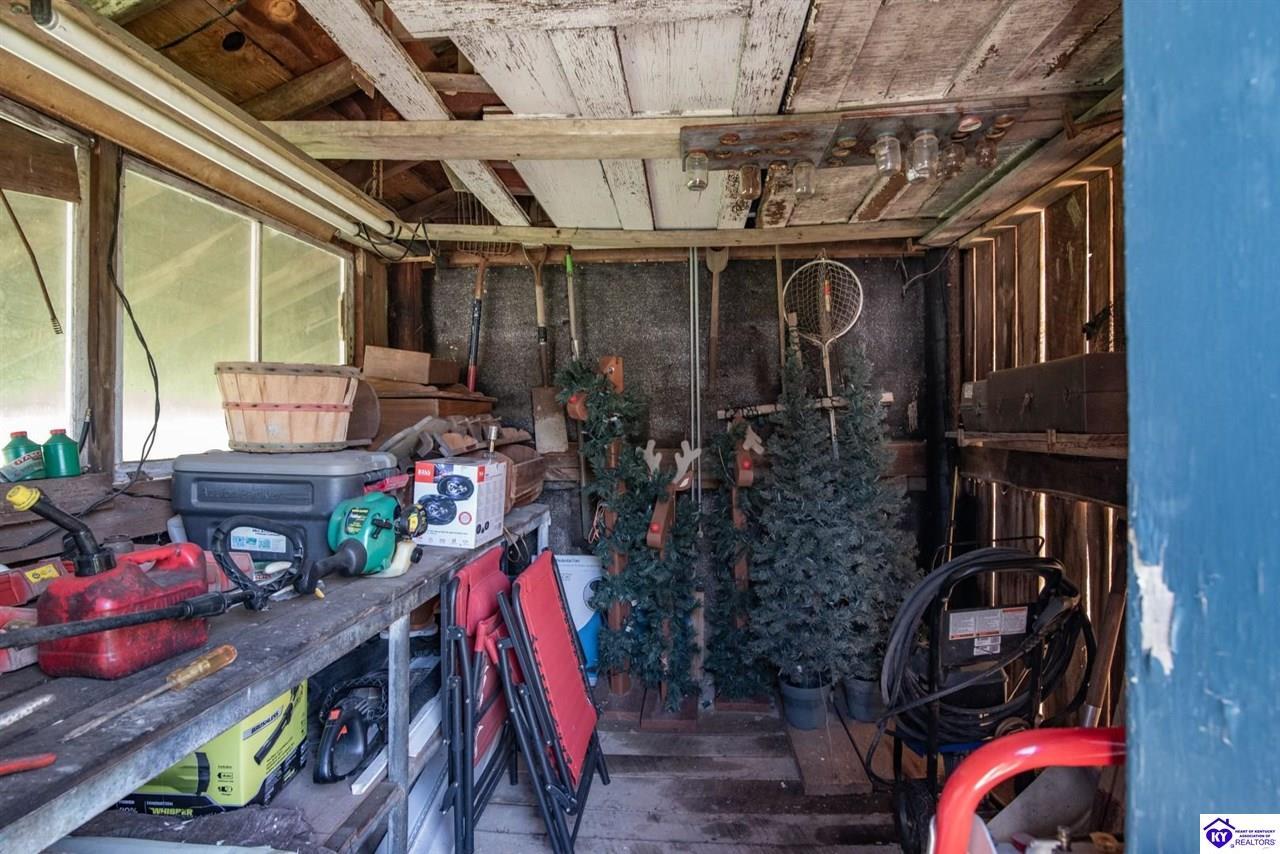Exterior Barn, Covered Front Porch, Workshop, Concrete Walks, Deck, Landscaping, Mature Trees, Storage Building, Storage Shed, Trees
