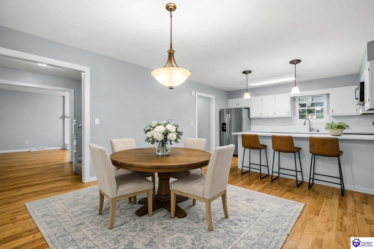 Realtor's notes: Step inside this beautiful two-story home conveniently located in the heart of Elizabethtown and just a short drive to Fort Knox and surrounding communities. Freshly painted and truly move-in ready, this cozy home features tons of natural light, 3 bedrooms, 2.5 bathrooms, hardwood flooring on the main level, a formal living room and dining room, and a comfortable family room for everyday living. The kitchen is a standout with quartz countertops, new appliances, and a tile backsplash, offering both style and modern functionality. The sellers have also invested in all new windows and a new back door, enhancing efficiency and curb appeal. The newly remodeled basement provides additional living space, including an extra room currently used as a bedroom — perfect for guests, a home office, or a flexible bonus area. The family room features a new electric fireplace, creating a warm and inviting space for relaxing or entertaining. Upstairs, the massive primary bedroom offers an ensuite bathroom with not one but two closets, giving you all the space you need to spread out and stay organized. Outside, you’ll love the flat, fenced-in backyard—ideal for pets, play, gardening, or hosting gatherings of any size. With fresh paint throughout and thoughtful updates inside and out, this home is ready for you to make it your own! Let’s get you in for a tour!
