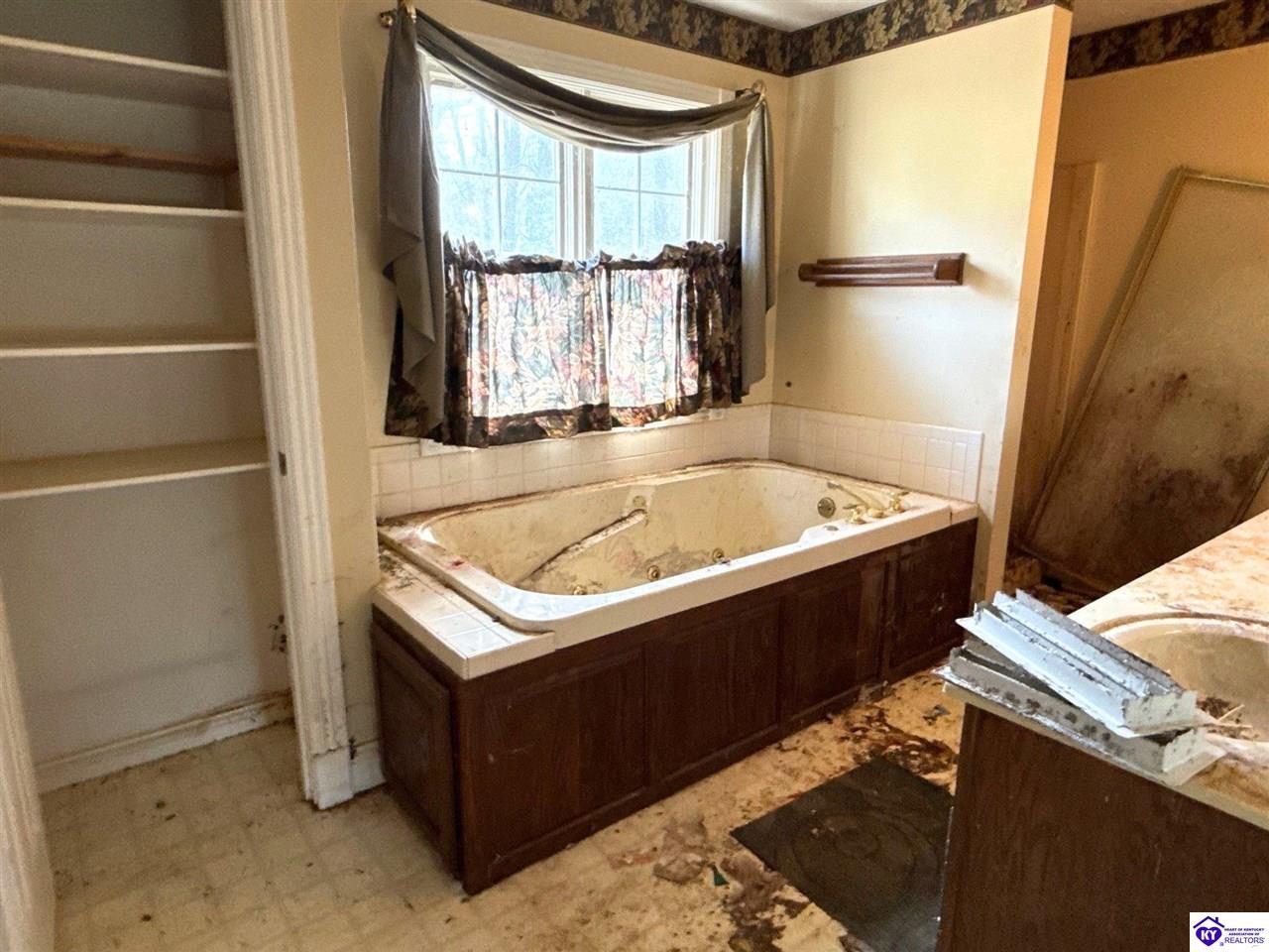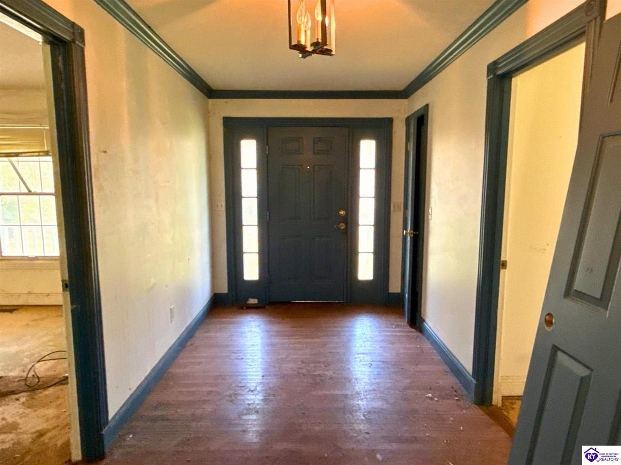 Realtor's notes: Opportunity awaits in one of Elizabethtown's most desirable settings! Situated on nearly 1.5 acres in a beautiful, established neighborhood, this property offers the perfect canvas for investors, renovators, or buyers looking to create their dream home from the ground up. With peaceful surroundings and a flat lot that backs to a wooded area, the setting alone makes this a rare find. The home features a spacious layout highlighted by a fantastic den with a fireplace, an expansive kitchen with an impressive amount of cabinetry, and a full unfinished basement offering endless potential. An attached extra large garage provides abundant storage or workshop space, adding to the home's versatility. Enjoy the charm of an almost wraparound porch, complete with covered front and rear sections and a porch swing overlooking the serene backyard — an ideal spot to take in the quiet, natural surroundings. This property does require significant renovation and is being sold as-is. The home has been cleared of contents. For safety purposes, please review agent notes carefully before scheduling a showing. A unique opportunity to restore and reimagine a home in a truly beautiful location — bring your vision and unlock its full potential.