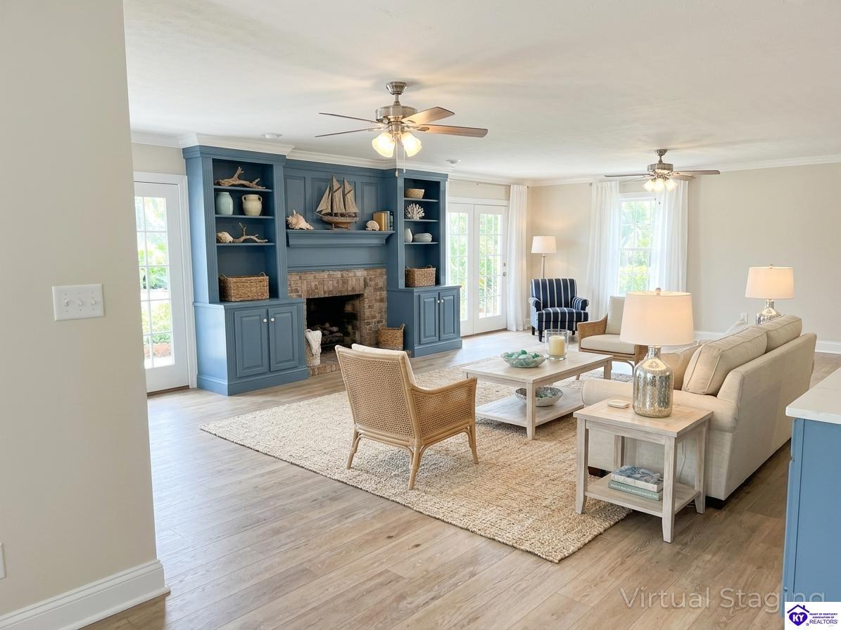 Interior Bookshelves, Ceiling Fan(s), Chandeliers, Split Bedroom Floor Plan, Walk-in Closet(s)