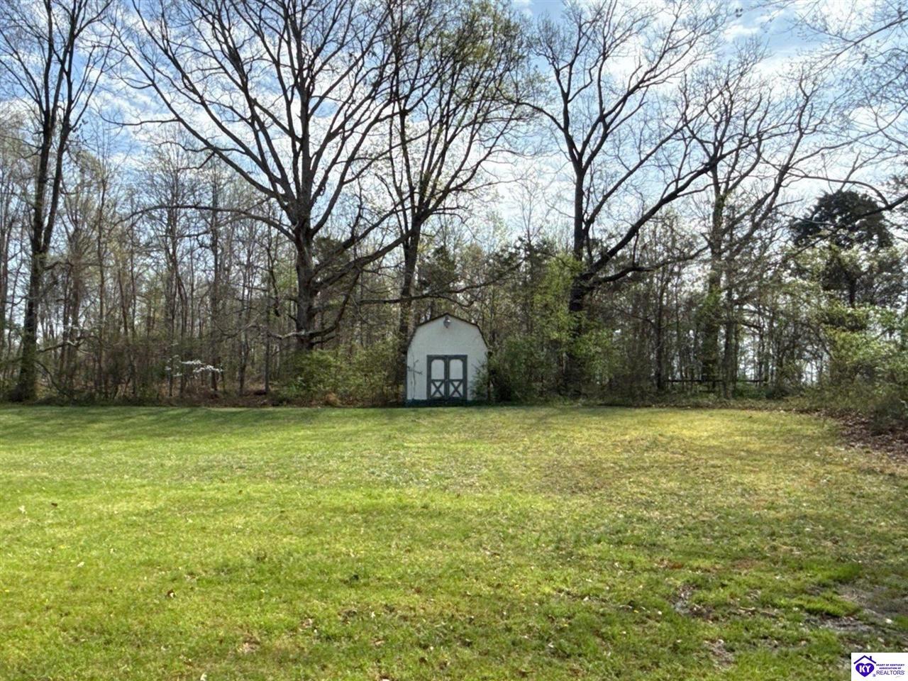 Exterior Covered Front Porch, Concrete Walks, Covered Patio, Mature Trees, Storage Shed