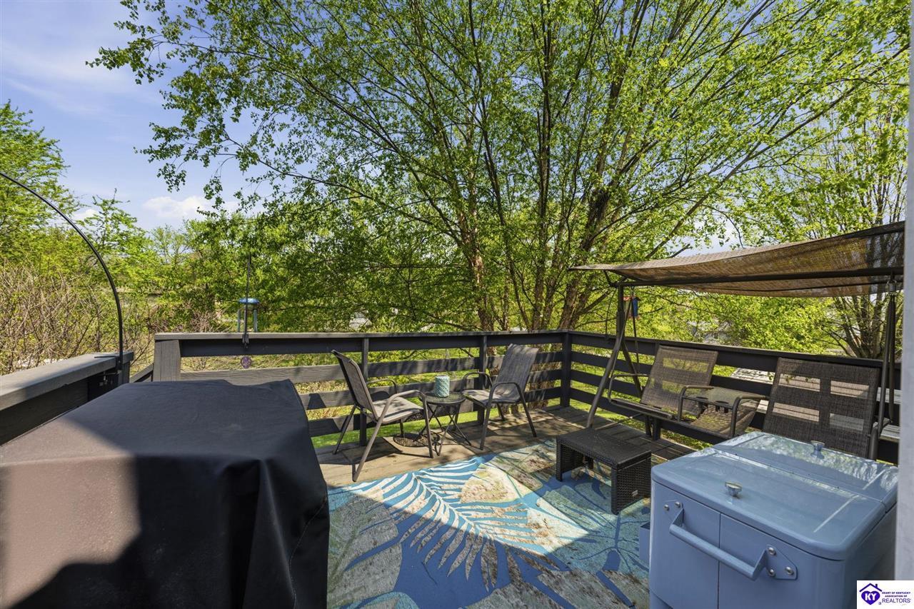 Exterior Concrete Walks, Deck, Mature Trees