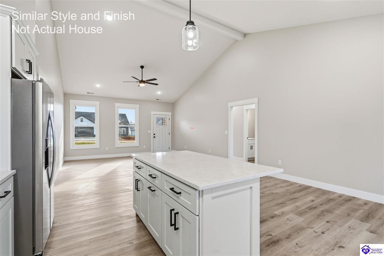 Realtor's notes: **New Construction 2026 • 0.52 Acres • Walkout Basement • 1,912 Sq Ft • Granite + Stainless • Covered Deck • Near Fort Knox & Elizabethtown** Brand new construction located just outside Brandenburg city limits, 244 Quail Run Rd offers a well-designed layout with 1,912 sq ft of finished living space and a full 1,105 sq ft unfinished walkout basement built for future expansion. Positioned on a 0.52-acre lot, this property provides convenient access to Fort Knox, Elizabethtown, and a variety of nearby amenities including grocery stores, dining options, and schools. The main level features a split-bedroom floor plan with a vaulted ceiling in the living area, creating an open and functional central gathering space with natural flow between the living room, dining area, and kitchen. The kitchen is finished with granite countertops, stainless steel appliances, and ample workspace, designed for both everyday use and entertaining. The layout emphasizes efficiency and storage, with multiple closets and well-placed functional spaces throughout. The primary suite includes direct access to the laundry room through the primary closet, creating a practical connection that enhances daily routines. Two additional bedrooms are positioned on the opposite side of the home, providing separation within the floor plan. A spacious mud room located off the attached two-car garage offers additional organization space and includes multiple storage closets to accommodate seasonal items and everyday needs. Outdoor living is supported by both a covered front porch and a covered rear deck, providing usable exterior space in a variety of weather conditions. The walkout basement offers significant flexibility for future finishing, including the potential for additional bedrooms, recreational space, or extended living areas. It is already plumbed for a third full bathroom and includes a concrete-encased storm shelter for added structural protection. Additional features include spray foam insulation for energy efficiency and a concrete driveway. This new construction home combines functional design, expansion potential, and a convenient location with access to major employment centers and daily amenities.