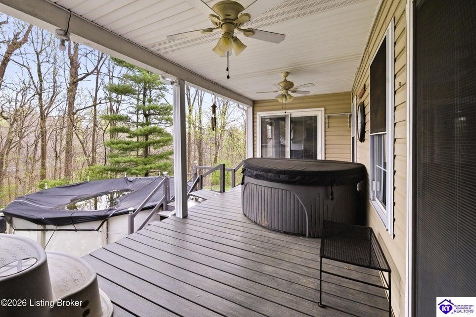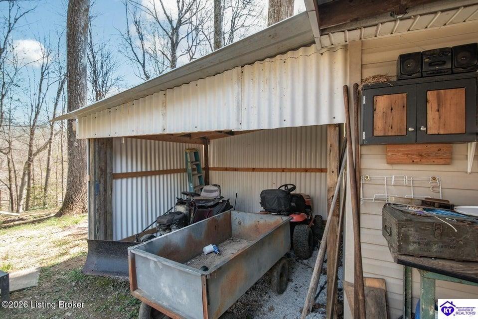 Exterior Covered Front Porch, Out Building, Swimming Pool-Abv Ground, Covered Deck, Deck, Landscaping, Mature Trees, Storage Shed, Trees