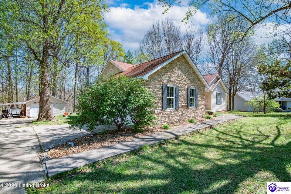 Realtor's notes: Private, relaxing 2.48-acre retreat with mature trees and a beautiful setting. This 3-bedroom, 2-bath ranch offers a spacious layout with a vaulted living room featuring a fireplace and access to the deck. The large eat-in kitchen includes granite countertops, an island with additional seating and storage, a sunny breakfast nook, and walk-in pantry. Additional formal dining room off kitchen. The primary suite features a double vanity, walk-in shower, walk-in closet, and private access to the covered back deck. Additional highlights include two garages—an attached 2 1/2-car and a detached 1 1/2-car with lean-tos on side and rear—plus a storage building. Recent updates include the roof, garage door opener, sliding doors, and some windows.