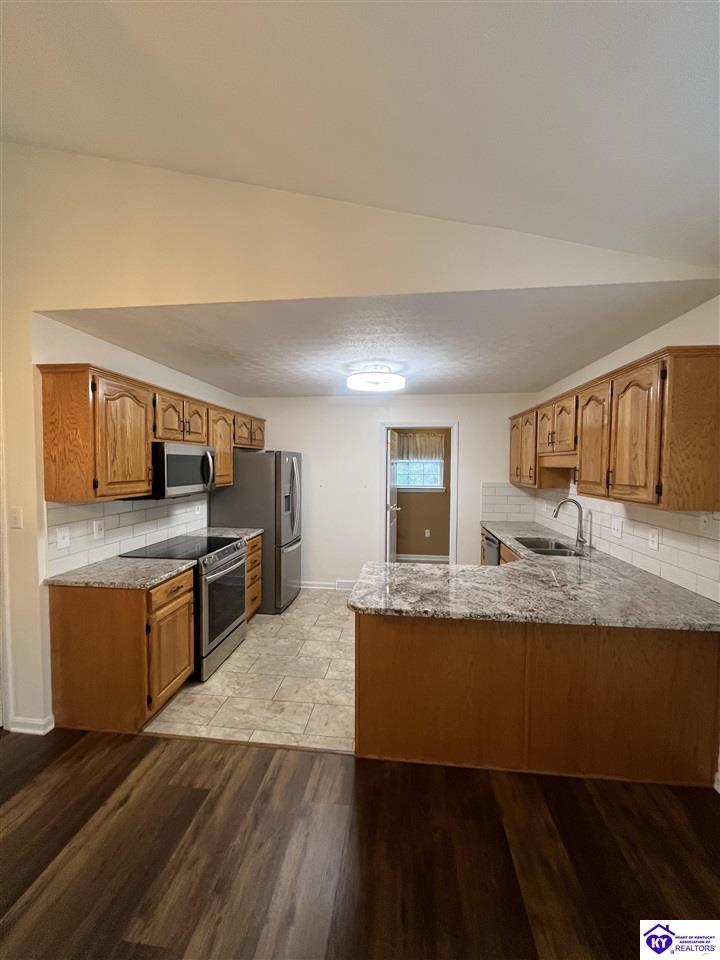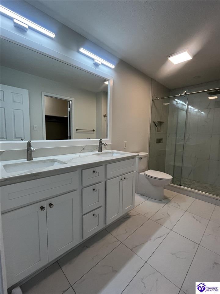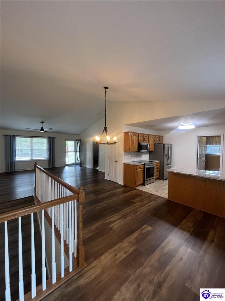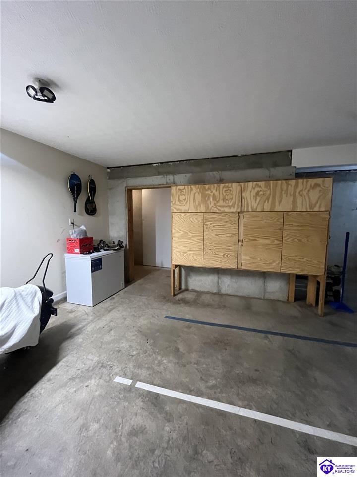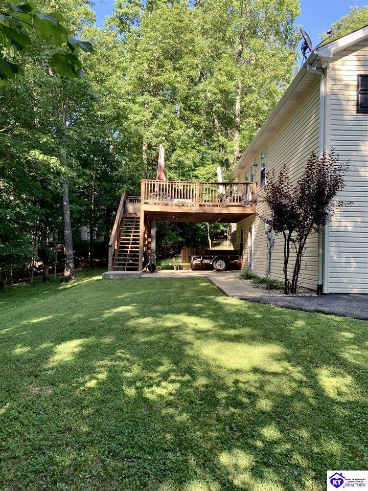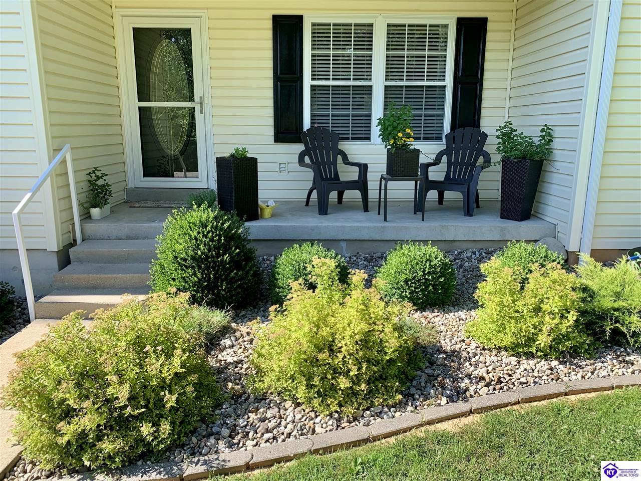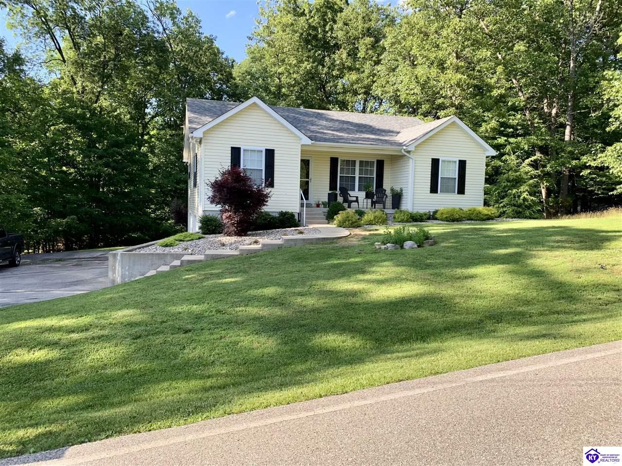 Realtor's notes: Located in a desirable gated community, Doe Valley, this move-in ready home offers the perfect blend of comfort, space, and privacy. The open-concept layout features a spacious living room with vaulted ceilings, creating an airy and inviting atmosphere. The kitchen is beautifully appointed with granite countertops, newer stainless steel appliances, and a convenient pantry for added storage. The large primary suite includes a remodeled en-suite bath with quartz and marble finishes and a separate walk-in shower. A full walkout basement expands your living space with a generous family room, ample storage, and plenty of room to grow. Step outside to enjoy a private, tree-lined lot that provides both tranquility and seclusion. Additional highlights include ceiling fans throughout, a large garage with abundant storage, and a dedicated workshop area—perfect for hobbies or projects. Some amenities include a pool, tennis courts, golf course, club house and a gorgeous lake perfect for your avid boaters along with a swimming and beach area. Just minutes to Fort Knox, this beautiful home is ready for new owners to be able to enjoy all the home and community have to offer!