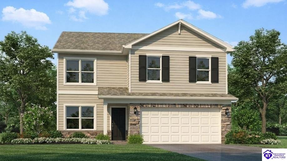 Realtor's notes: Welcome to 705 Tristan Lane in Elizabethtown, Kentucky, a new home in our beautiful Ashton Park community. The Bellamy floor plan is a stunning two-story design offering 4 spacious bedrooms and 2.5 bathrooms—perfect for anyone looking for flexible living space. The open-concept layout creates a seamless flow from the kitchen to the main living areas, making it ideal for both everyday living and entertaining. Luxury vinyl plank flooring flows throughout the foyer, flex room, great room, and kitchen, delivering both style and durability. In addition to its generous living areas, this home features a dedicated flex room—perfect for a home office, library, or playroom. Whether you work remotely or simply need additional functional space, the Bellamy offers versatility to fit your lifestyle. The kitchen is truly the heart of the home, showcasing beautiful white cabinetry with soft-close doors, quartz countertops, stainless-steel appliances, a large pantry, and a built-in island with ample seating—ideal for cooking, gathering, and hosting guests. Upstairs, the oversized primary suite offers a private retreat with an ensuite bathroom featuring a double bowl vanity, a stand-alone shower, private water closet, and a spacious walk-in closet. Three additional bedrooms and a conveniently located laundry room complete the upper level. Contact us today to schedule a private tour. Furnished photos are representative of the plan only and may vary as built. Estimated completion is June/July 2026.