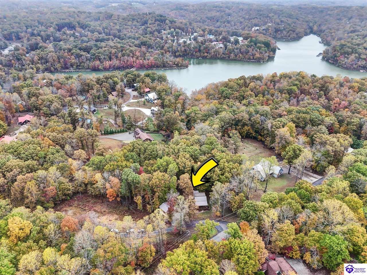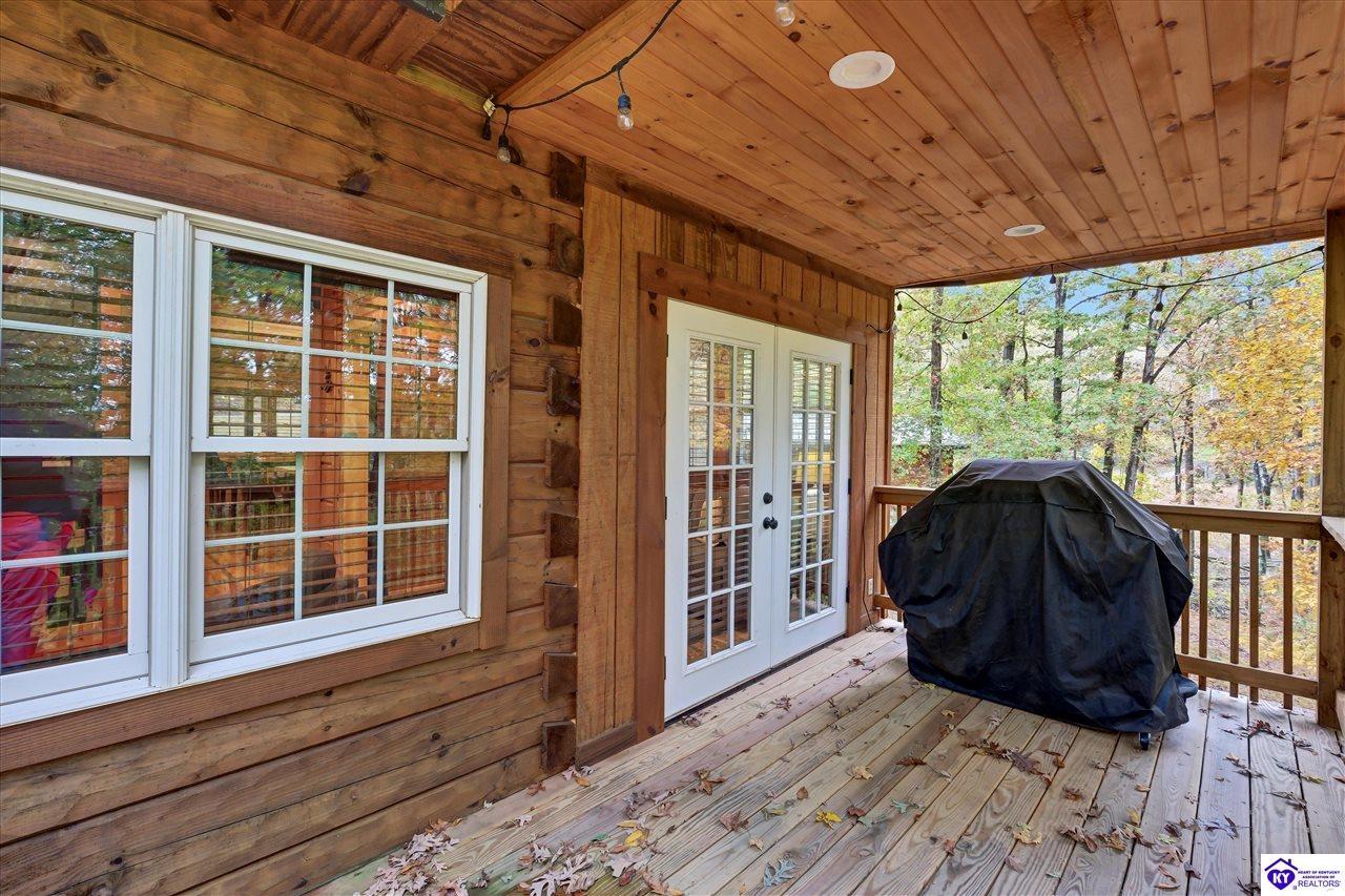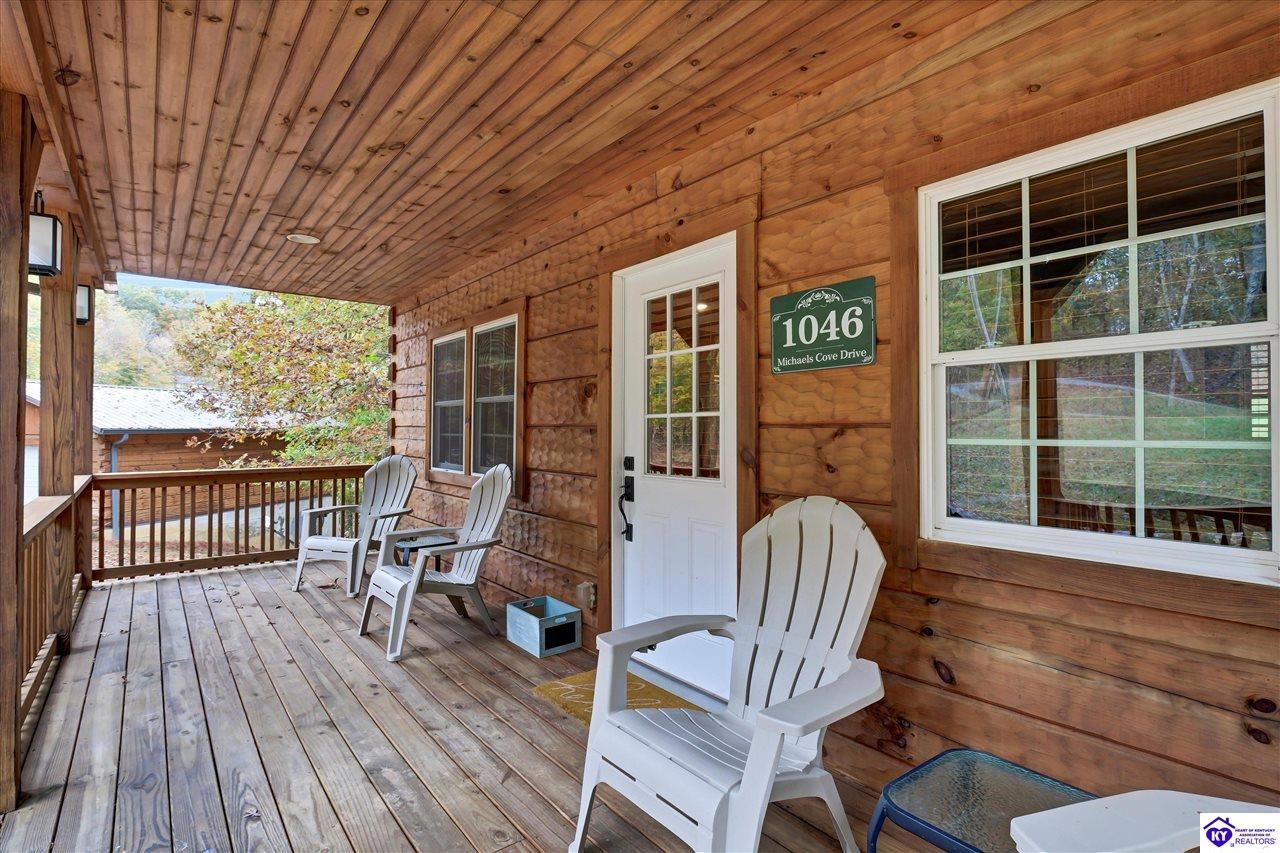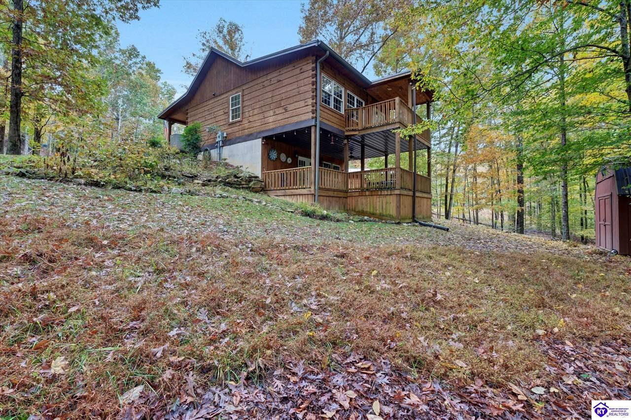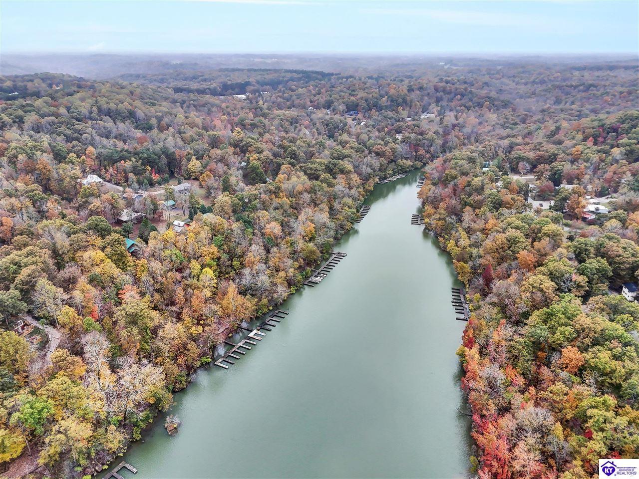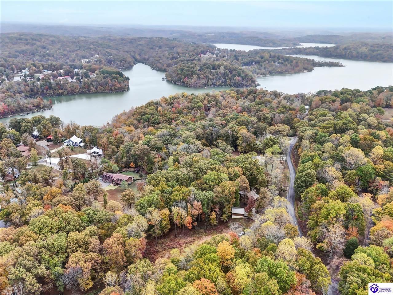 Realtor's notes: Welcome to your private log retreat at beautiful Nolin Lake! Nestled in the gated Michaels Cove Subdivision, this charming log home offers the perfect blend of rustic warmth and modern convenience. Relax on the inviting rocking chair front porch or enjoy peaceful lake evenings from the covered rear deck overlooking the wooded surroundings. Inside, the spacious kitchen with center island opens to the cozy family room and adjoining sleeping area, providing an open, cabin-style flow ideal for gatherings. The main level bedroom and full bath with a large garden tub make it easy to unwind after a fun filled day on the lake. The walkout lower level includes an additional bedroom, full bath, and laundry area—perfect for guests or extended stays. (Note: Bedrooms do not have closets and are More...non-conforming, though typical for the area.) Step outside to a covered lower deck, where you can still enjoy the great outdoors even when spring showers roll through. The detached garage with a full bath offers versatile space ideal for storing lake toys, taking a quick shower after time on the water, or transforming into a great party area for entertaining family and friends. The 10'x10' shed is perfect for extra storage. There is over 600 sq ft of decking and porch areas to enjoy the views. The home sits on two lots totaling 1.01 acres, offering privacy and space to relax. Your dock is just a short RTV ride away, and with the boat ramp and marina less than 1.5 miles away, lake days couldn't be more convenient. Dock will transfer with the Corp of Engineers approval. No rentals allowed, ensuring a peaceful neighborhood and protecting your investment. Start making lake memories to last a lifetime! Neighborhood info- https://webmasteroaklandhi.wixsite.com/mysite/bylaws-restrictions-1
