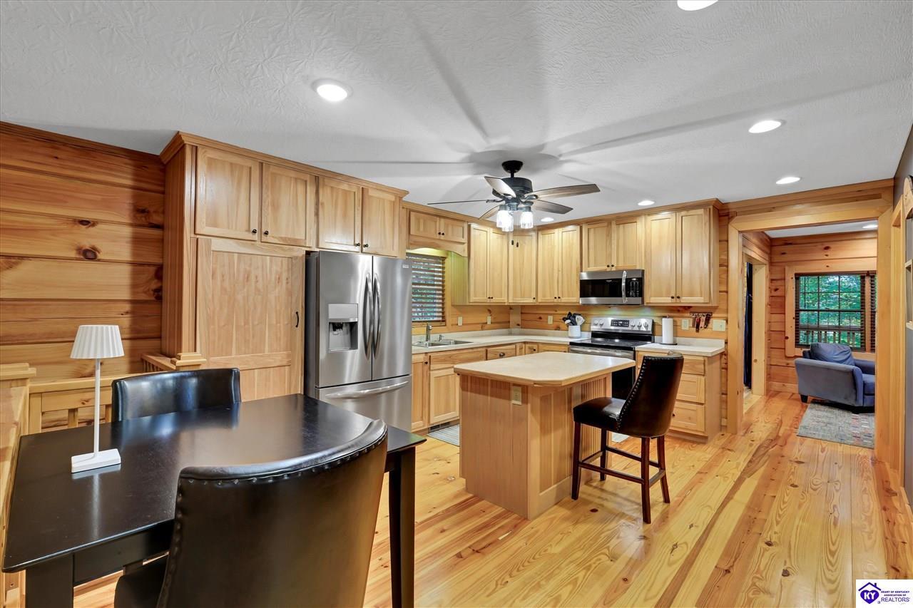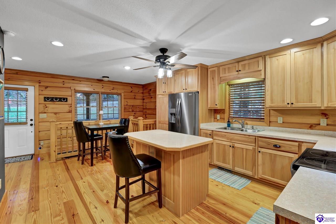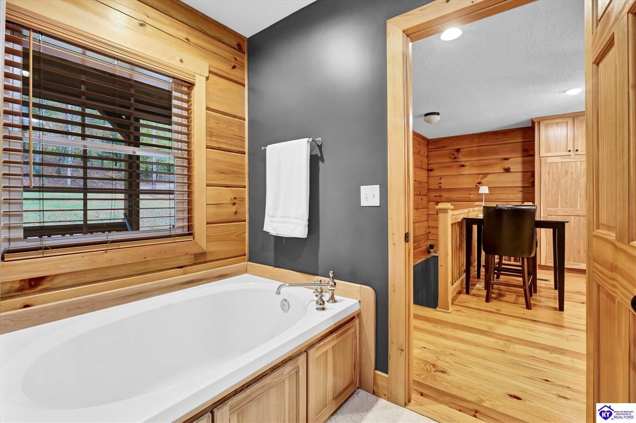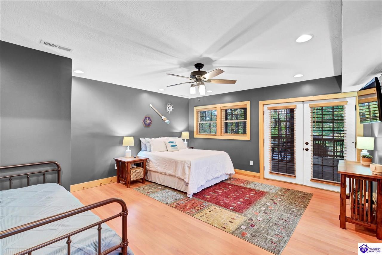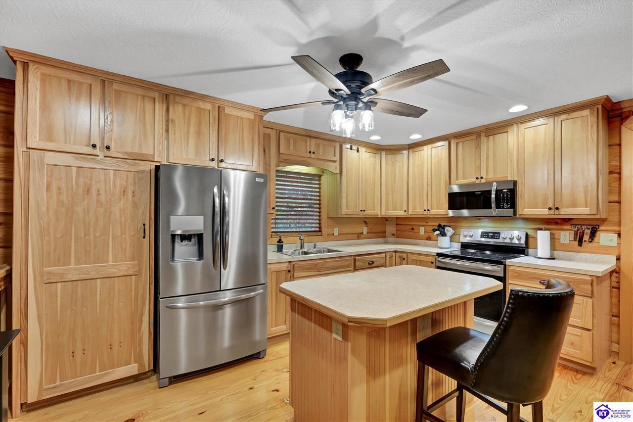 Realtor's notes: Welcome to your private log retreat at beautiful Nolin Lake! Nestled in the gated Michaels Cove Subdivision, this charming log home offers the perfect blend of rustic warmth and modern convenience. Relax on the inviting rocking chair front porch or enjoy peaceful lake evenings from the covered rear deck overlooking the wooded surroundings. Inside, the spacious kitchen with center island opens to the cozy family room and adjoining sleeping area, providing an open, cabin-style flow ideal for gatherings. The main level bedroom and full bath with a large garden tub make it easy to unwind after a fun filled day on the lake. The walkout lower level includes an additional bedroom, full bath, and laundry area—perfect for guests or extended stays. (Note: Bedrooms do not have closets and are More...non-conforming, though typical for the area.) Step outside to a covered lower deck, where you can still enjoy the great outdoors even when spring showers roll through. The detached garage with a full bath offers versatile space ideal for storing lake toys, taking a quick shower after time on the water, or transforming into a great party area for entertaining family and friends. The 10'x10' shed is perfect for extra storage. There is over 600 sq ft of decking and porch areas to enjoy the views. The home sits on two lots totaling 1.01 acres, offering privacy and space to relax. Your dock is just a short RTV ride away, and with the boat ramp and marina less than 1.5 miles away, lake days couldn't be more convenient. Dock will transfer with the Corp of Engineers approval. No rentals allowed, ensuring a peaceful neighborhood and protecting your investment. Start making lake memories to last a lifetime! Neighborhood info- https://webmasteroaklandhi.wixsite.com/mysite/bylaws-restrictions-1