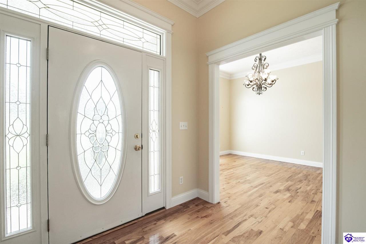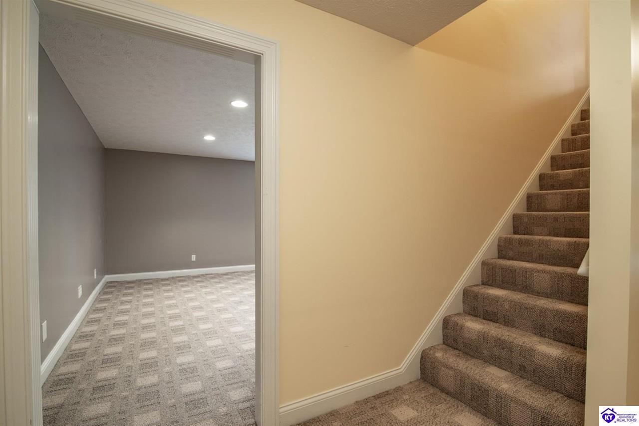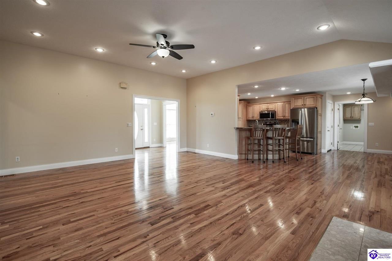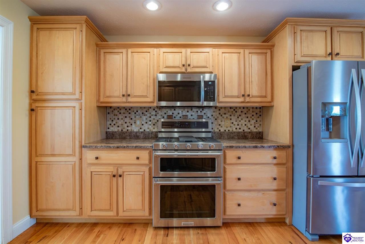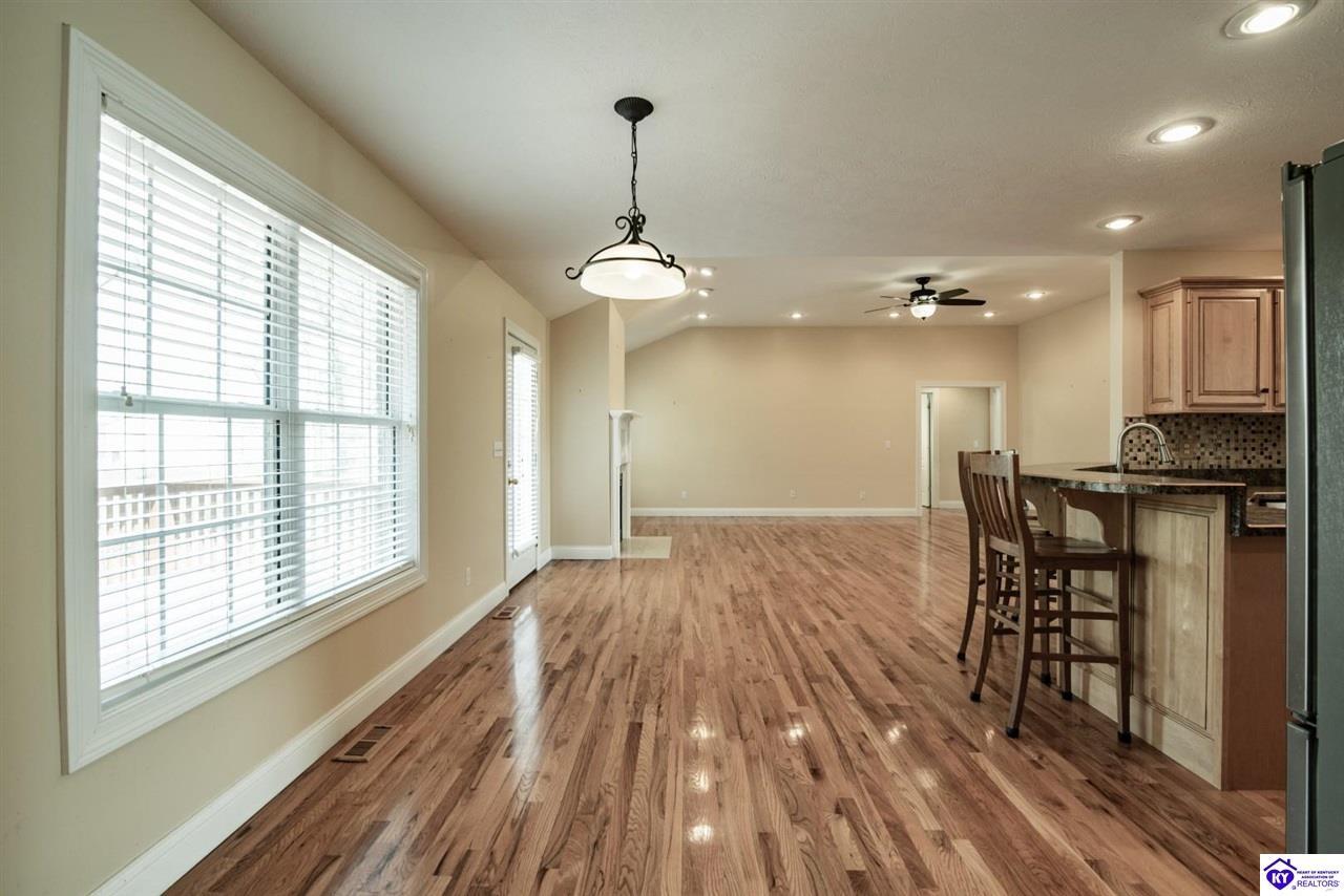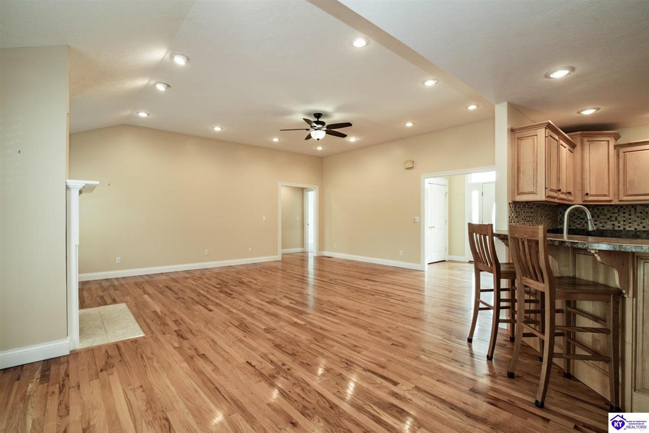 Realtor's notes: Welcome to your next chapter in the sought-after Woodsbend subdivision, where pride of ownership shines from every corner of this stunning 4-bedroom, 3-bathroom home. Step inside and prepare to be impressed. The foyer opens up into a spacious living room that greets you with vaulted ceilings, large windows that flood the space with natural light, and a cozy natural gas fireplace perfect for Kentucky evenings. Beautiful hardwood flooring flows throughout most of the main level, creating a seamless warmth that ties all of the rooms together. The fully equipped kitchen is a culinary dream, featuring a breakfast bar, a gas KitchenAid double oven, refrigerator, and dishwasher — everything a home chef could want. The popular split bedroom floor plan ensures privacy where it matters most. The primary suite is beautifully appointed with a spacious bedroom, jetted tub, double sink vanity, and a generous walk-in closet with custom shelving. Every bedroom closet features custom shelving, creating organization with a luxurious touch. A large laundry room sits conveniently near the primary bedroom, saving you countless trips across the house. Head downstairs to the walkout finished basement, where two expansive family areas await — one even comes with a pool table for friendly competitions. A fourth bedroom, full bathroom, and spacious storage room round out this versatile lower level. From your walkout basement, walk outside to the patio and you will find mature trees that frame private views while a large deck invites you to relax and soak in the peaceful surroundings. Homes like this one rarely stay available for long. Schedule your private showing today!