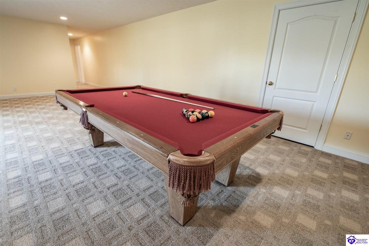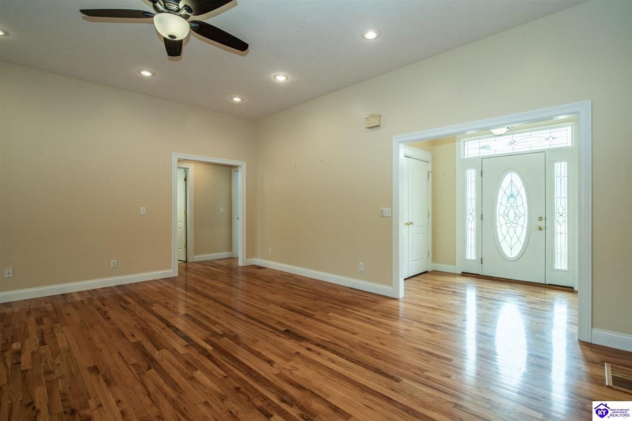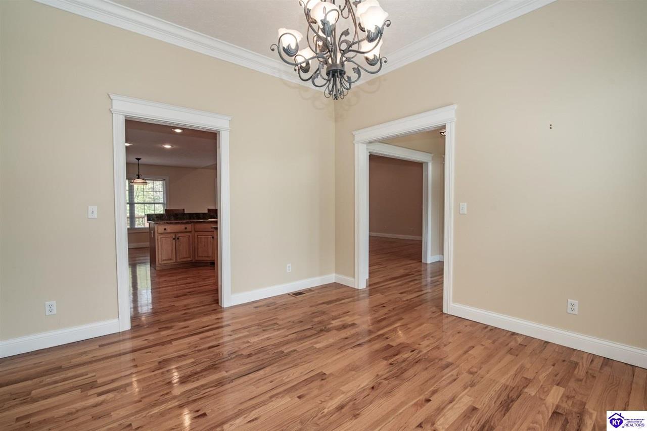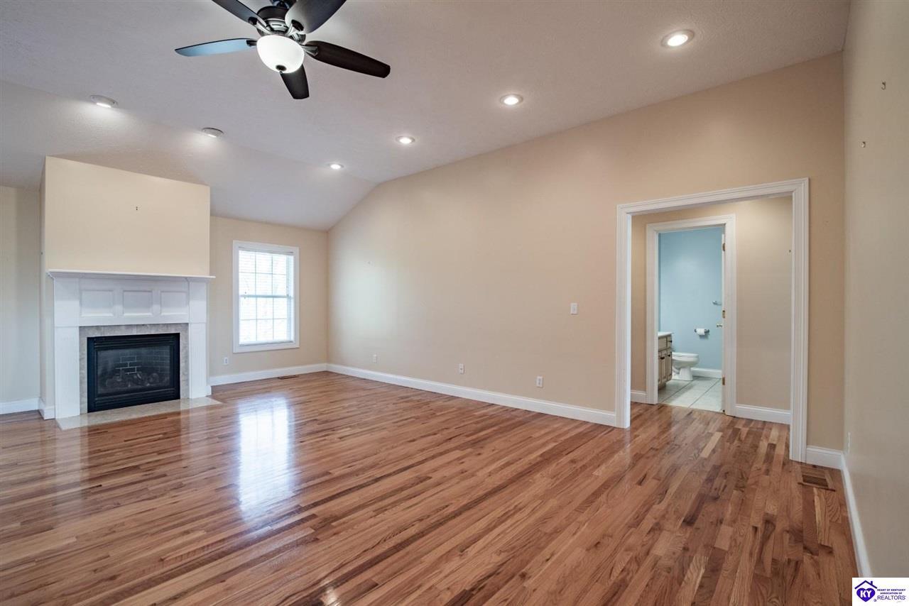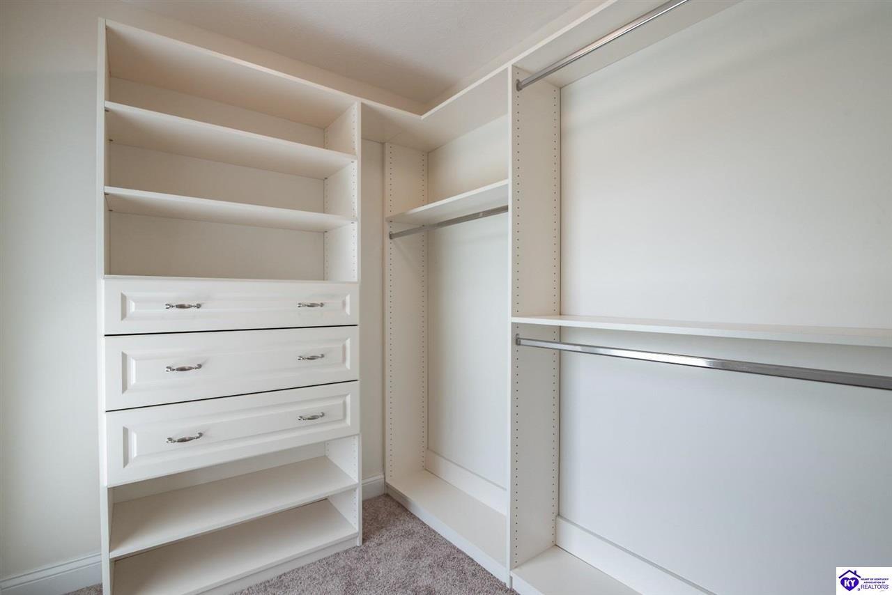Realtor's notes: Welcome to your next chapter in the sought-after Woodsbend subdivision, where pride of ownership shines from every corner of this stunning 4-bedroom, 3-bathroom home. Step inside and prepare to be impressed. The foyer opens up into a spacious living room that greets you with vaulted ceilings, large windows that flood the space with natural light, and a cozy natural gas fireplace perfect for Kentucky evenings. Beautiful hardwood flooring flows throughout most of the main level, creating a seamless warmth that ties all of the rooms together. The fully equipped kitchen is a culinary dream, featuring a breakfast bar, a gas KitchenAid double oven, refrigerator, and dishwasher — everything a home chef could want. The popular split bedroom floor plan ensures privacy where it matters most. The primary suite is beautifully appointed with a spacious bedroom, jetted tub, double sink vanity, and a generous walk-in closet with custom shelving. Every bedroom closet features custom shelving, creating organization with a luxurious touch. A large laundry room sits conveniently near the primary bedroom, saving you countless trips across the house. Head downstairs to the walkout finished basement, where two expansive family areas await — one even comes with a pool table for friendly competitions. A fourth bedroom, full bathroom, and spacious storage room round out this versatile lower level. From your walkout basement, walk outside to the patio and you will find mature trees that frame private views while a large deck invites you to relax and soak in the peaceful surroundings. Homes like this one rarely stay available for long. Schedule your private showing today!