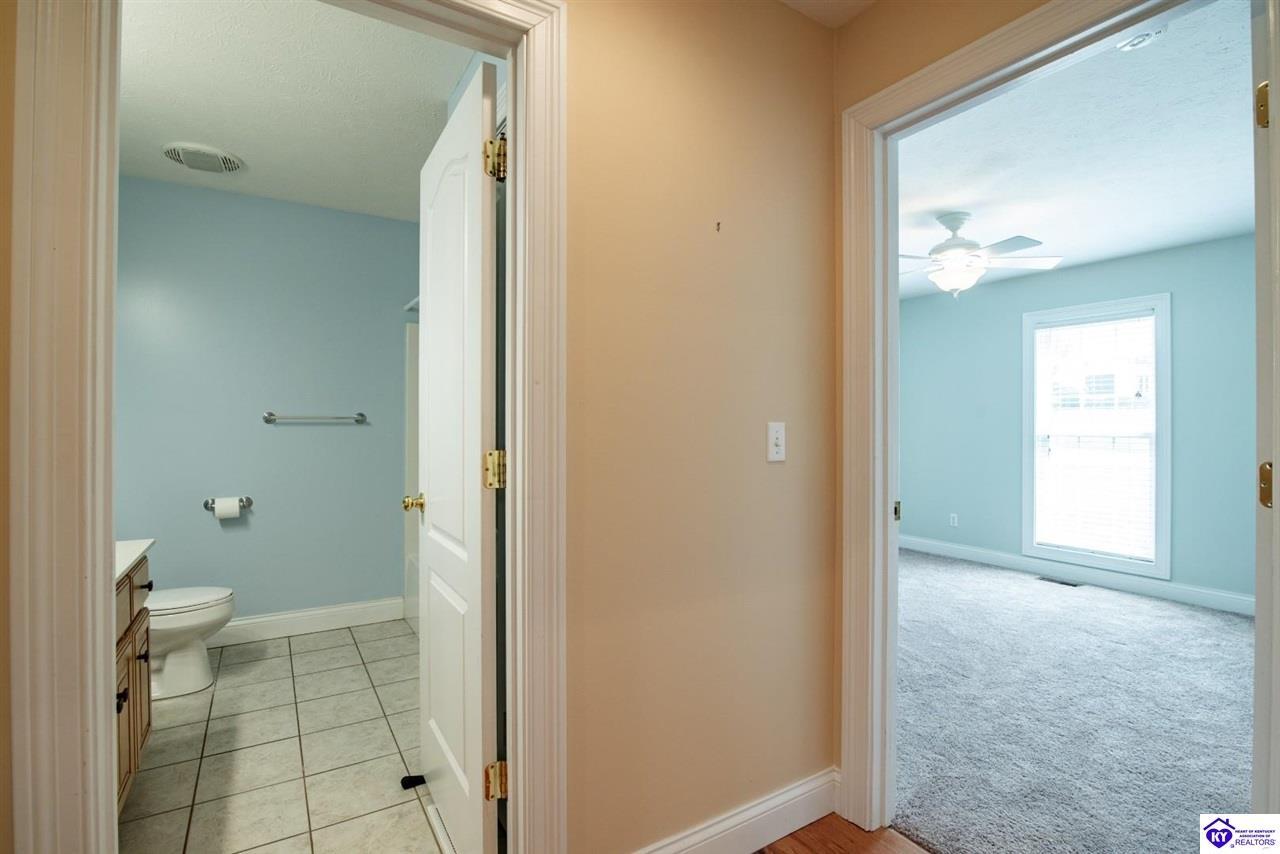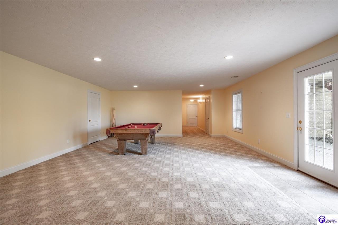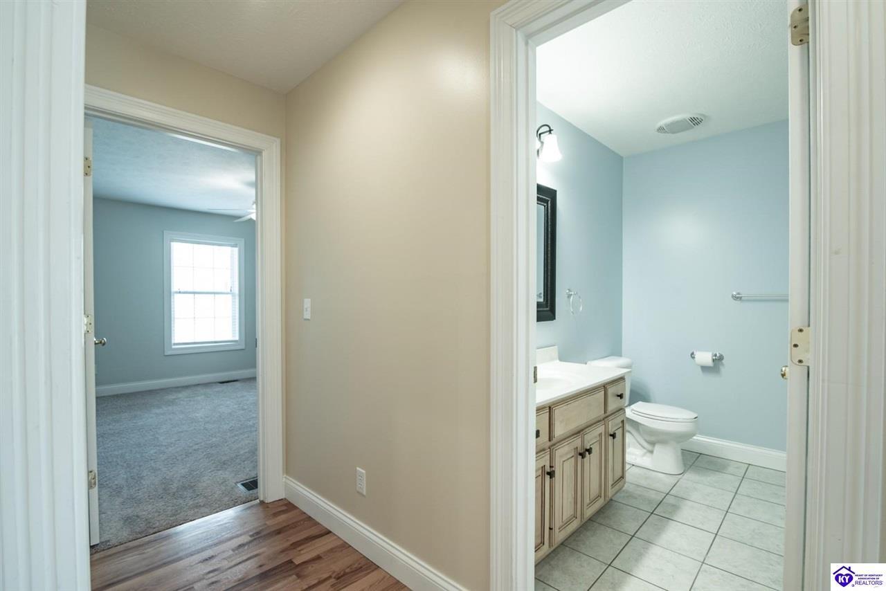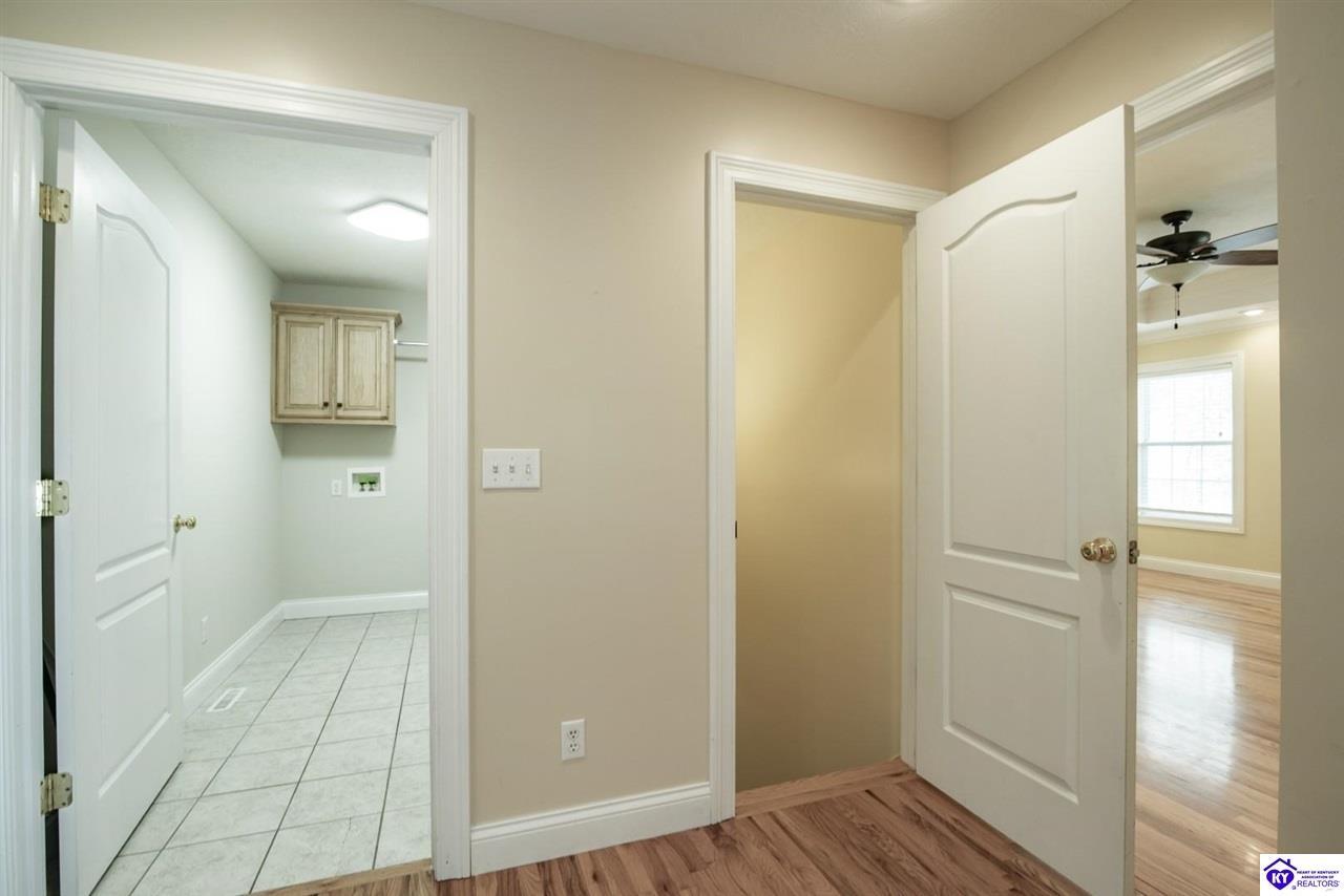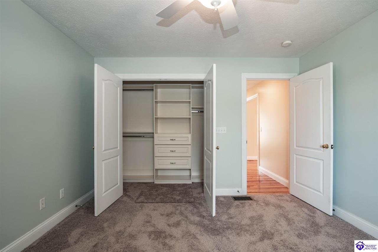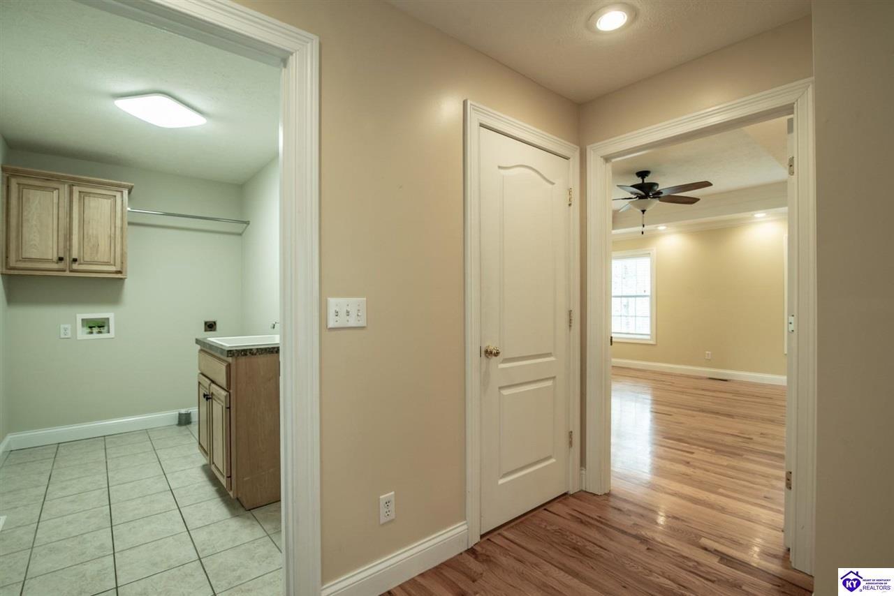 Realtor's notes: Welcome to your next chapter in the sought-after Woodsbend subdivision, where pride of ownership shines from every corner of this stunning 4-bedroom, 3-bathroom home. Step inside and prepare to be impressed. The foyer opens up into a spacious living room that greets you with vaulted ceilings, large windows that flood the space with natural light, and a cozy natural gas fireplace perfect for Kentucky evenings. Beautiful hardwood flooring flows throughout most of the main level, creating a seamless warmth that ties all of the rooms together. The fully equipped kitchen is a culinary dream, featuring a breakfast bar, a gas KitchenAid double oven, refrigerator, and dishwasher — everything a home chef could want. The popular split bedroom floor plan ensures privacy where it matters most. The primary suite is beautifully appointed with a spacious bedroom, jetted tub, double sink vanity, and a generous walk-in closet with custom shelving. Every bedroom closet features custom shelving, creating organization with a luxurious touch. A large laundry room sits conveniently near the primary bedroom, saving you countless trips across the house. Head downstairs to the walkout finished basement, where two expansive family areas await — one even comes with a pool table for friendly competitions. A fourth bedroom, full bathroom, and spacious storage room round out this versatile lower level. From your walkout basement, walk outside to the patio and you will find mature trees that frame private views while a large deck invites you to relax and soak in the peaceful surroundings. Homes like this one rarely stay available for long. Schedule your private showing today!