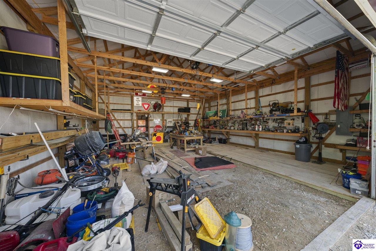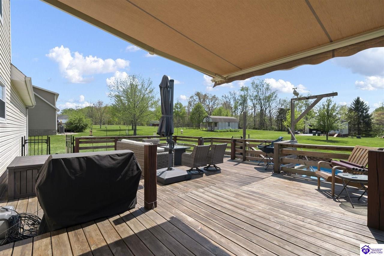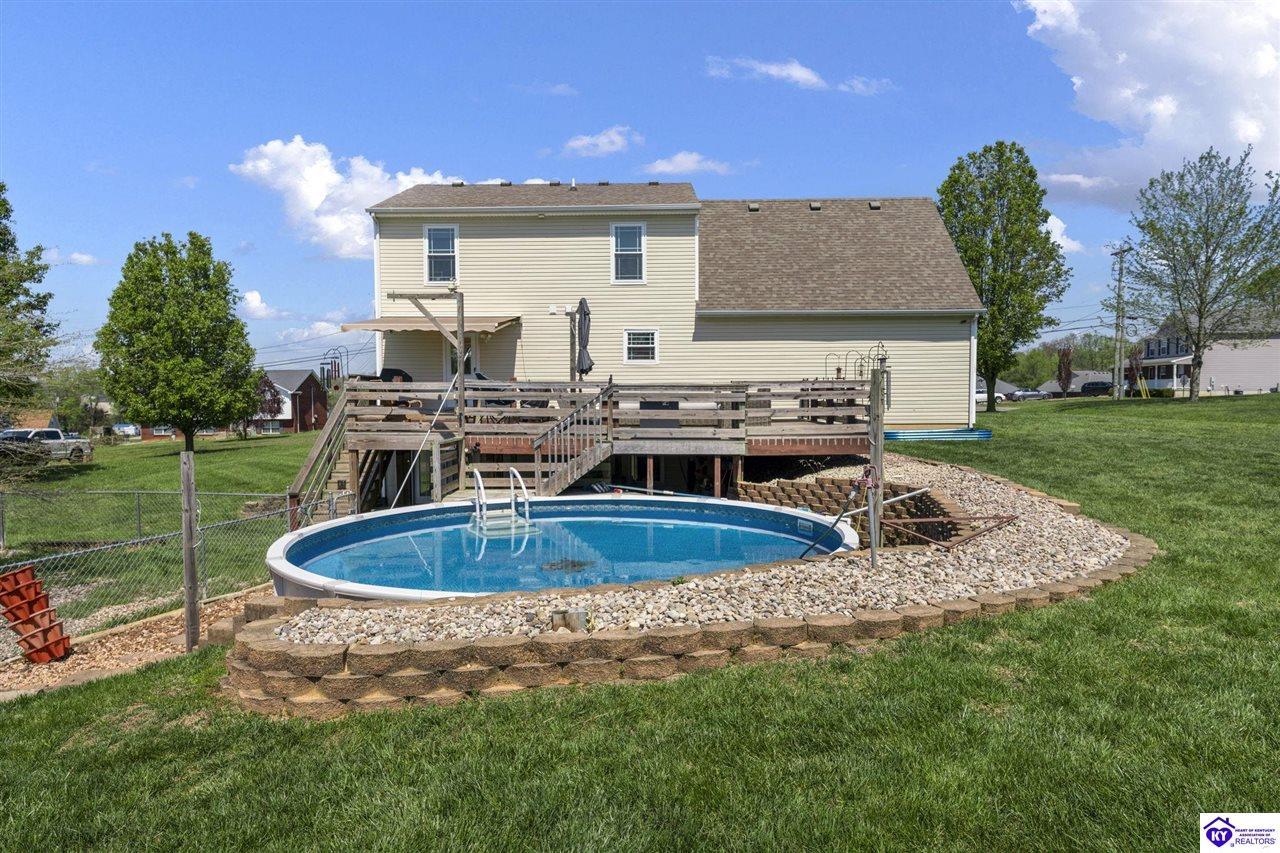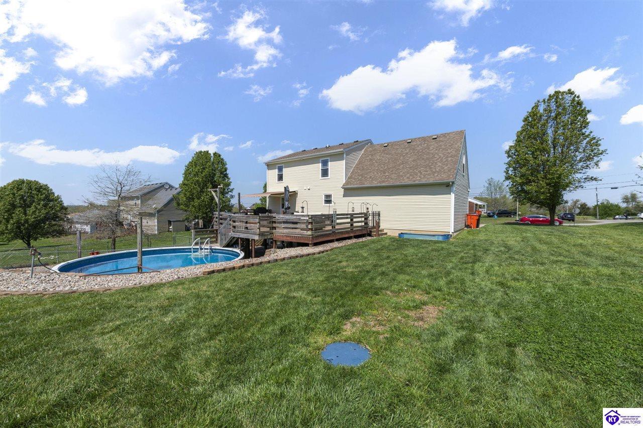 Realtor's notes: Welcome to a beautifully upgraded home offering 2,248 square feet of thoughtfully designed living space with a partially finished walkout basement and attached 2-car garage. This 4-bedroom, 2.5-bath residence blends comfort, functionality, and standout upgrades throughout. The heart of the home features a well-appointed kitchen with granite countertops, smooth-top range, stainless appliances, and ample workspace, flowing seamlessly into the main living area with laminate flooring and ceiling fan. Upstairs, the spacious primary suite offers a private retreat complete with a jetted soaking tub, while three additional bedrooms provide flexible space for family, guests, or home office needs. The walkout basement family room with fireplace creates an inviting secondary living area perfect for relaxing or entertaining. Step outside and enjoy a covered front porch, expansive deck, fenced yard, mature trees, and an above-ground pool, creating a private outdoor setting ideal for gatherings. One of the property’s most impressive features is the 1,100 sq ft detached barn/workshop with electricity, offering incredible versatility for hobbies, storage, or a workspace. Recent upgrades include brand-new windows, new HVAC systems, tankless water heater, whole-house generator, and a widened paved driveway—providing peace of mind and modern efficiency. With its generous space, thoughtful upgrades, and exceptional outdoor features, this home offers a rare opportunity to enjoy both comfort and versatility in one exceptional property.
