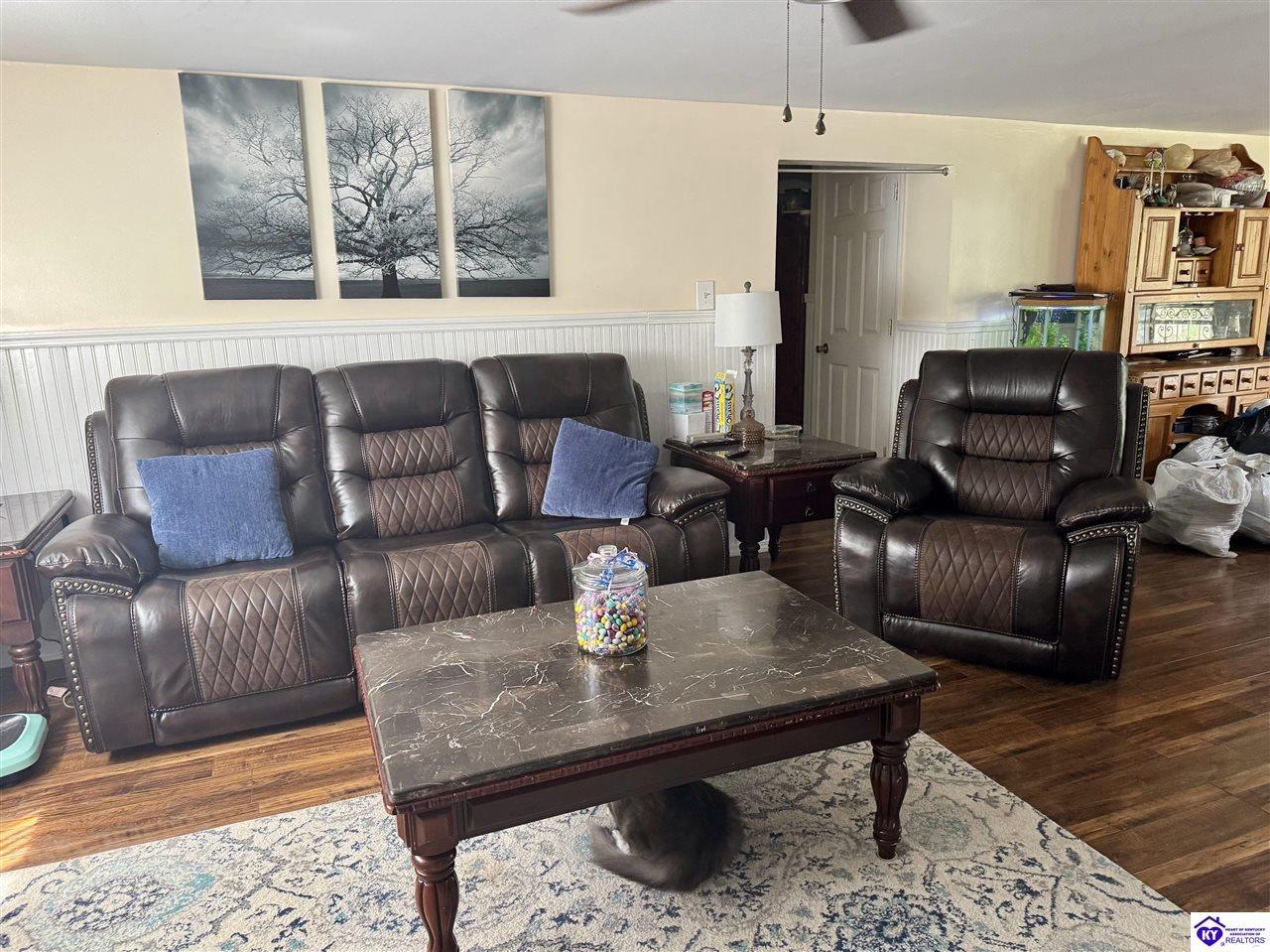 Realtor's notes: Welcome to your own slice of peaceful country living! This well-maintained 5-bedroom, 2 full bath home offers the perfect blend of comfort, space, and opportunity. Step inside to an inviting open-concept layout where the living, dining, and kitchen areas flow seamlessly together—ideal for everyday living and entertaining alike. The spacious kitchen features an abundance of cabinetry, perfect for canning, baking, and all your cooking needs. Enjoy relaxing or hosting gatherings on the covered back porch overlooking your private 10 acres of beautiful land. Outside, you’ll find a large barn and two additional outbuildings, providing ample space for storage, hobbies, or livestock. A charming koi pond and gazebo add to the property's character, creating a serene setting just waiting for your personal touch. This property offers endless possibilities for those seeking space, functionality, and a place to truly make their own.