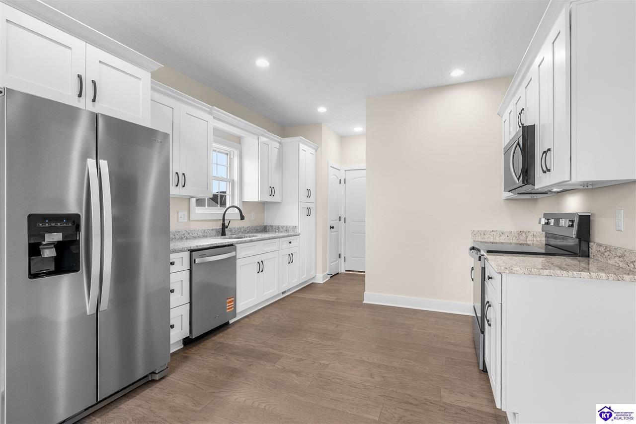 Realtor's notes: Up to $8,500 Seller-Paid Concessions | New Construction | Walk-Out Basement | Elizabethtown, KY Stop scrolling — this one checks every box. This move-in ready new construction home in Elizabethtown, KY delivers the finishes and flexibility today's buyers are searching for — and with up to $8,500 in seller-paid concessions, your path to closing just got easier. Built by a trusted local builder in one of Elizabethtown's most desirable neighborhoods, this 3 bed / 2 bath home offers quick access to Fort Knox, top-rated schools, shopping, dining, and major commuting routes. Perfect for first-time buyers, military families, downsizers, or investors. Inside: Hand-scraped hardwood floors in the great room, kitchen, dining, and hallway Thoughtfully designed split floor plan with distinct living and kitchen spaces Kitchen with granite countertops, white shaker cabinets, stainless steel appliances, pantry & designer lighting — plus a charming breakfast nook perfect for morning coffee Primary suite with king-size space, tiled shower & cultured marble vanity Two additional bedrooms with plush carpet; ceramic tile in both baths The Basement is a Game-Changer: Unfinished walk-out basement already rough-plumbed for a full bath — ready to become a 4th bedroom, gym, media room, or in-law suite. More space. More value. More upside. Radon mitigation system already installed. New construction quality with zero compromises. If you've been searching for new construction in Elizabethtown with granite countertops, hardwood floors, a walk-out basement, and seller concessions near Fort Knox — your search ends here. Schedule your showing today before it's gone.